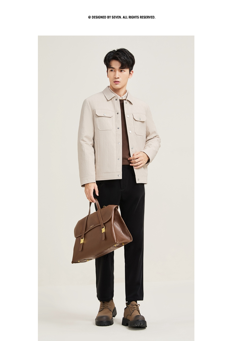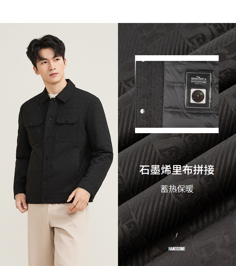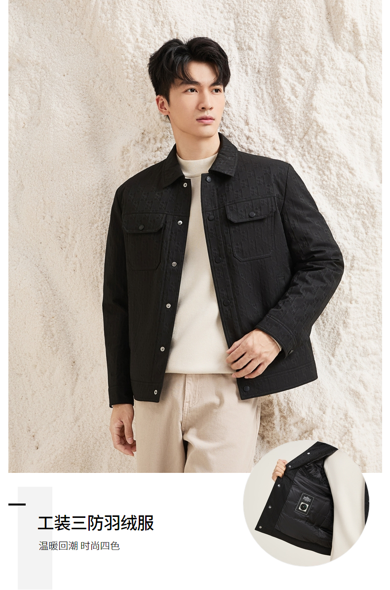 【黄金鲜羽绒】柒牌夹克羽绒服男士冬季翻领休闲上衣白鸭绒外套129E70910