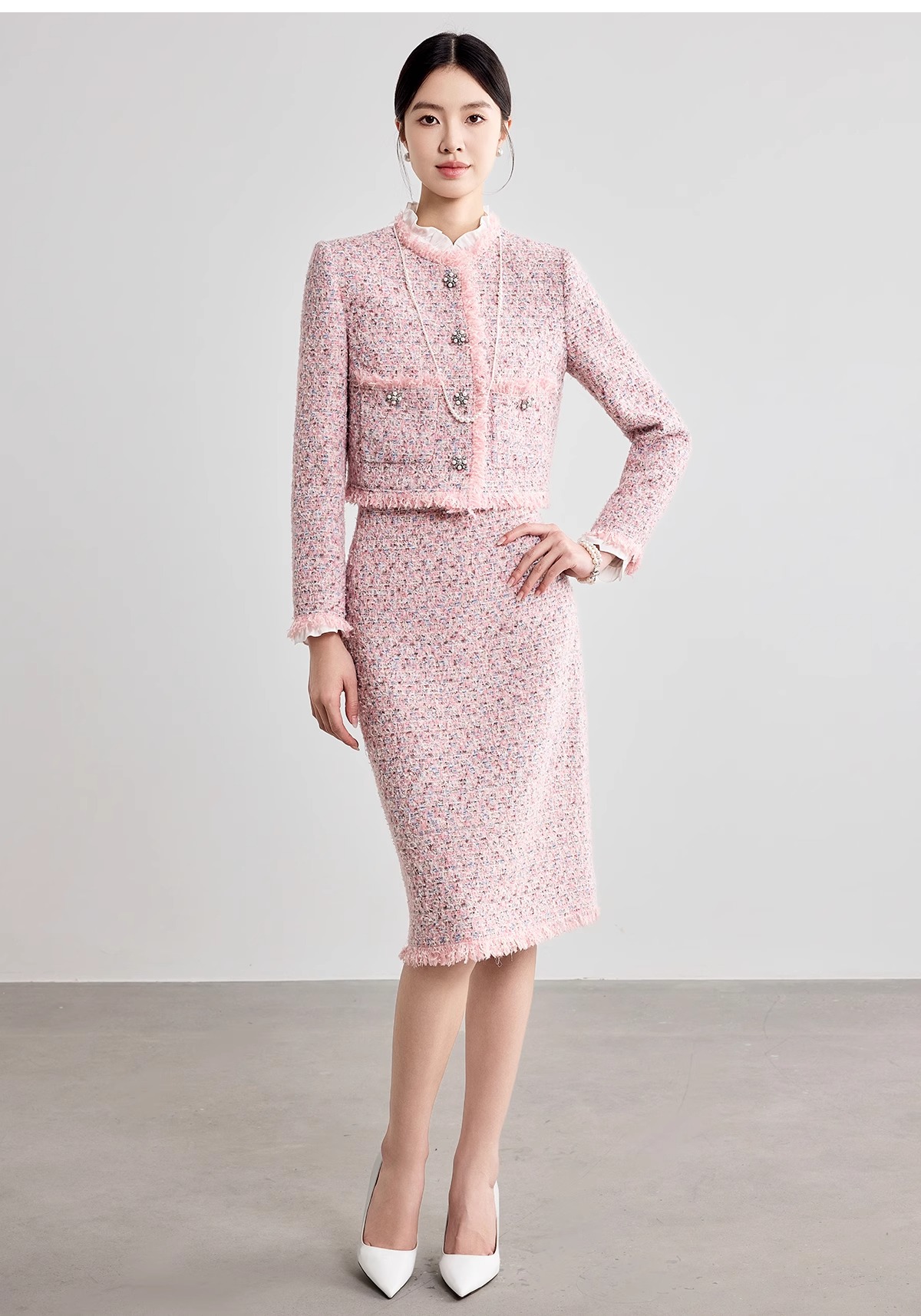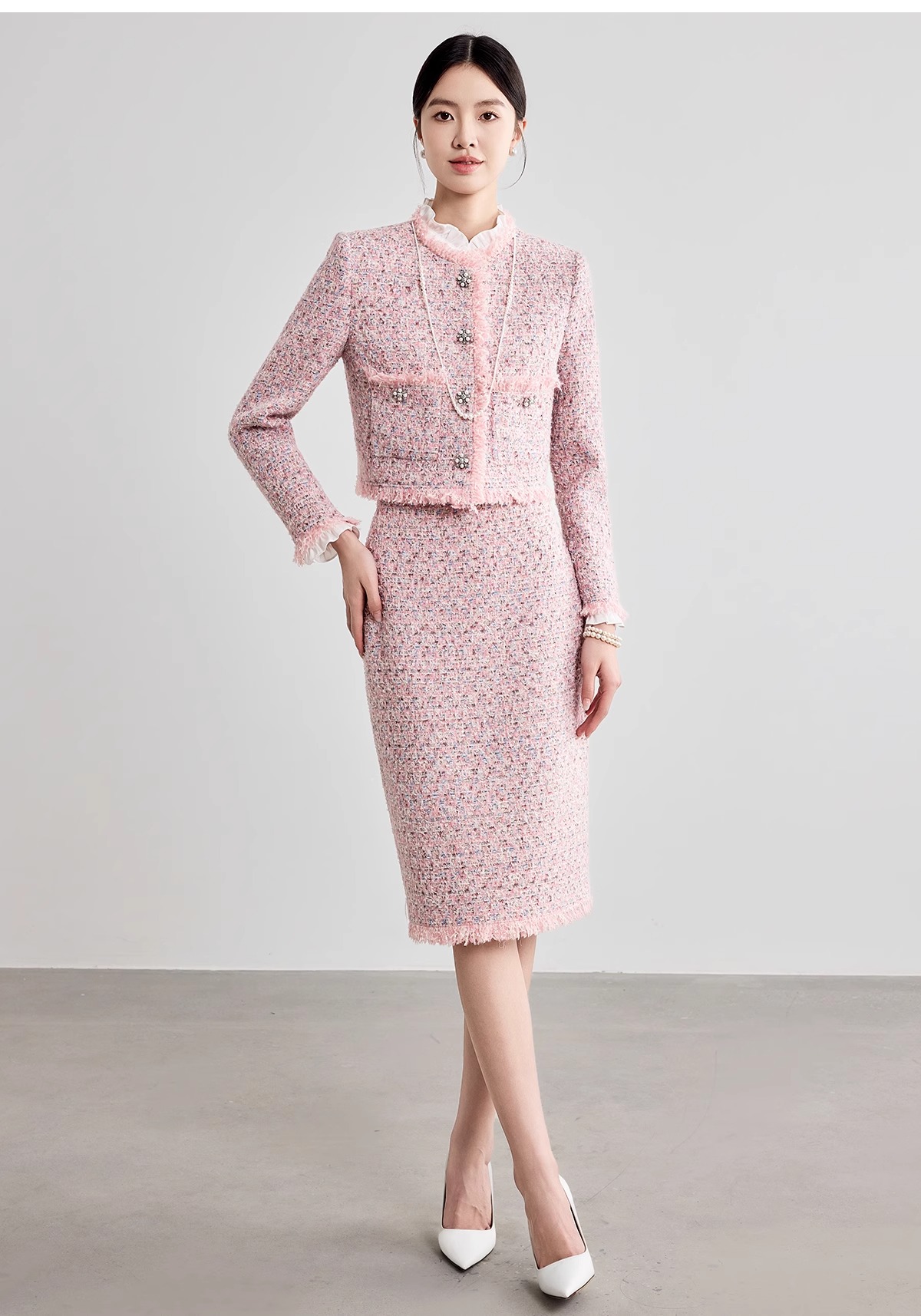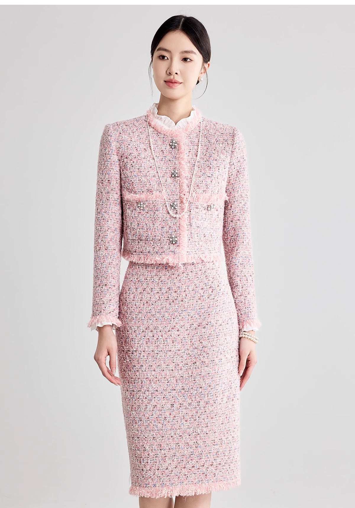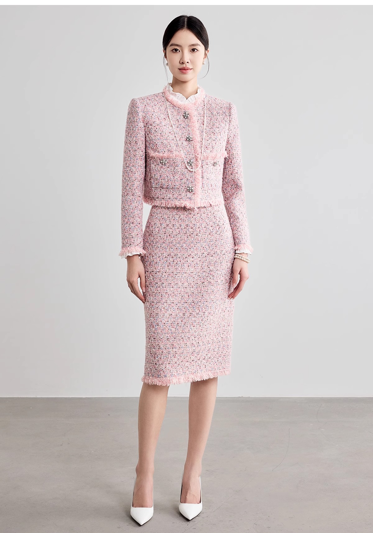 IWY/扶摇系列 粉色小香风西装外套女新款女神范粗花呢套装裙 FYCS001
