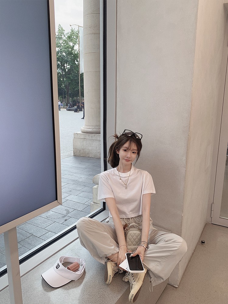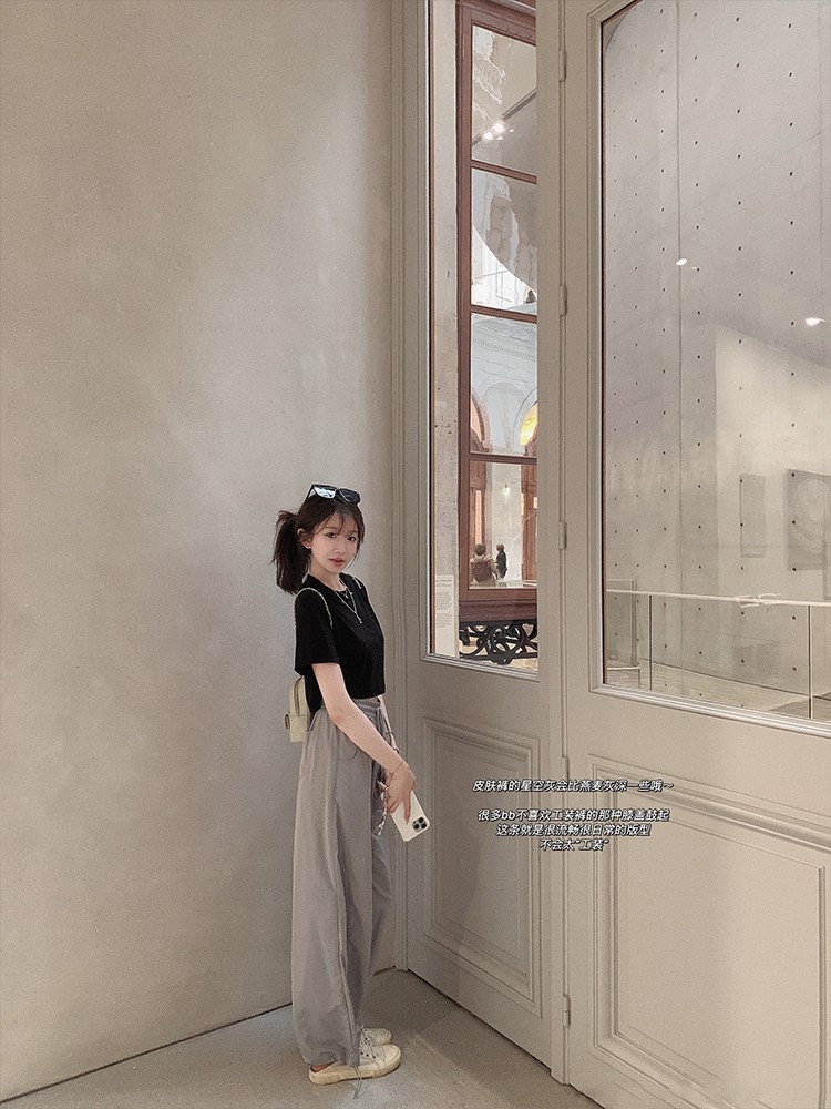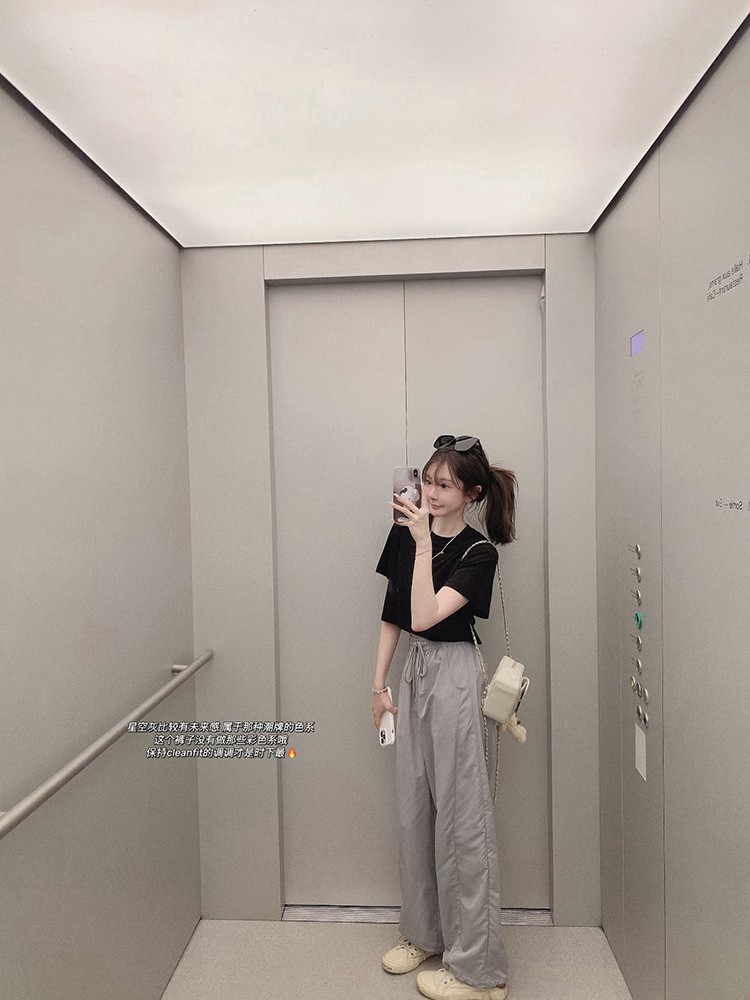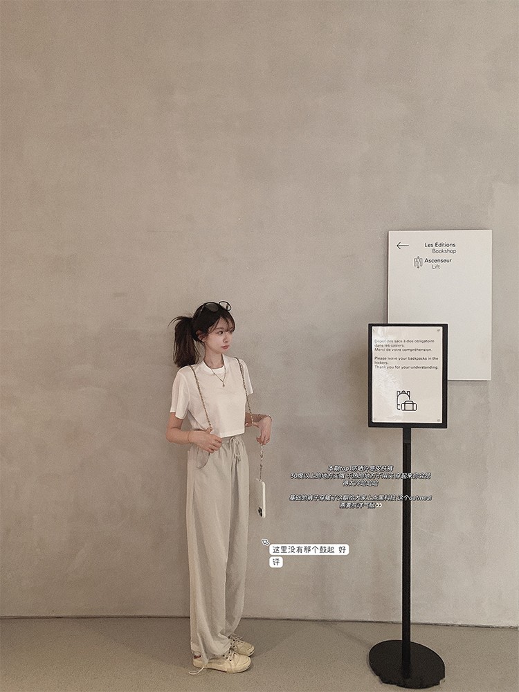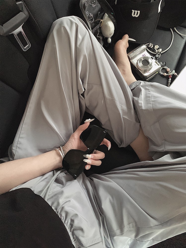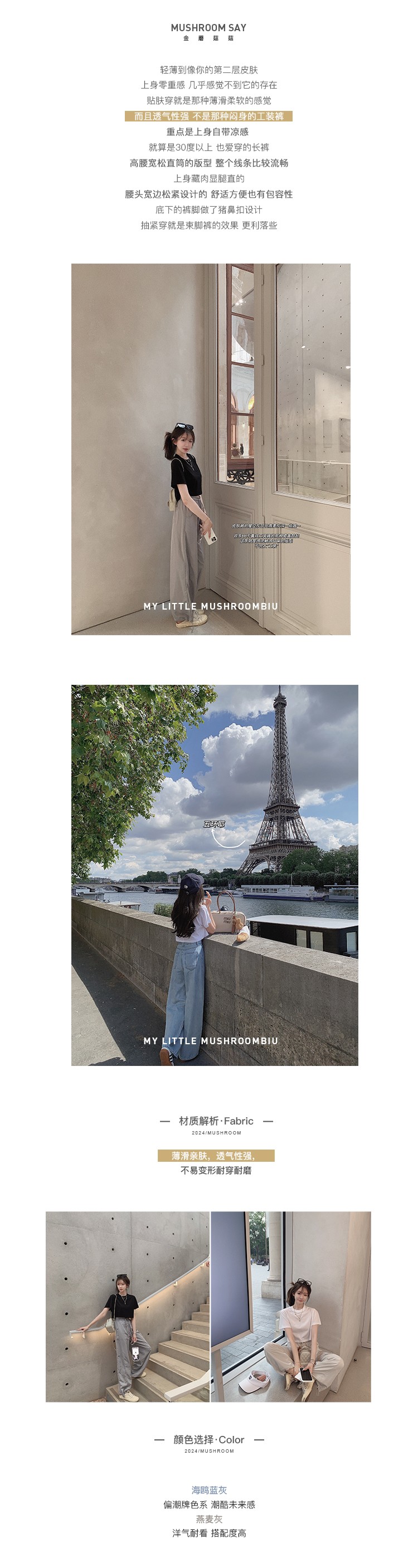 金蘑菇菇 防晒皮肤裤/轻薄透气 高腰宽松直筒松紧休闲裤显腿直