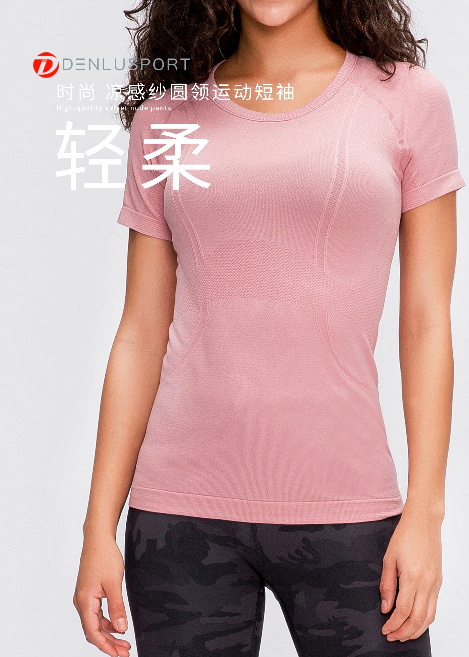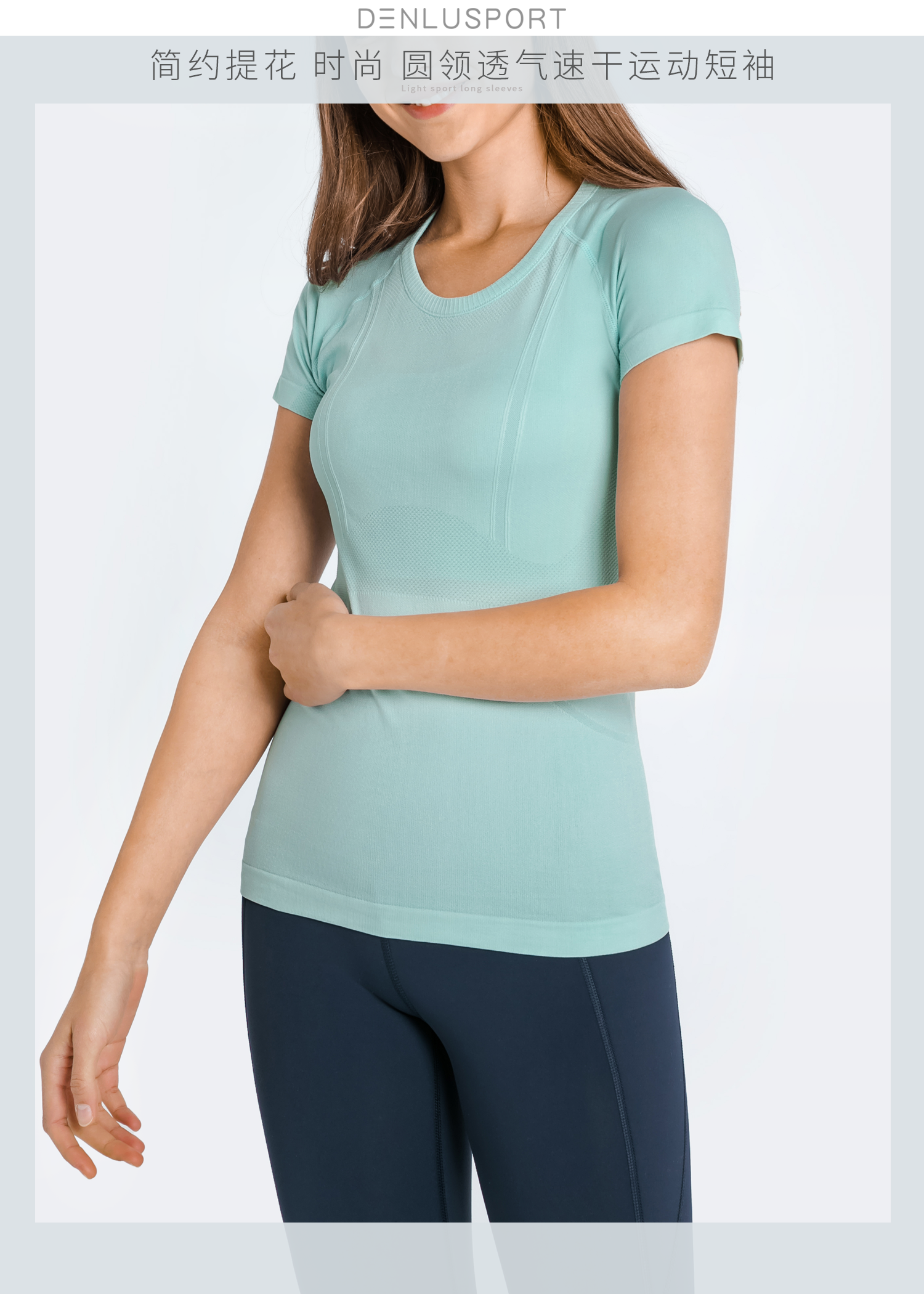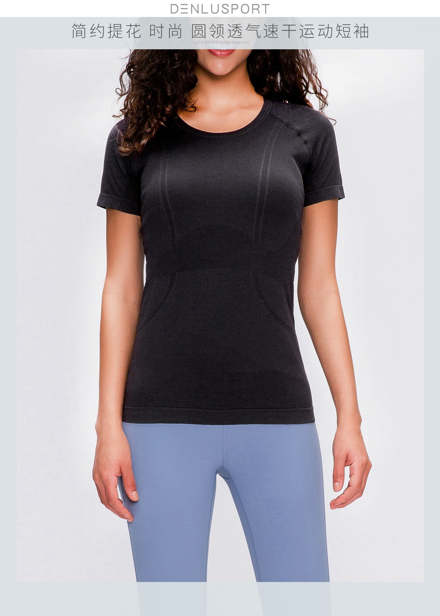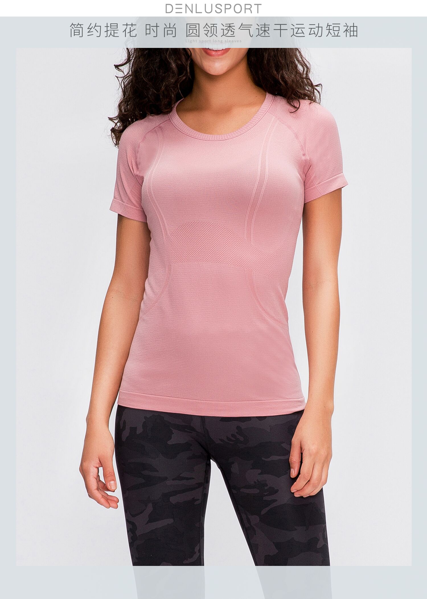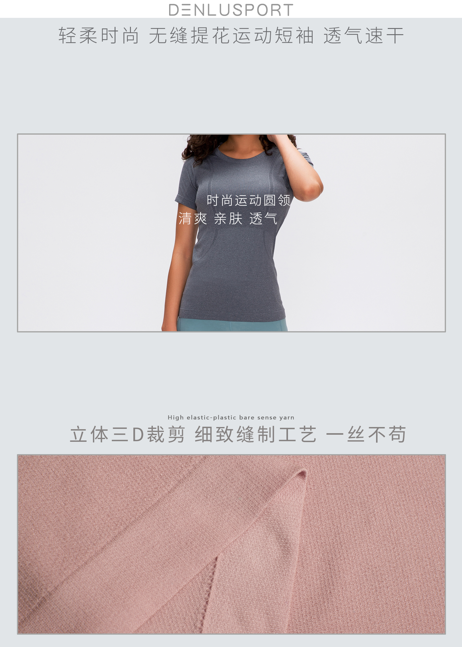 夏季新品DY66010#凉感透气轻柔速干时尚圆领无缝运动短袖