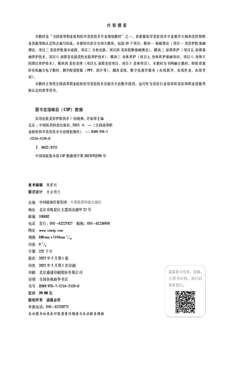 实用皮肤美容护肤技术 全国高等职业院校医学美容技术专业规划教材 何晓燕 许家萍 供医学美容技术及相关专业用中国医药科技出版社