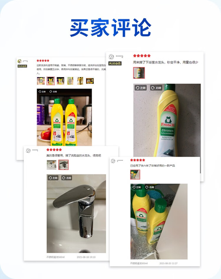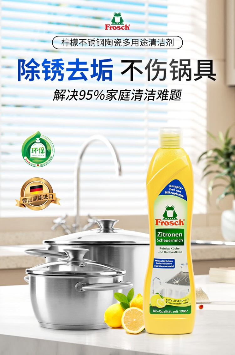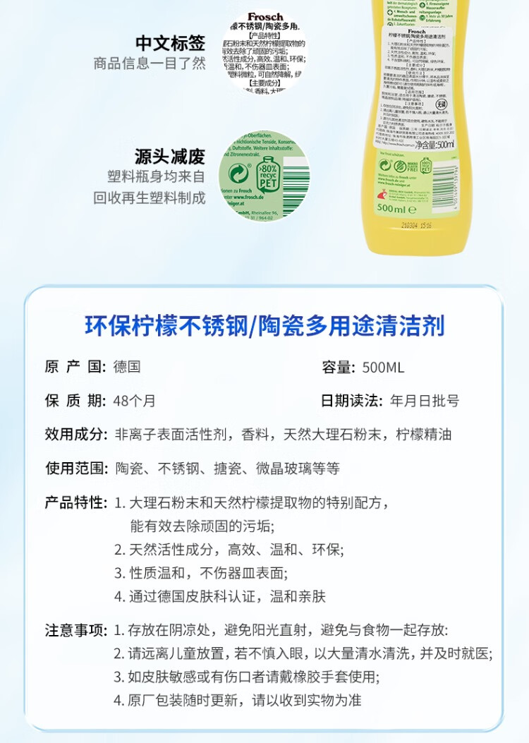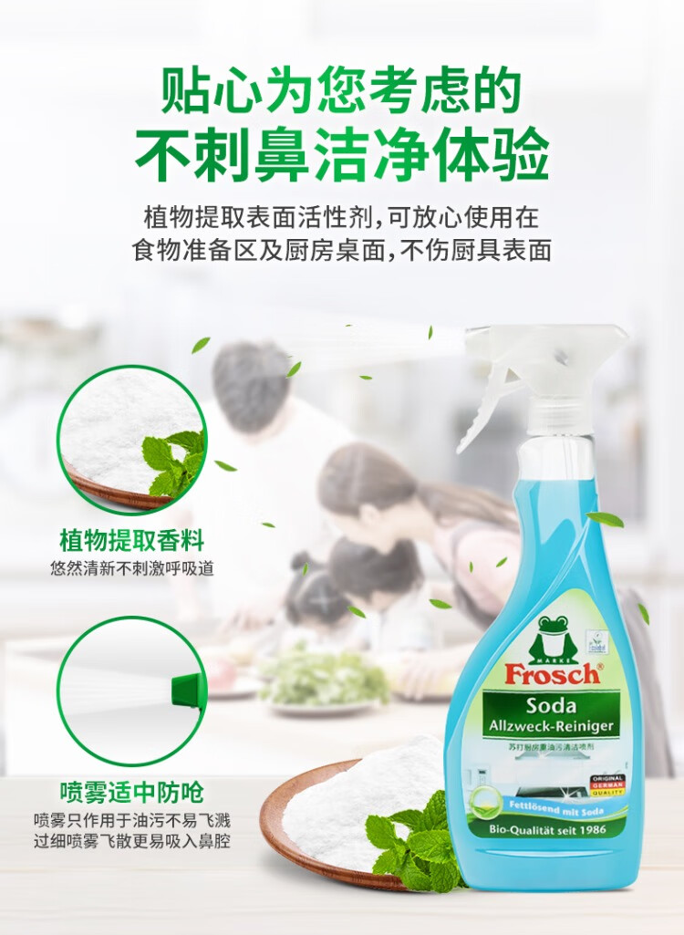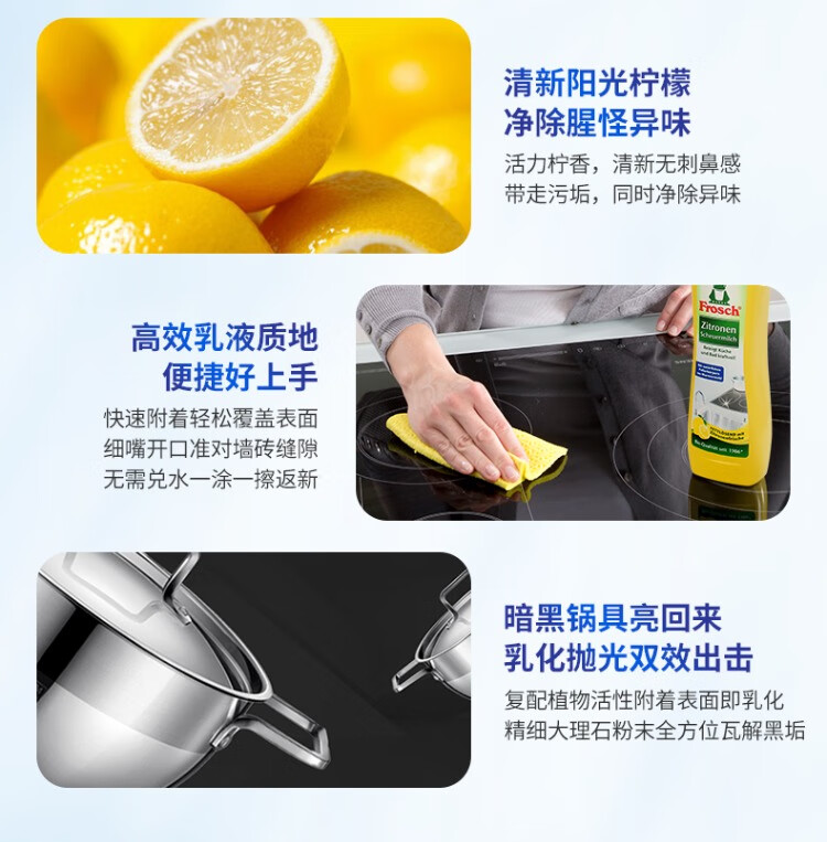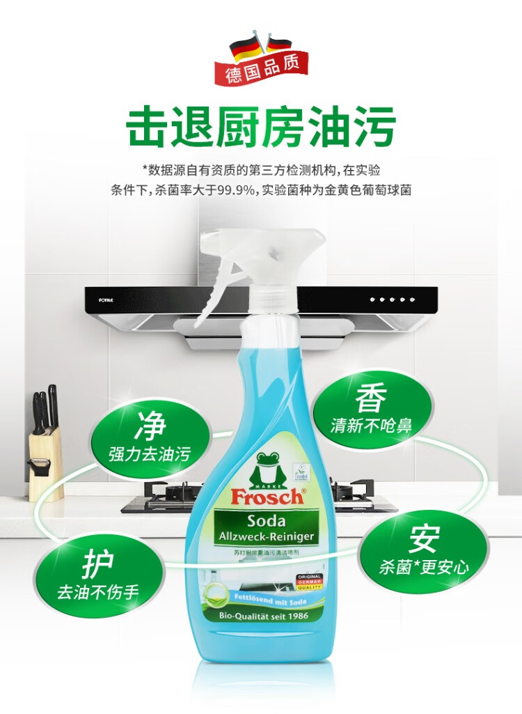 Frosch不锈钢陶瓷多用途清洁剂500ml+厨房油污喷剂500ml+多用途清洁剂1L/组