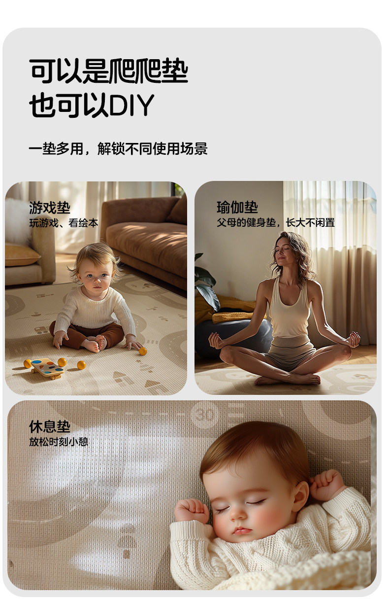 KUB可优比爬爬垫婴儿加厚家用无甲醛ixpe客厅防摔地垫宝宝爬行垫