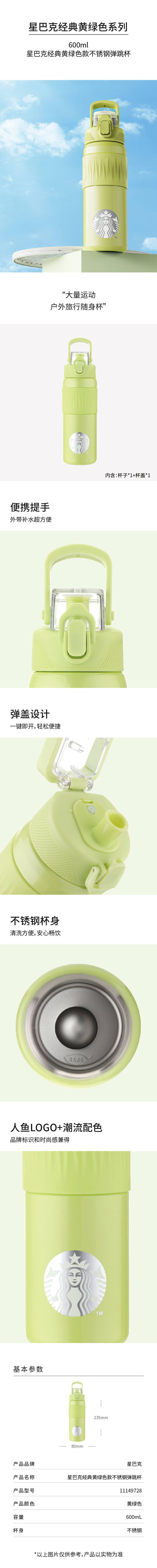 11149728 星巴克经典黄绿色款不锈钢弹跳杯