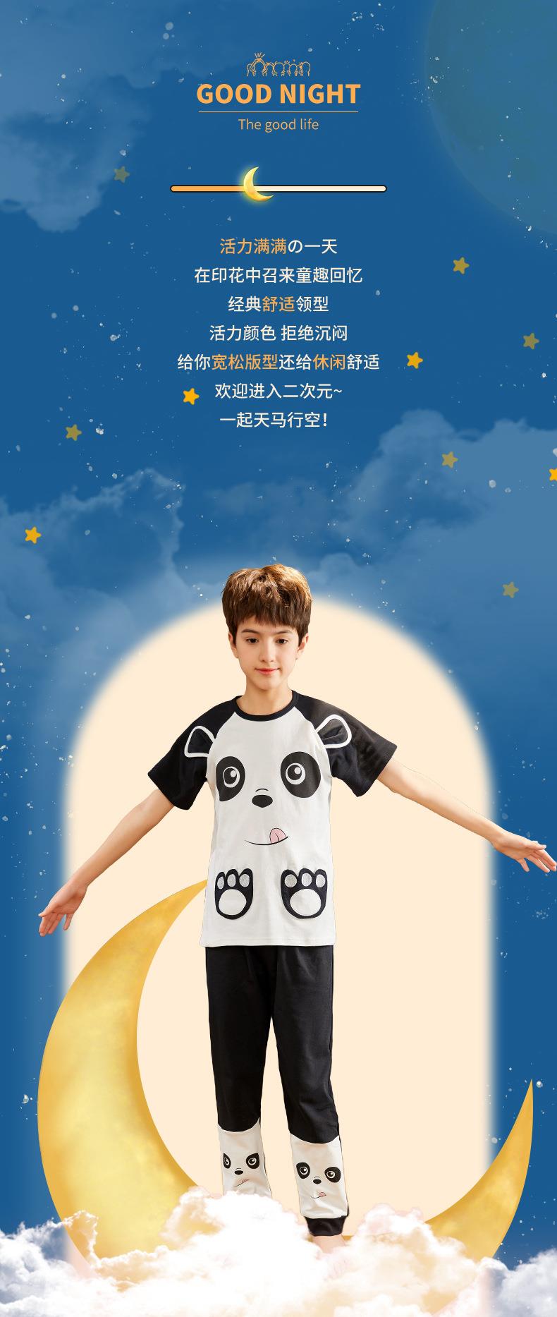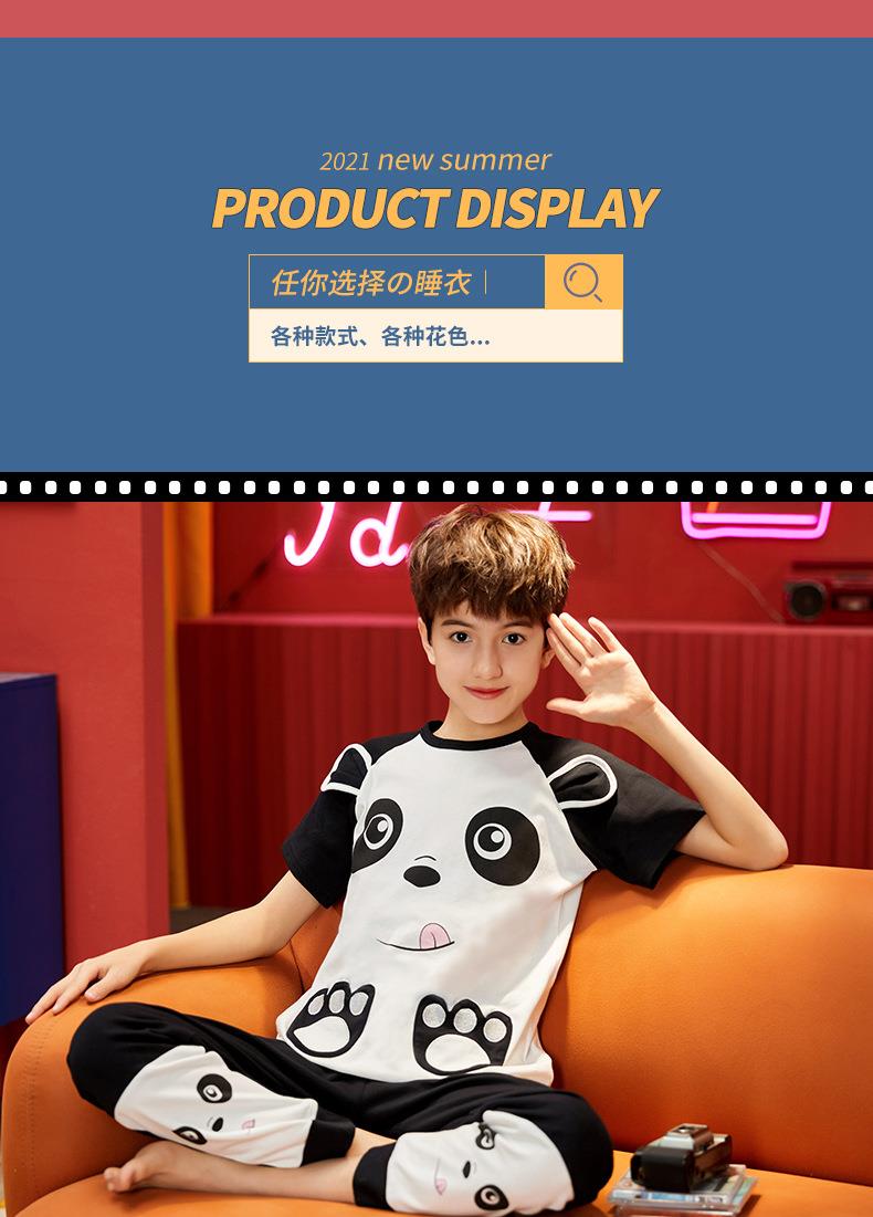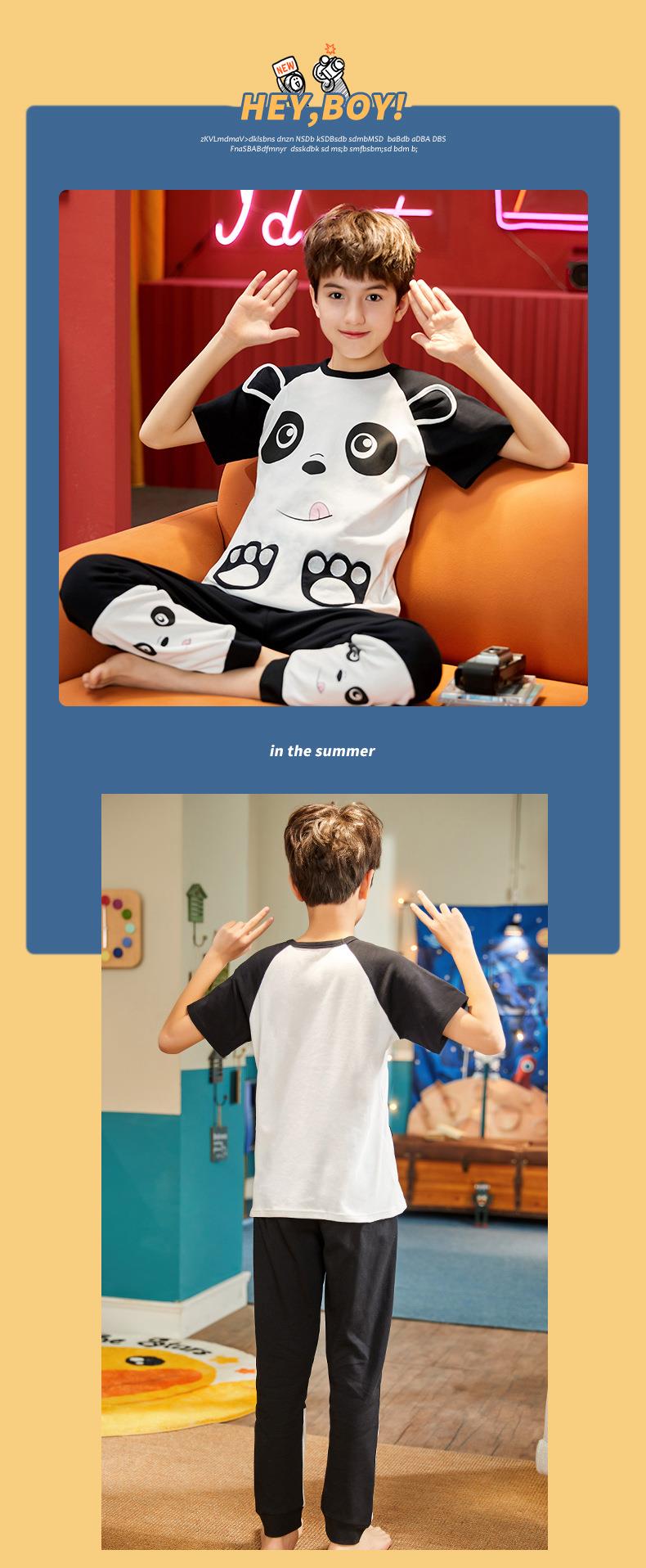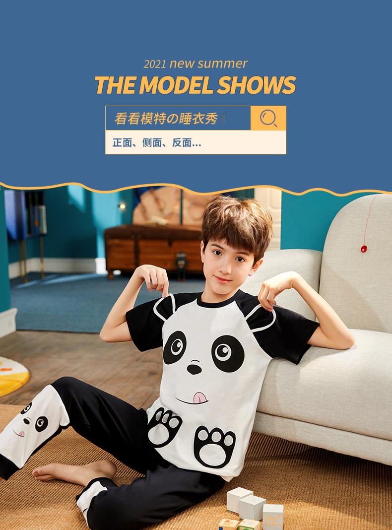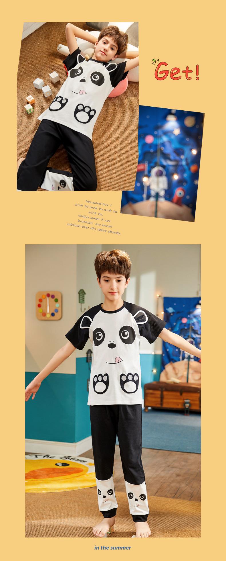 儿童睡衣男童夏季短袖长裤纯棉薄款卡通圆领男孩中大童春秋家居服