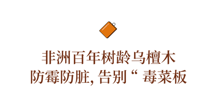 这块菜板,采用百年树龄以上的非洲进口乌檀木精制一体切割成型,无缝无孔,水分和潮湿无法进入菜板内部。