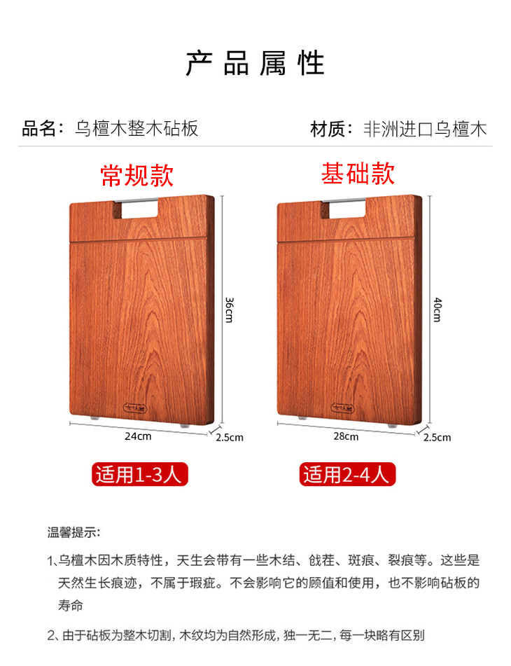 乌檀木菜板切菜跟其他实木菜板一样,用完后也会有刀痕,并不是一点也没有,这属于正常现象,此类情况不属于产品质量问题,介意慎拍!