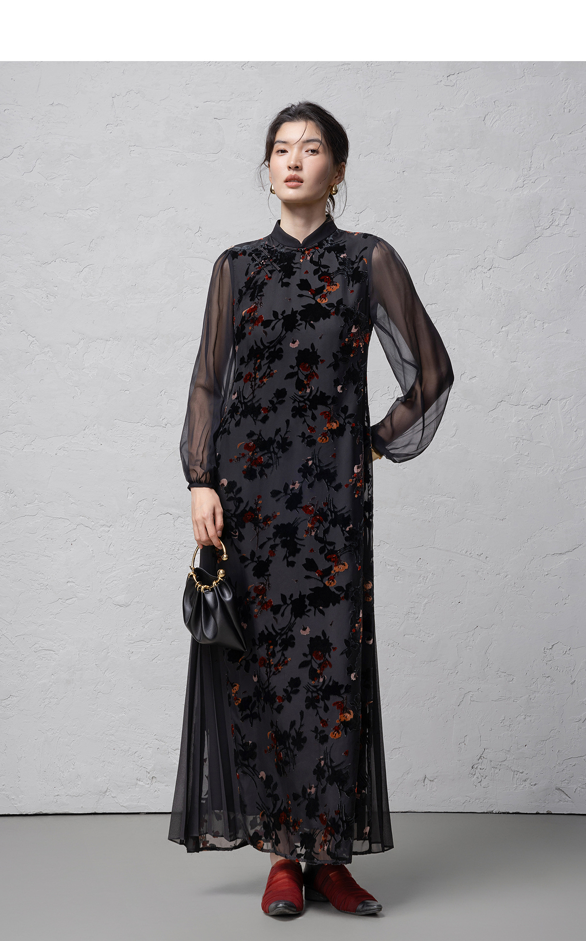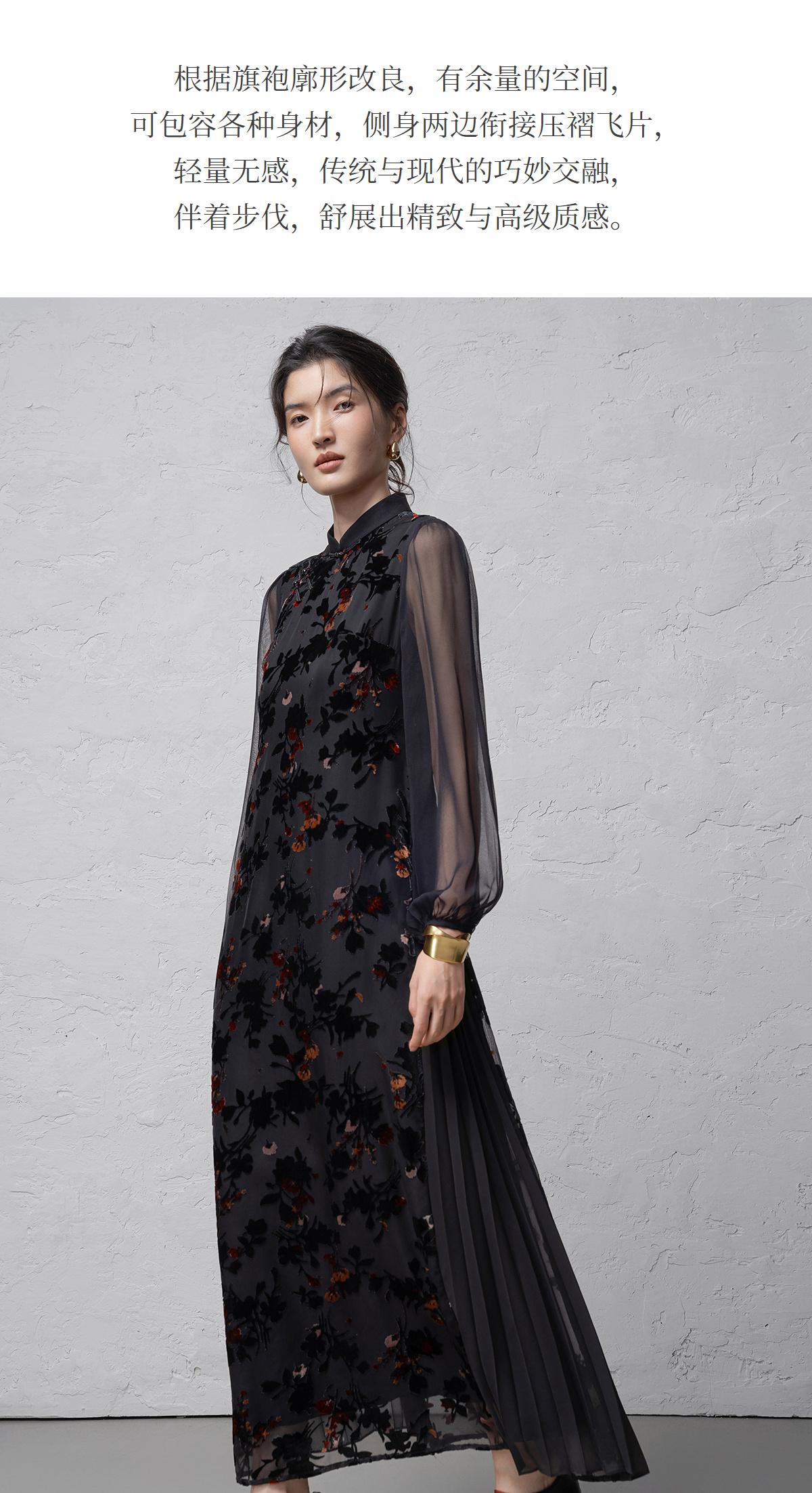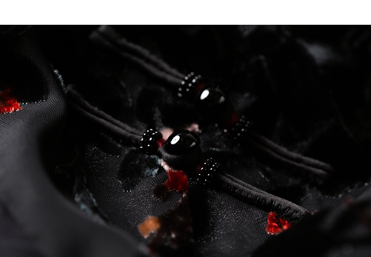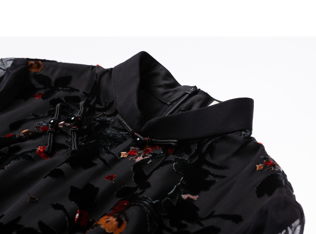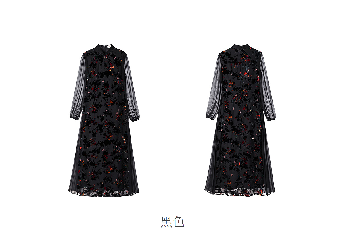 【林栖设计小店】(现货)植绒提花改良旗袍拼桑蚕丝飞片国风轻中式2026早春新款连衣裙1961125