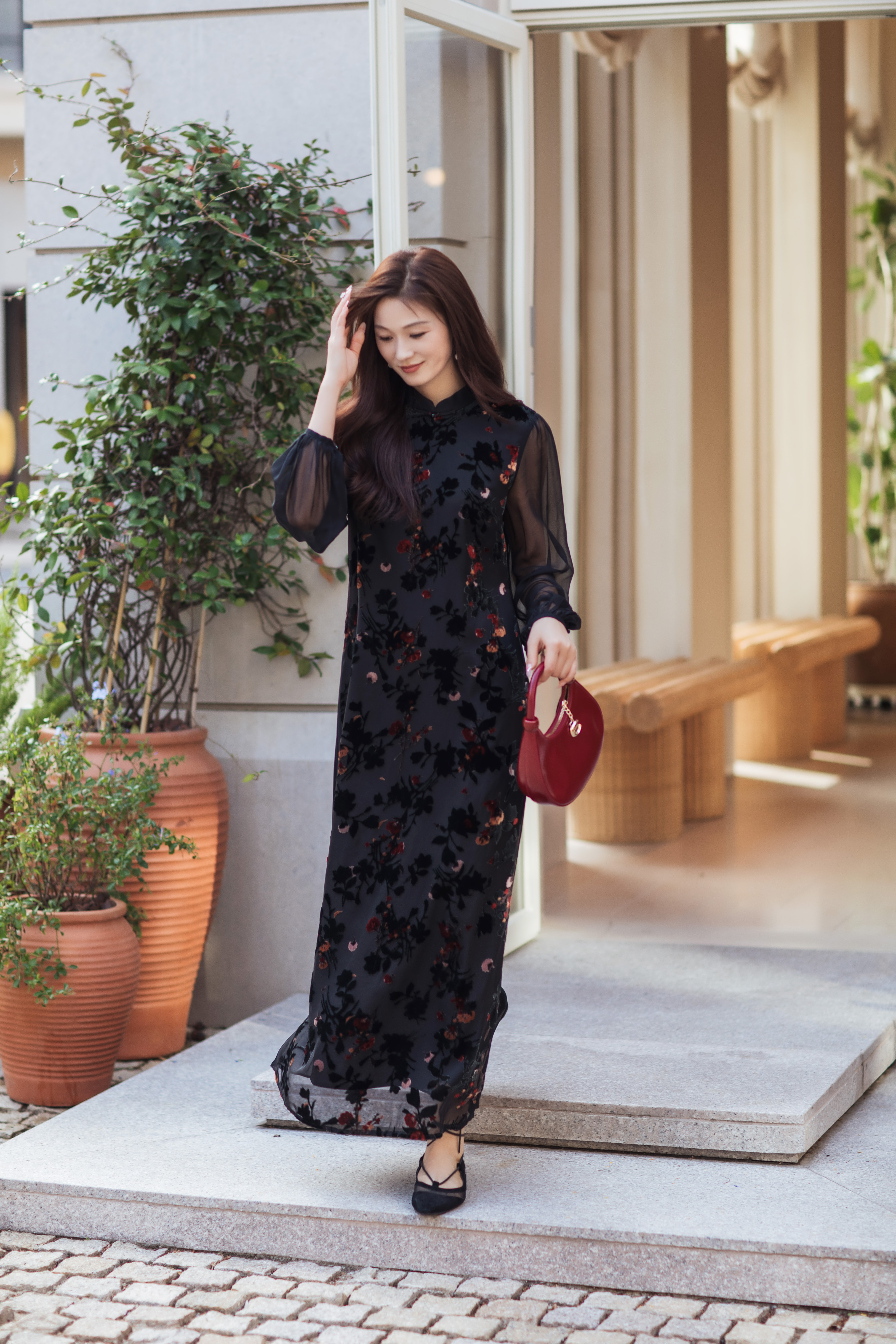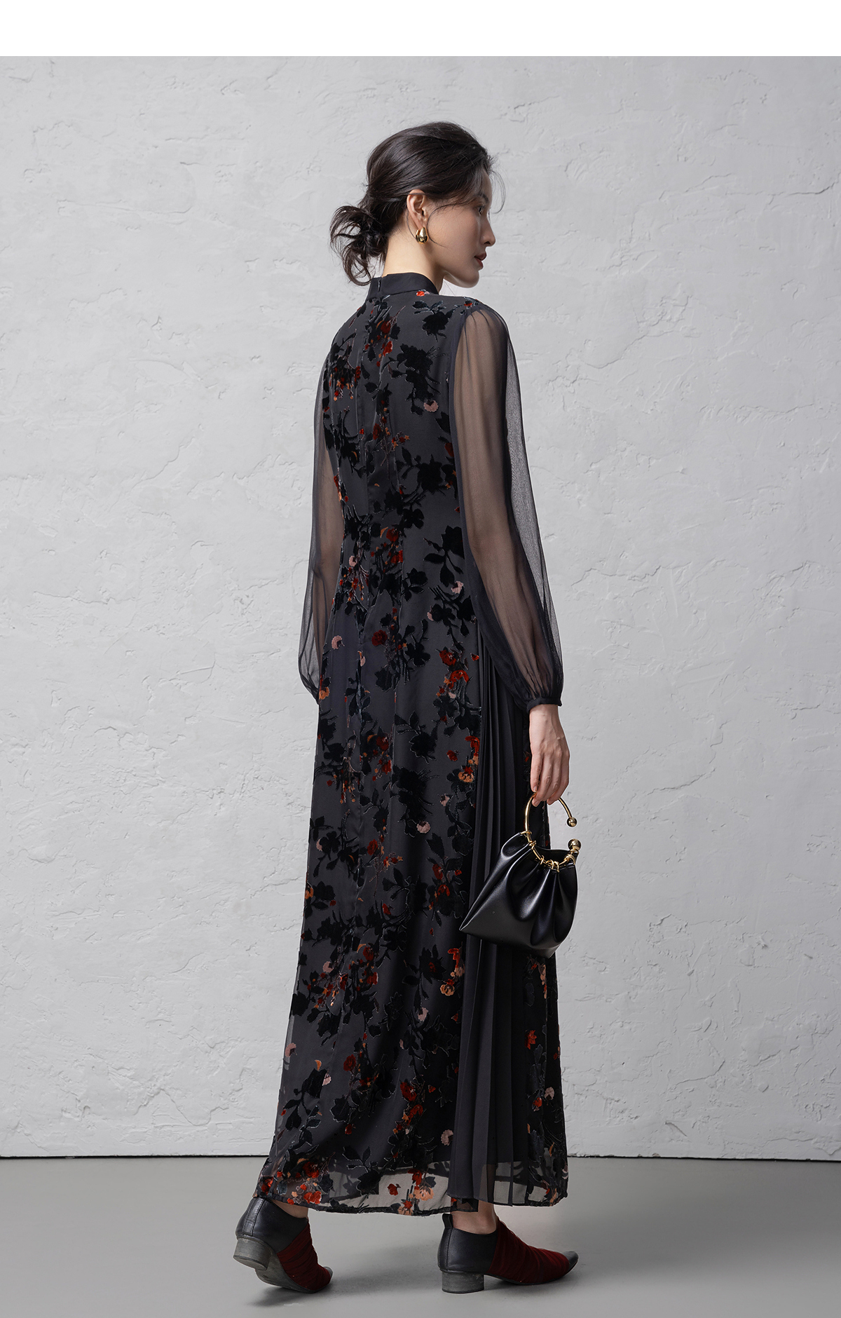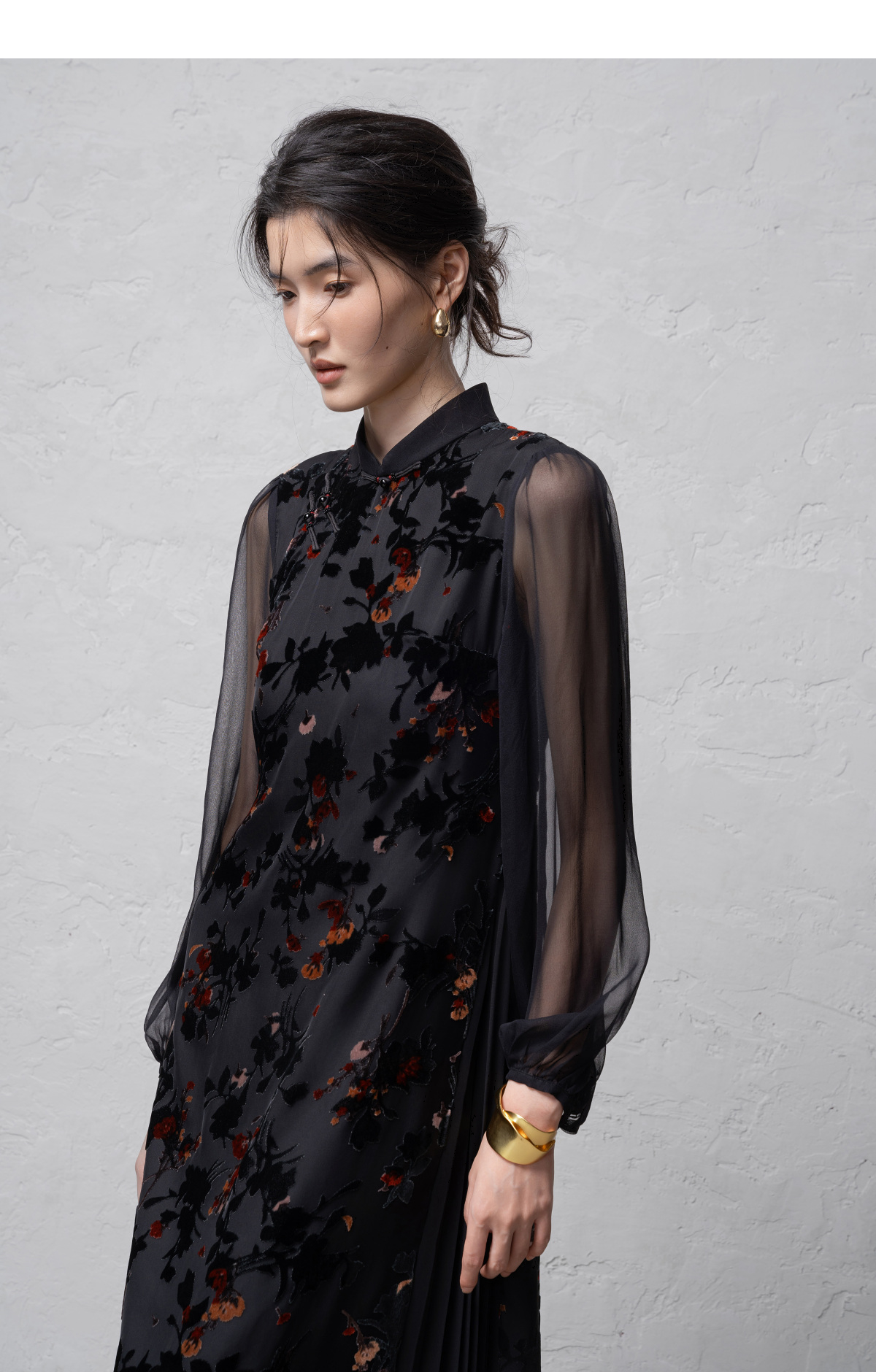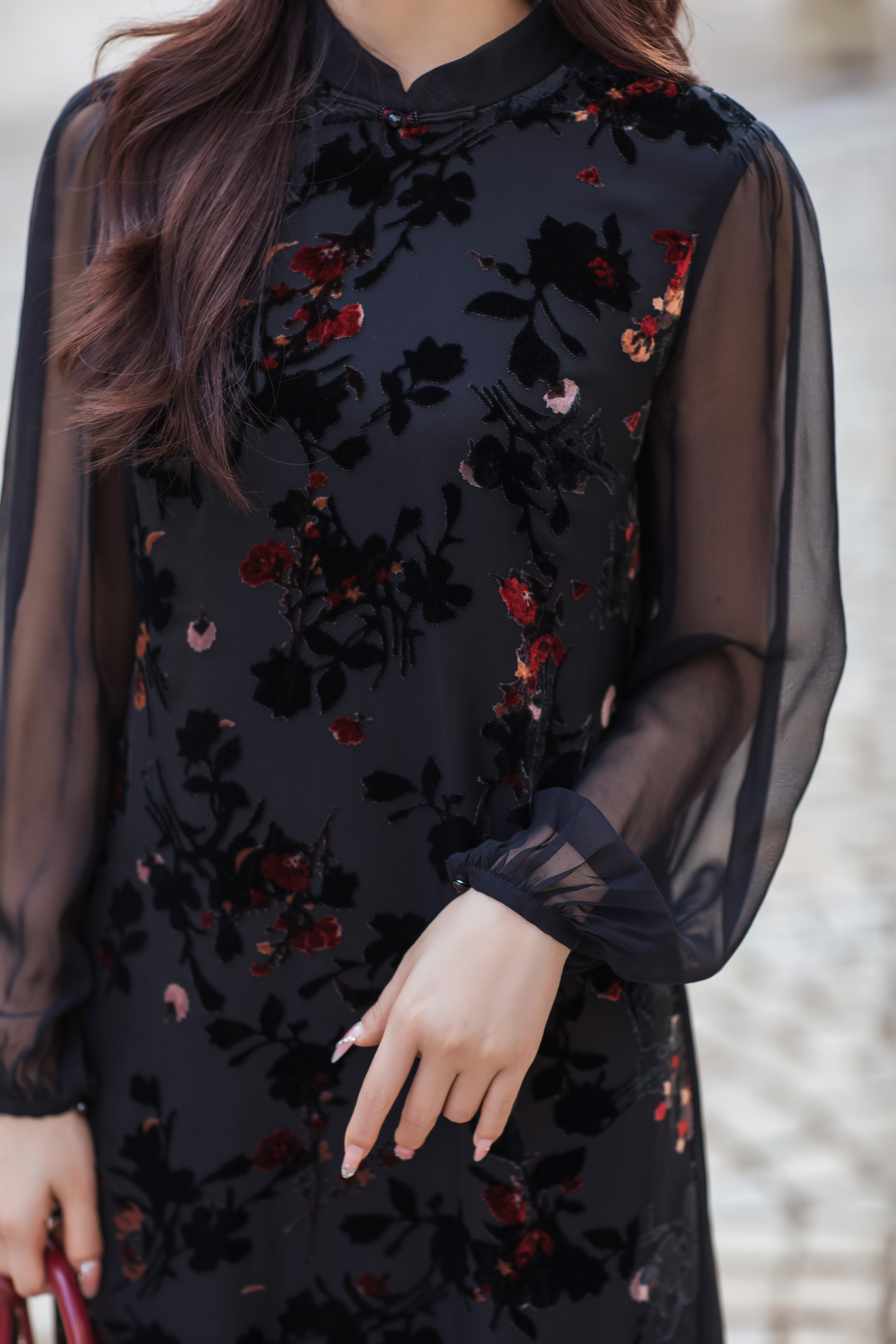 【林栖设计小店】(现货)植绒提花改良旗袍拼桑蚕丝飞片国风轻中式2026早春新款连衣裙1961125