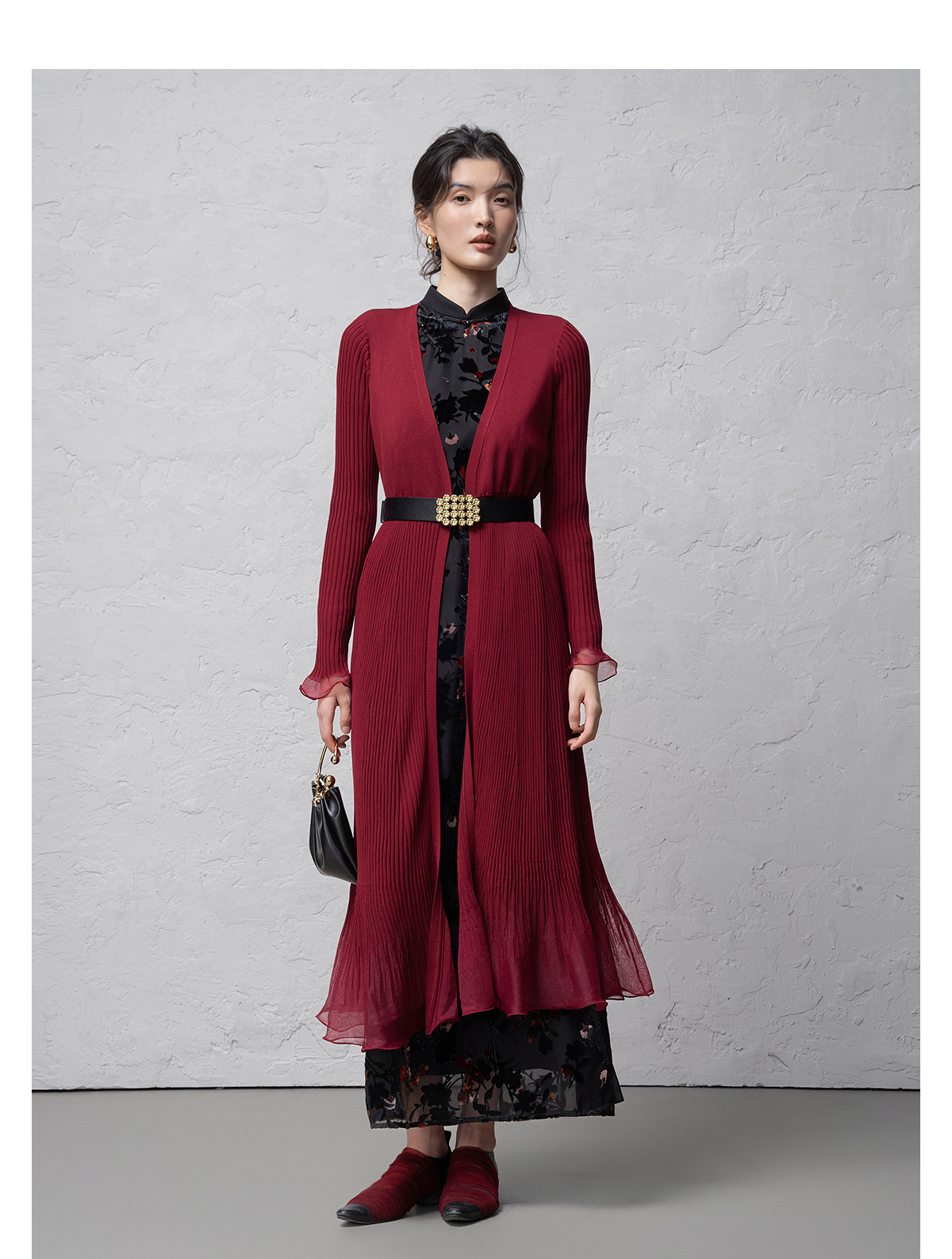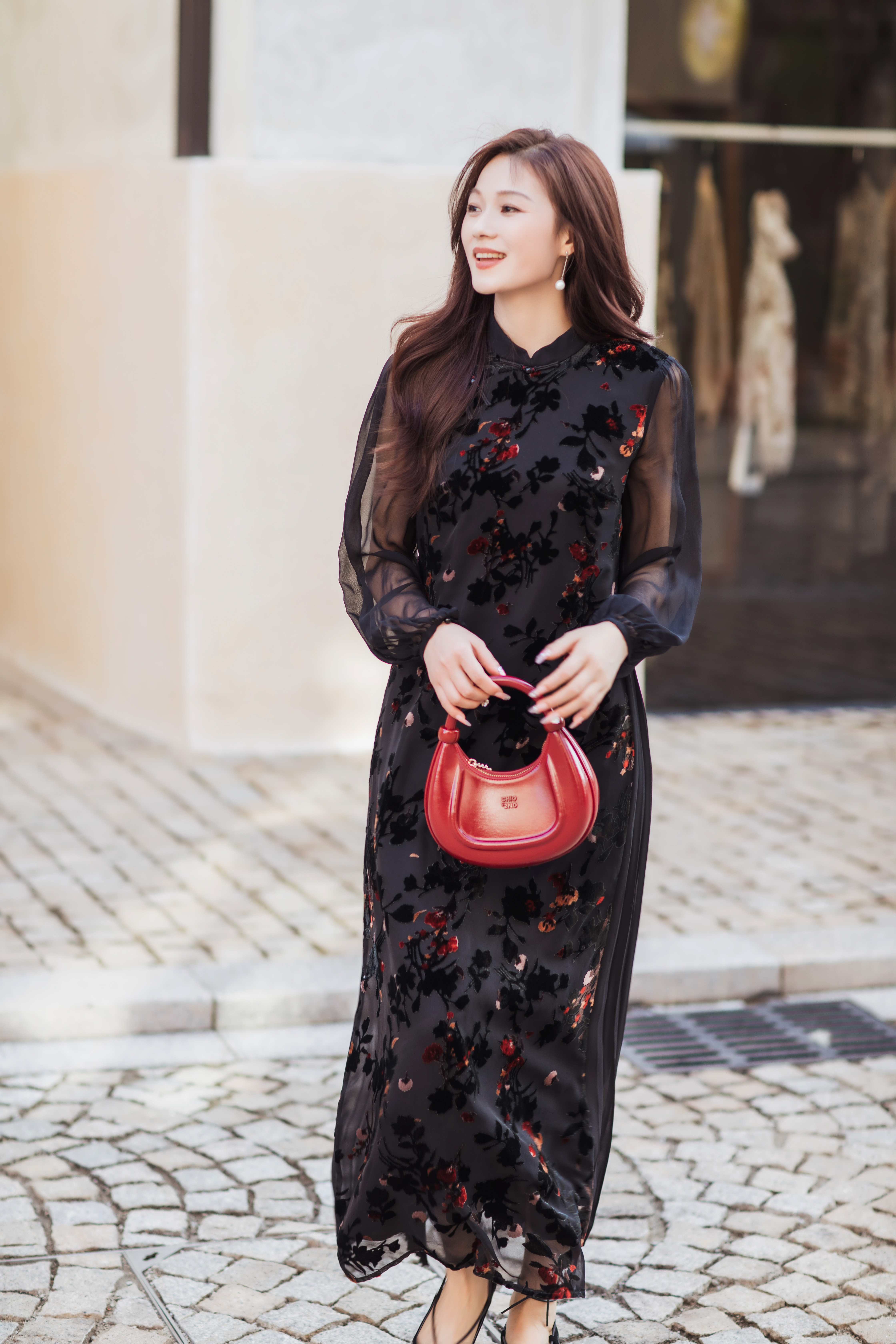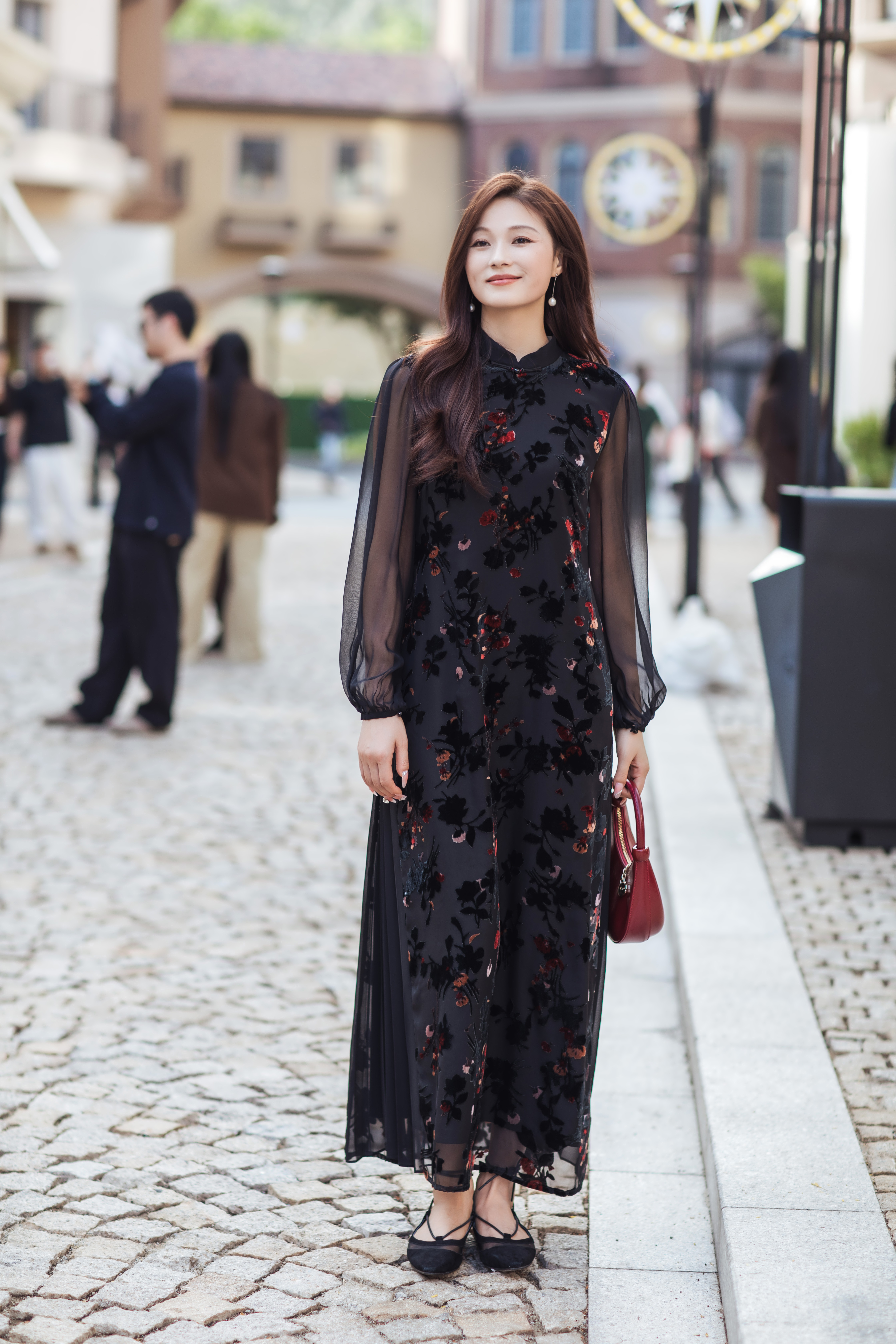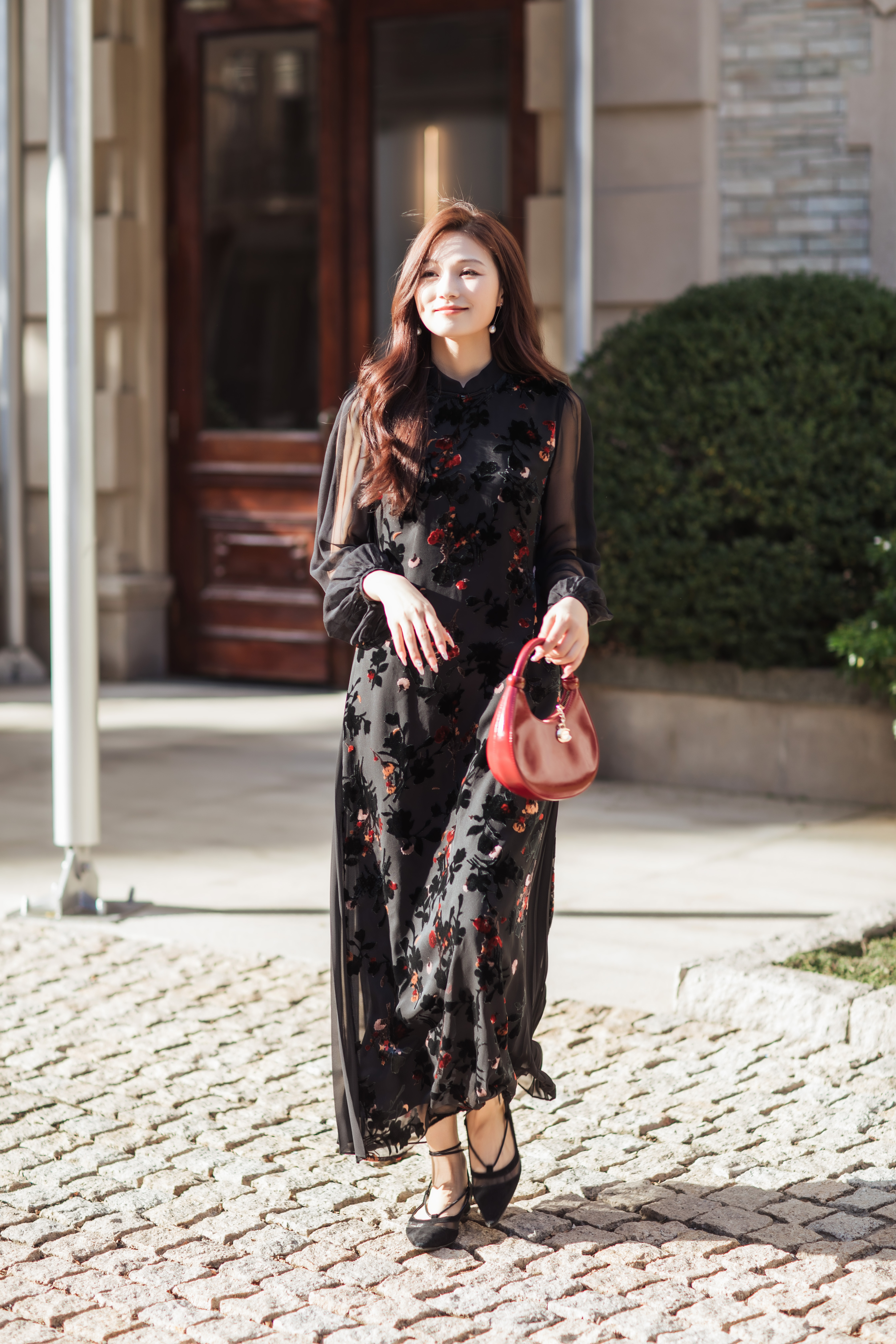 【林栖设计小店】(现货)植绒提花改良旗袍拼桑蚕丝飞片国风轻中式2026早春新款连衣裙1961125