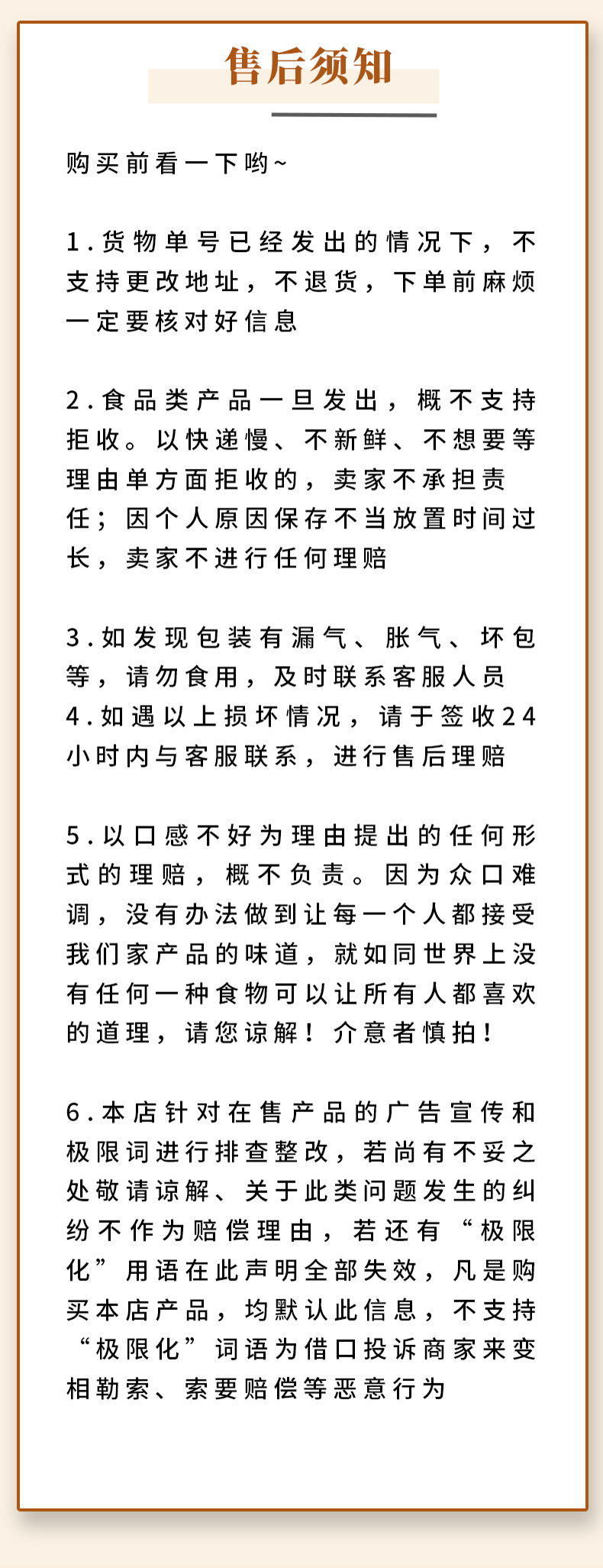2、下单前请核对好信息有无错误,快递发出后不支持拦截改地址,如需改动,根据地址远近收取费用需顾客承担