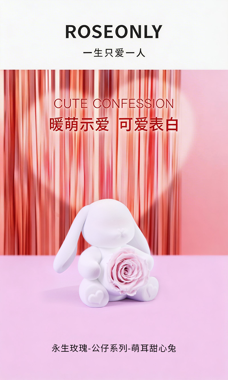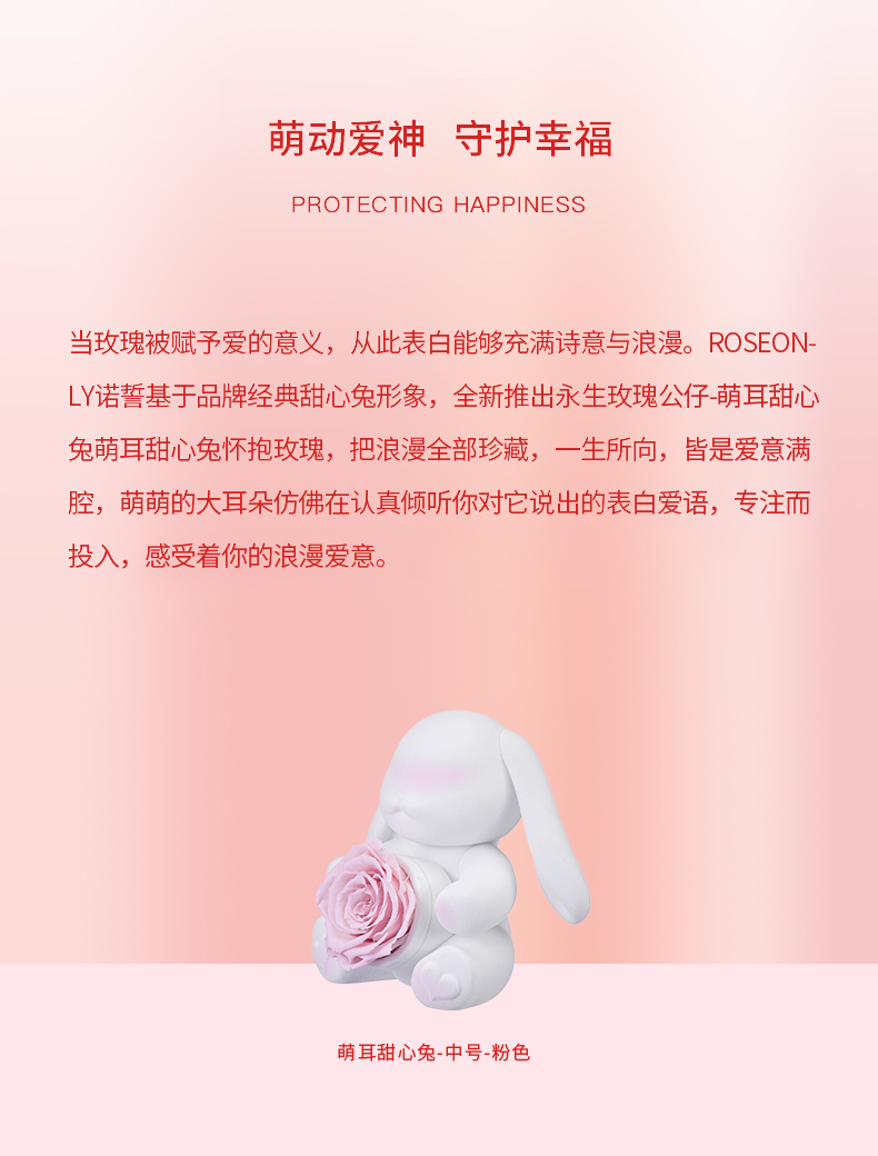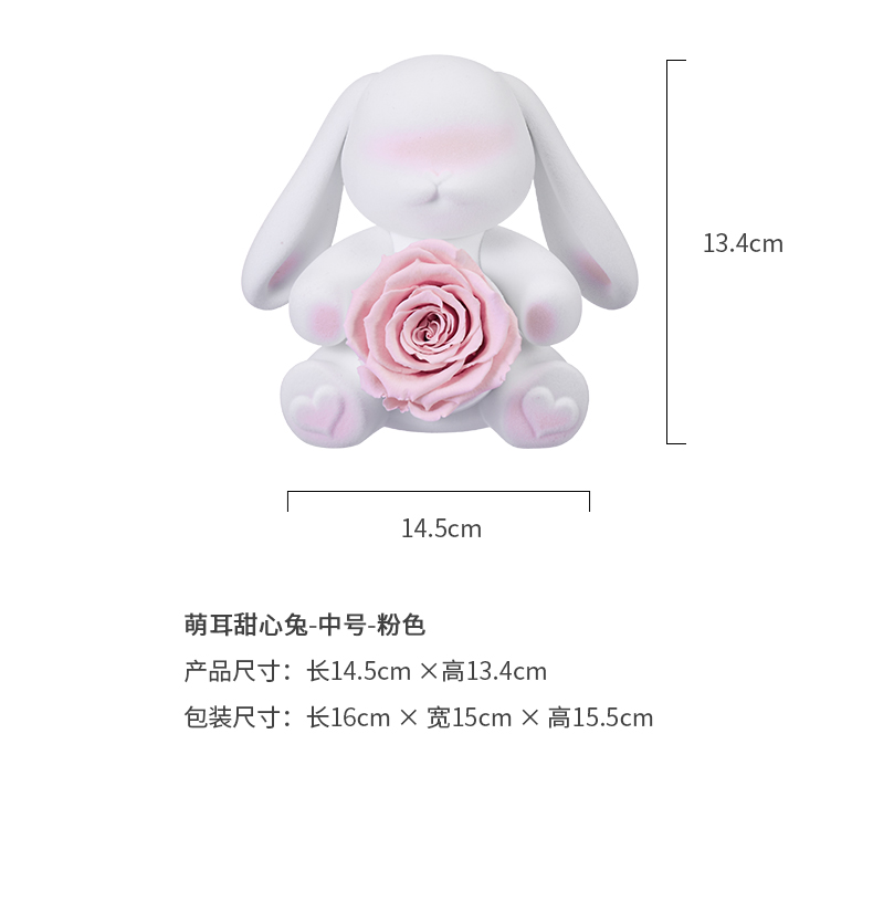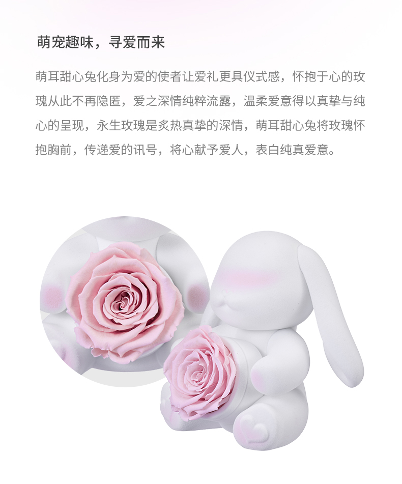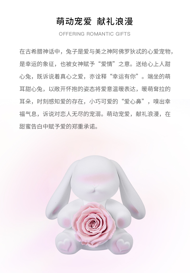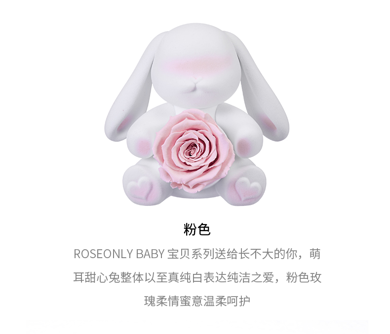 【萌耳甜心兔】ROSEONLY诺誓 永生玫瑰 公仔系列 萌耳甜心兔Baby宝贝 白色 送朋友 情人节礼物