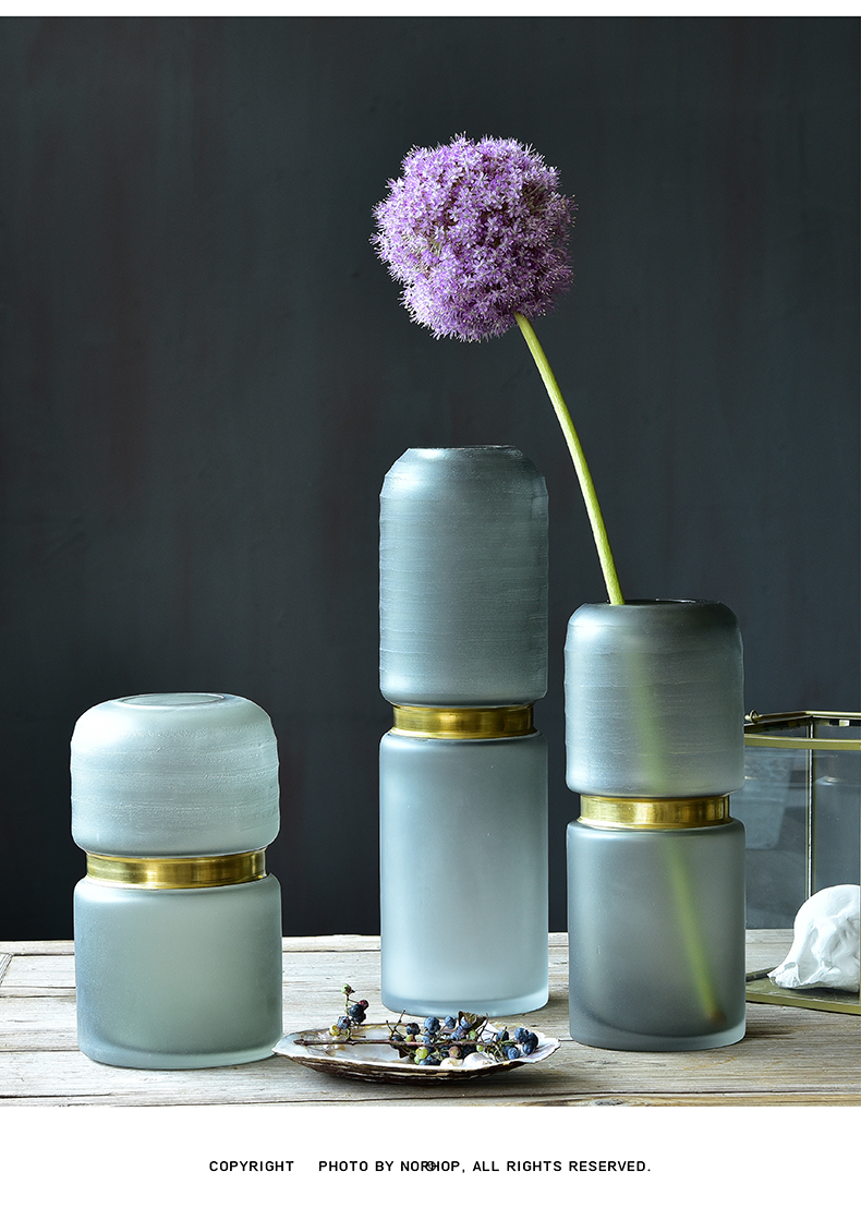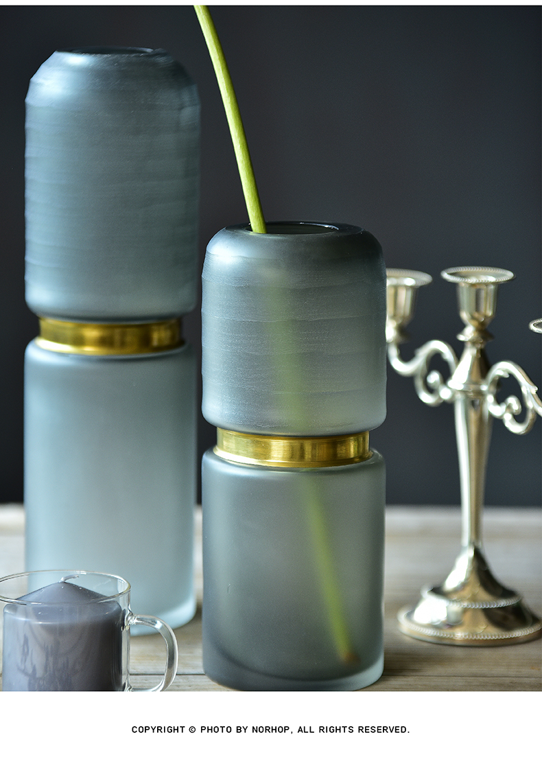 碧轩欧式简约时尚金属玻璃花瓶创意插花干花家居摆件客厅桌面电视柜