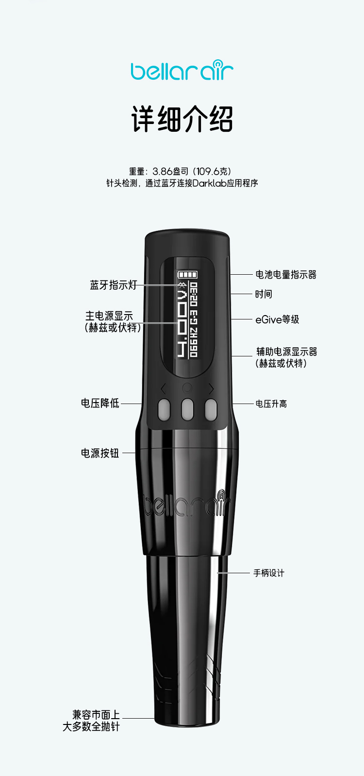 新款红叶指环Pro三模式无线纹身笔马达直驱割线打雾惊蛰刺青器材