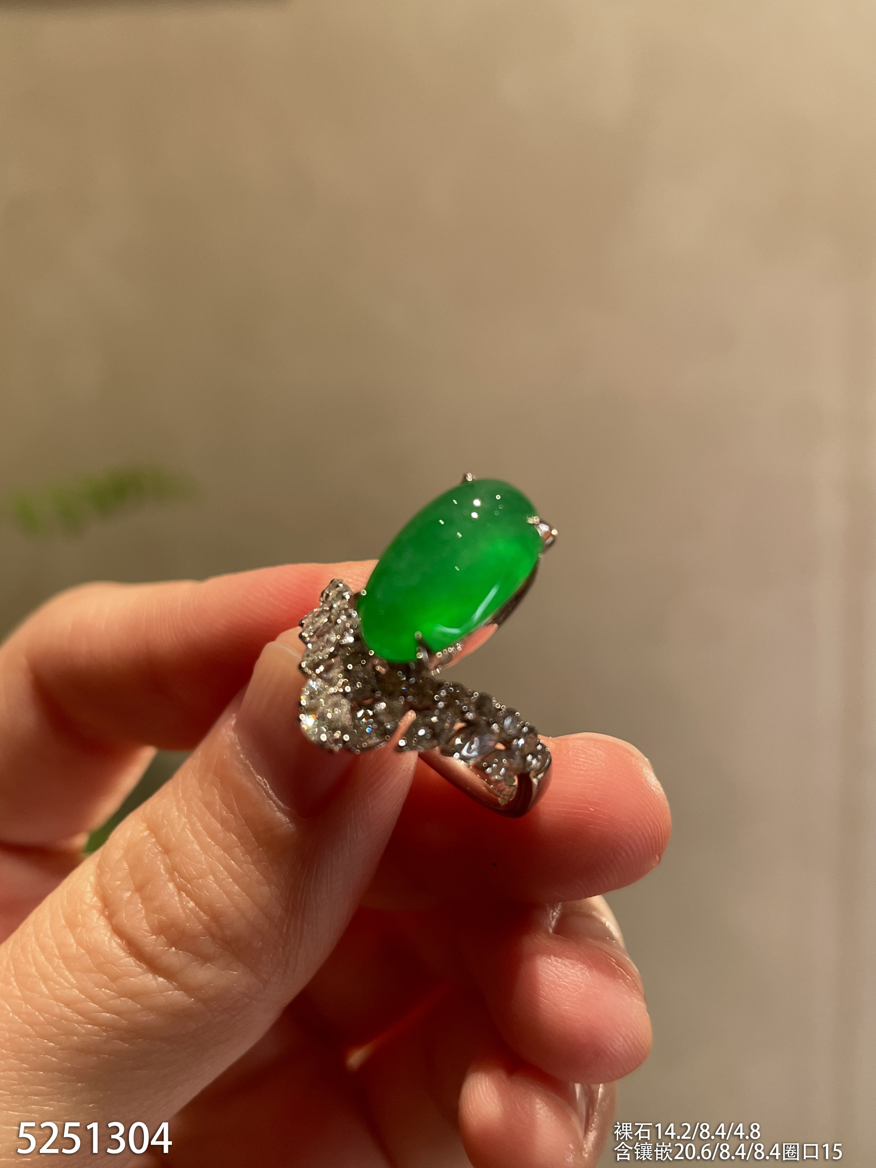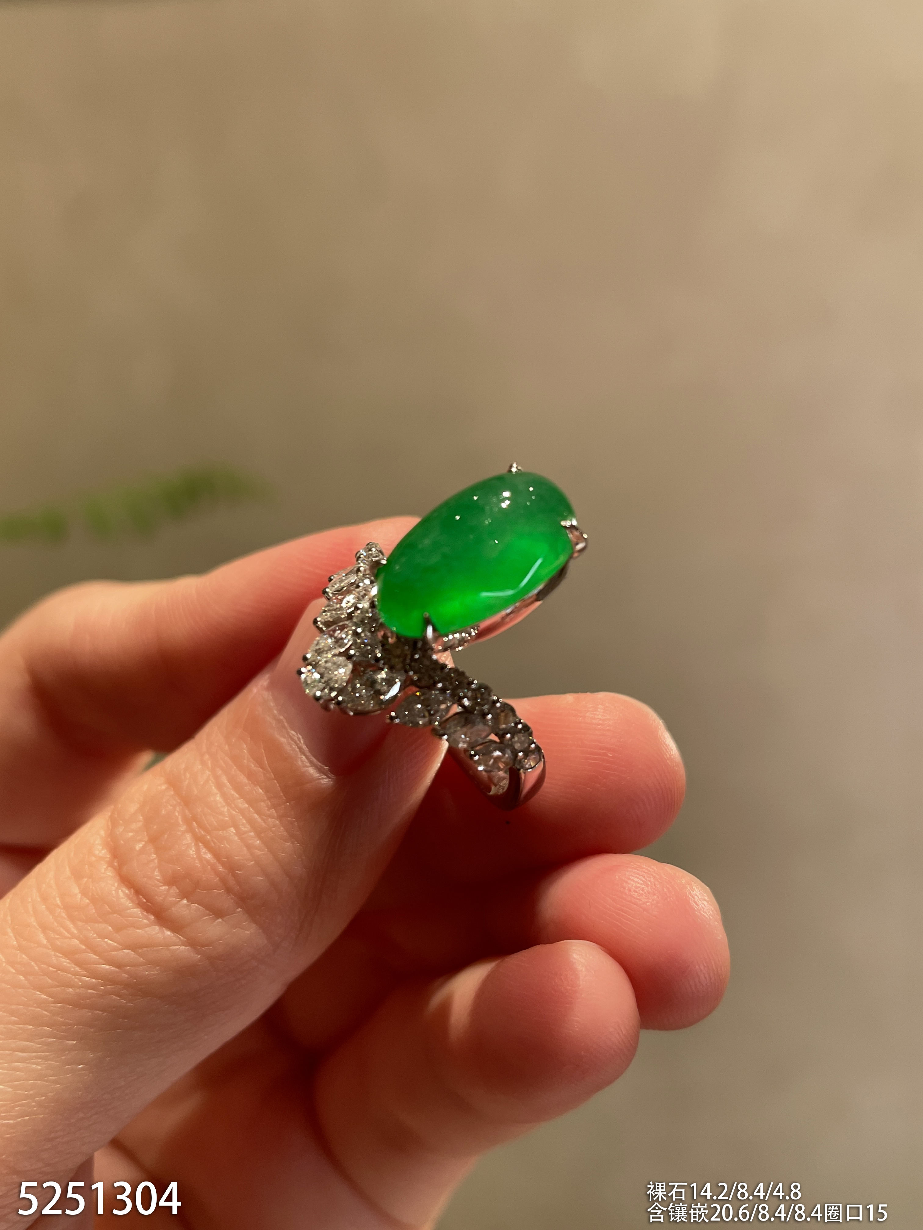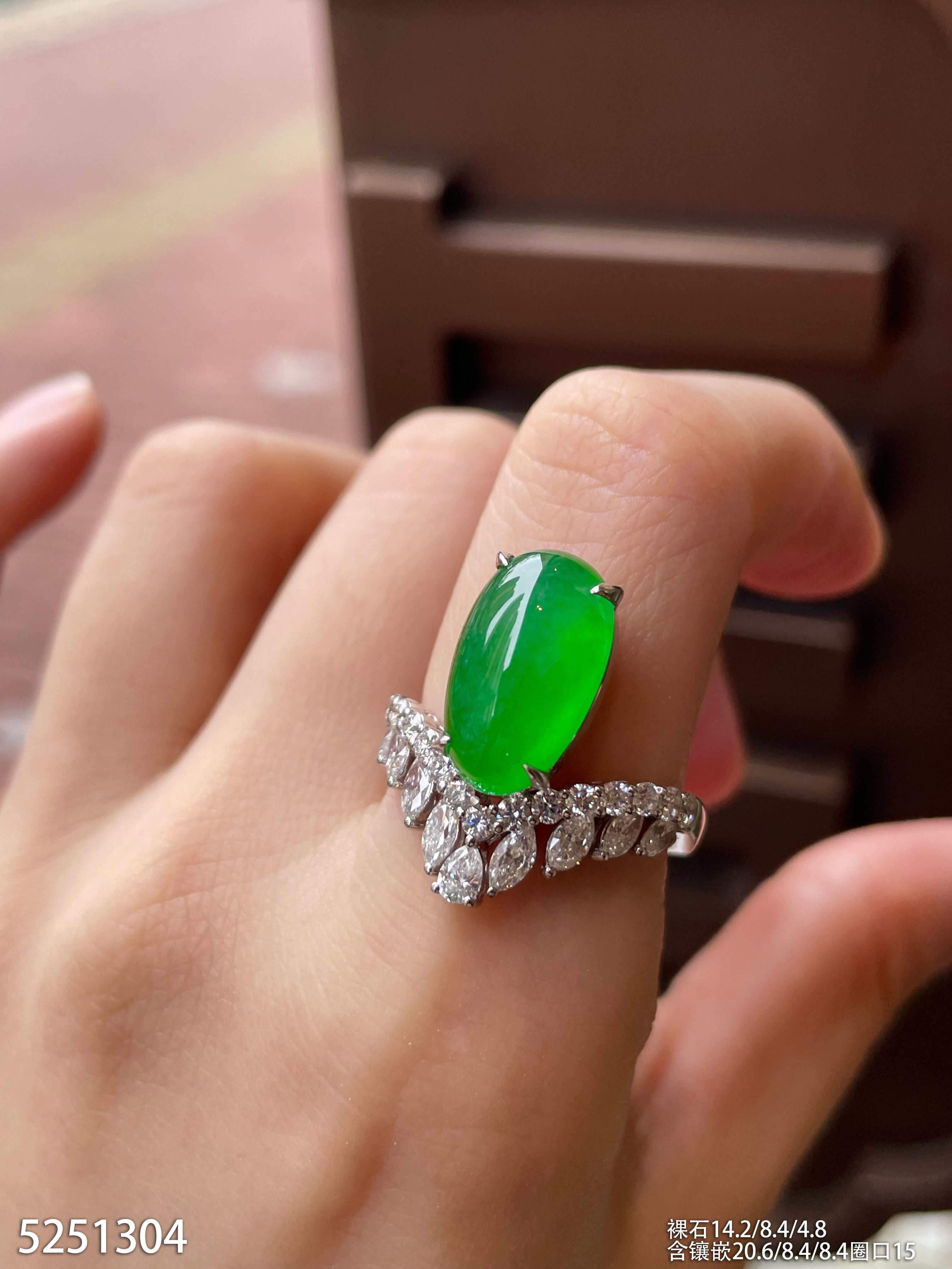 老坑艳绿蛋面戒指【5251304】具体价格微信咨询