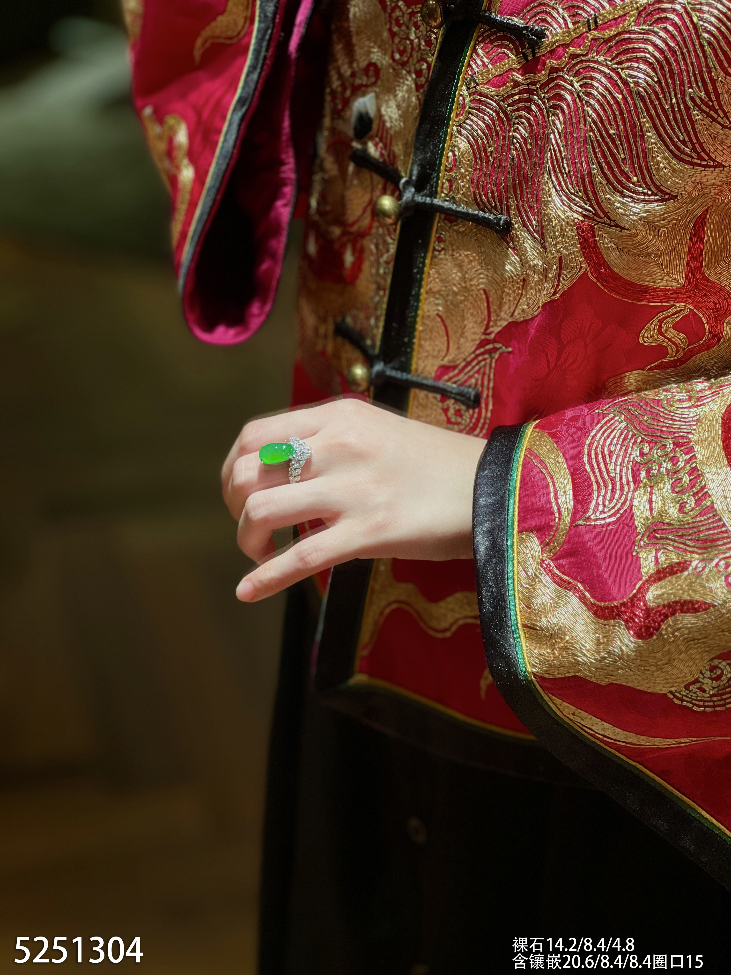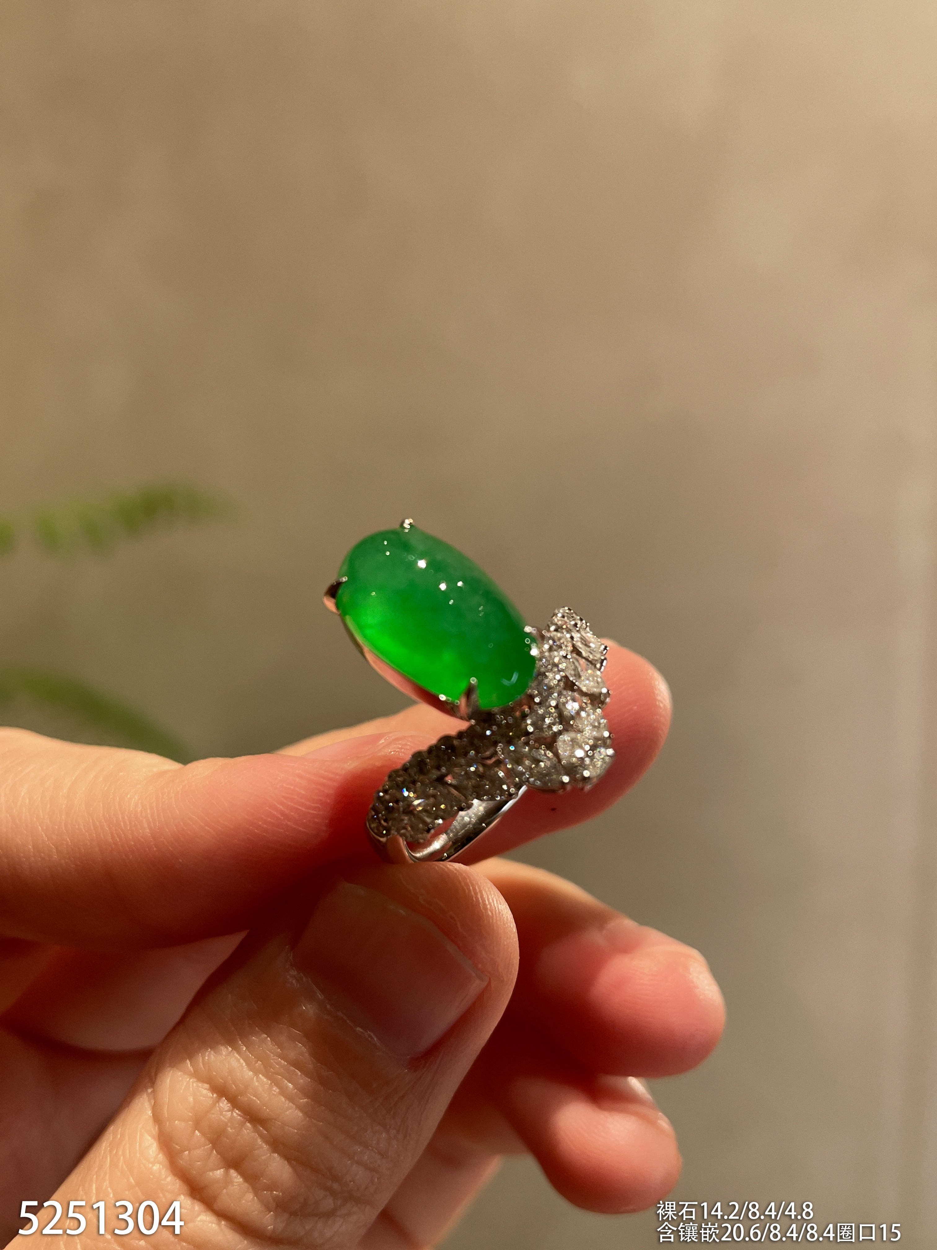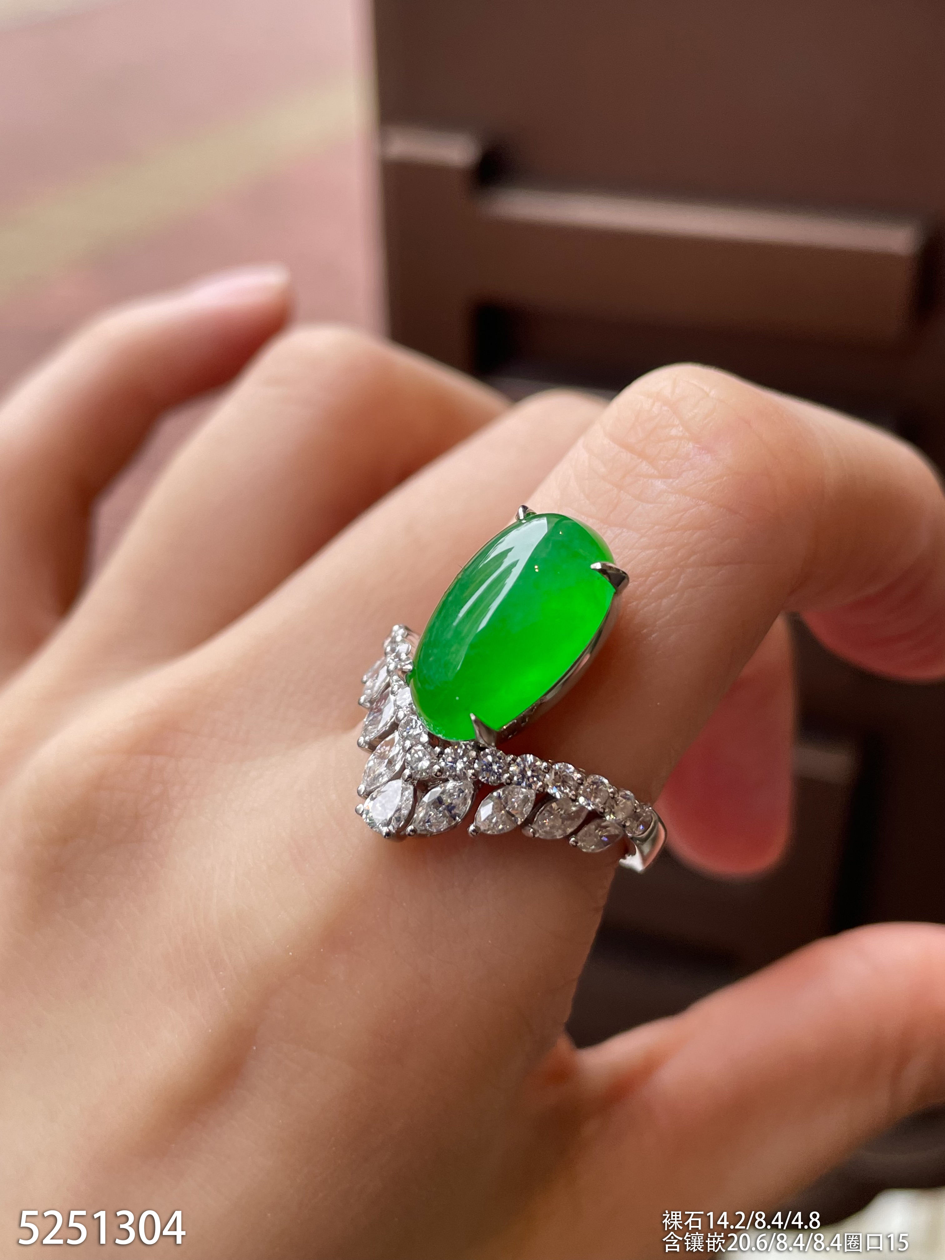 老坑艳绿蛋面戒指【5251304】具体价格微信咨询