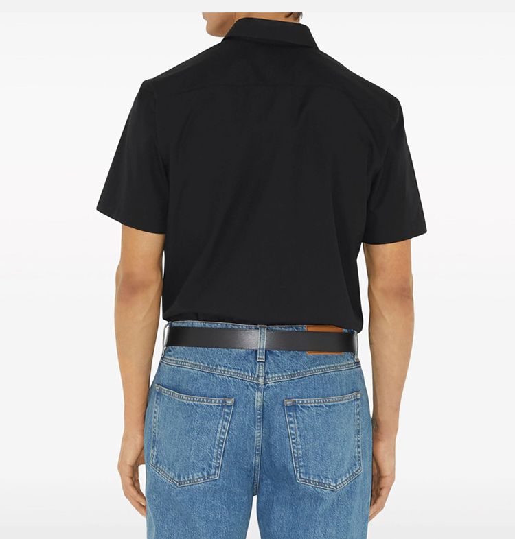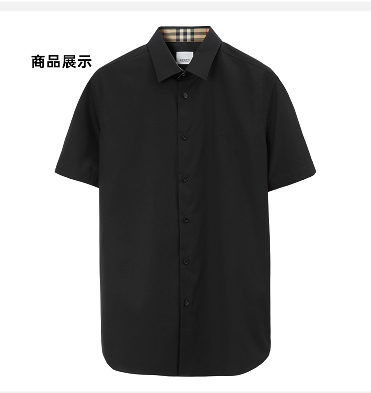 BURBERRY 巴宝莉 男士马术骑士徽标弹力棉质短袖衬衫 深蓝色 8079595 A1222