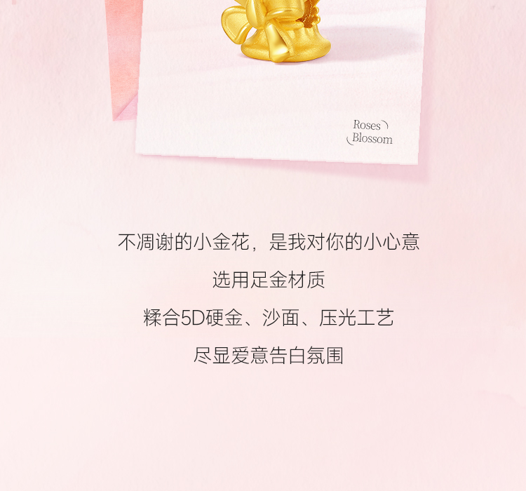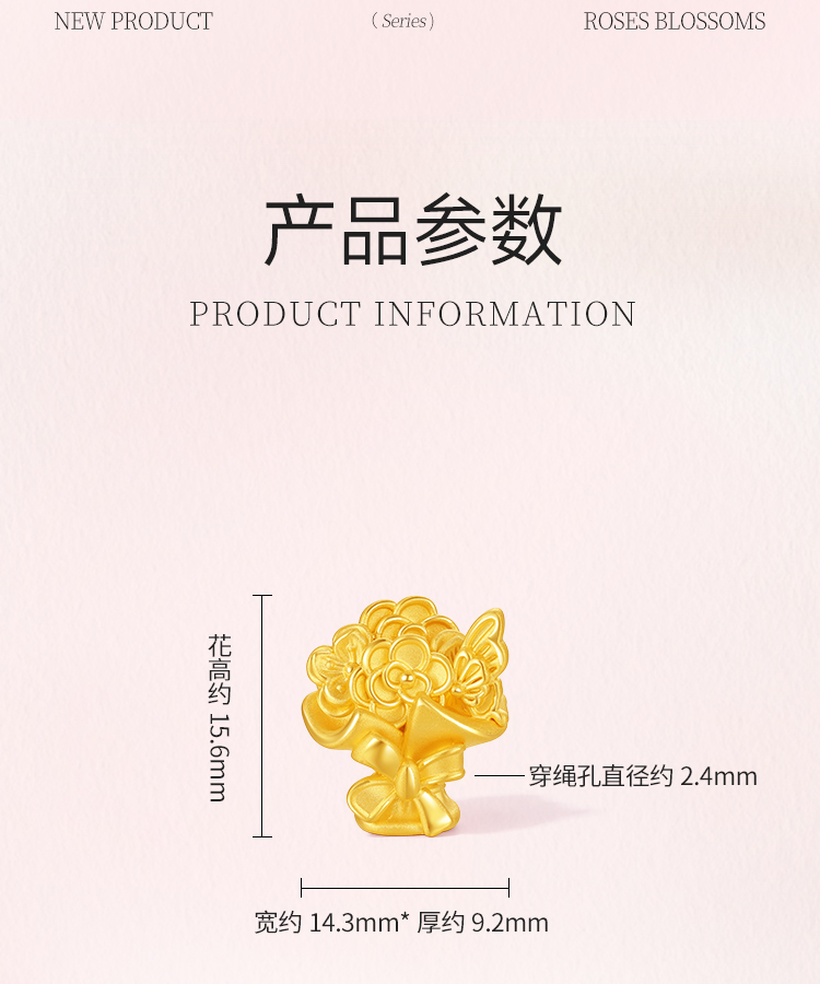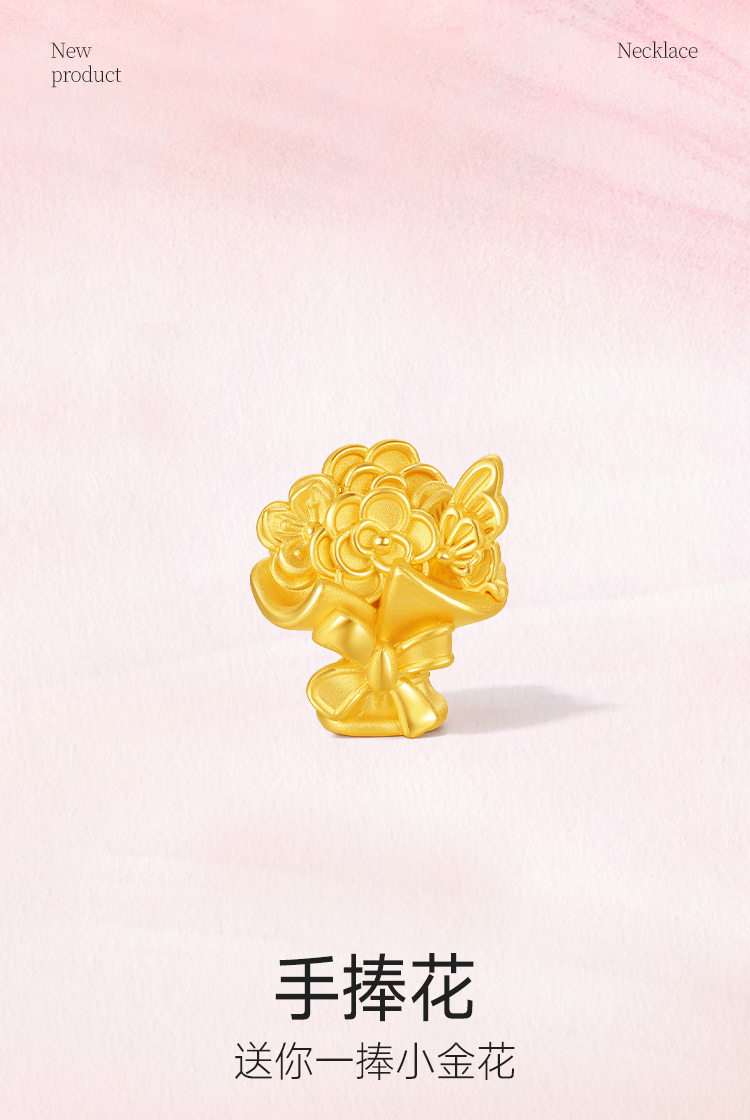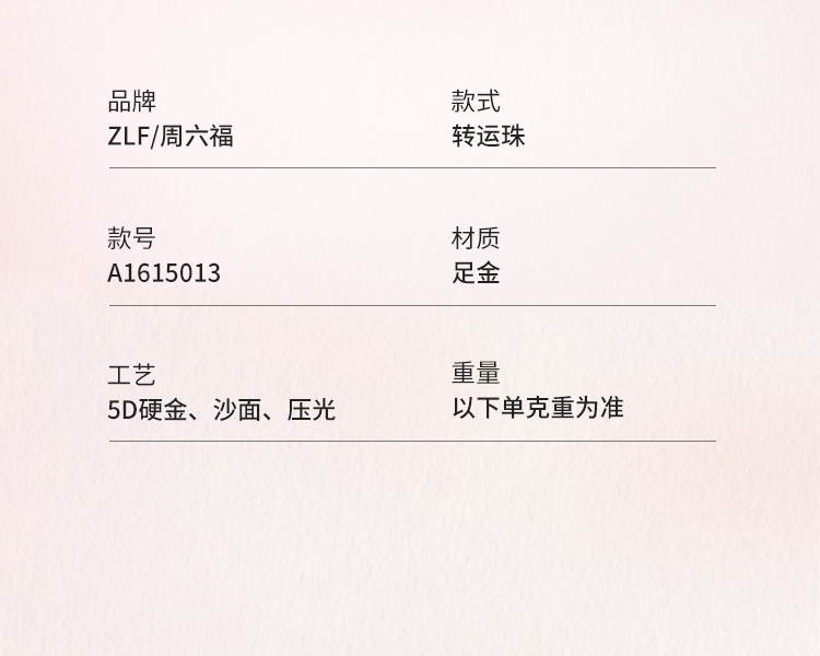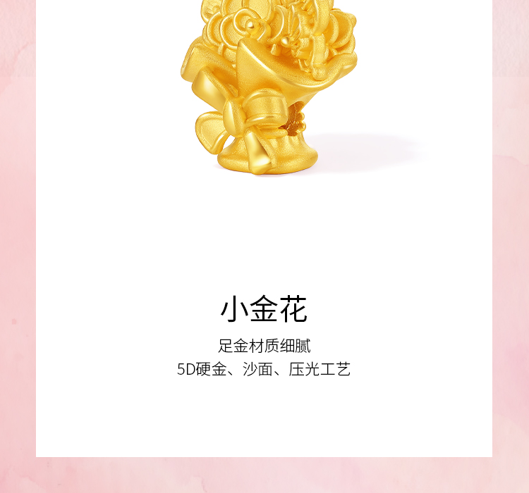 周六福黄金转运珠女款5d硬金定价路路通手捧花不含绳送妈妈送女友