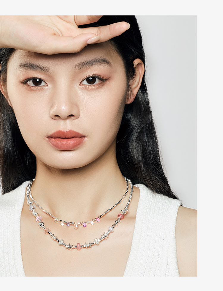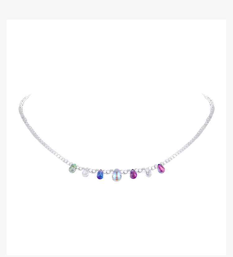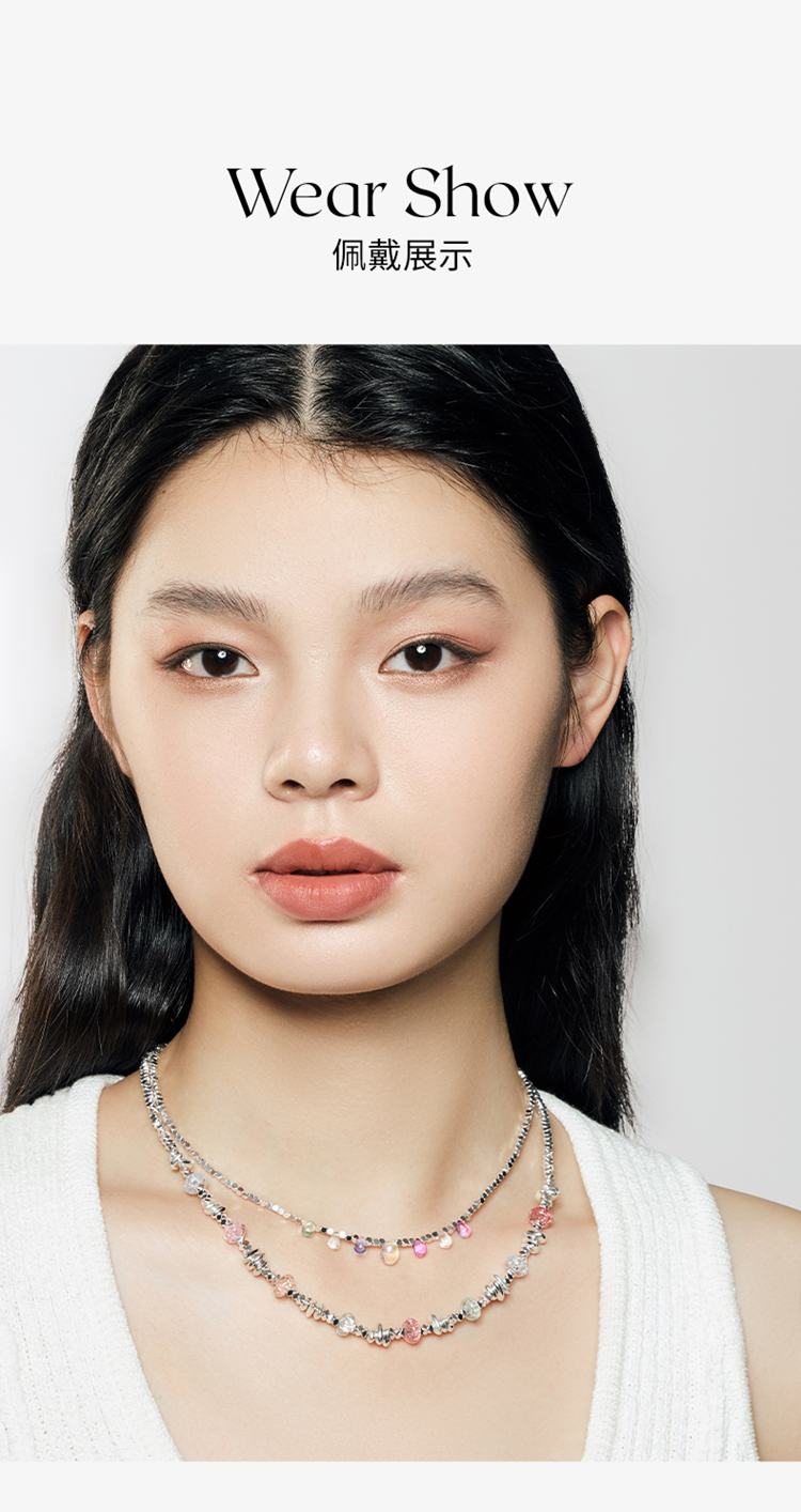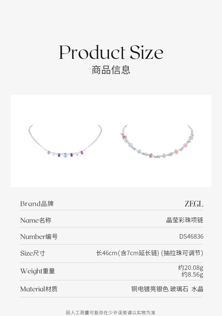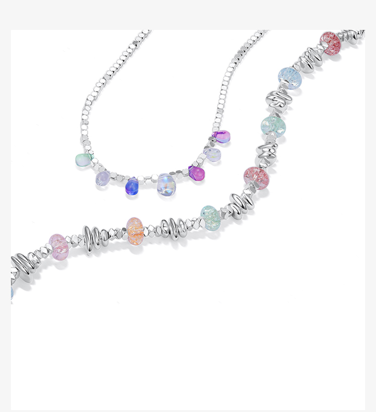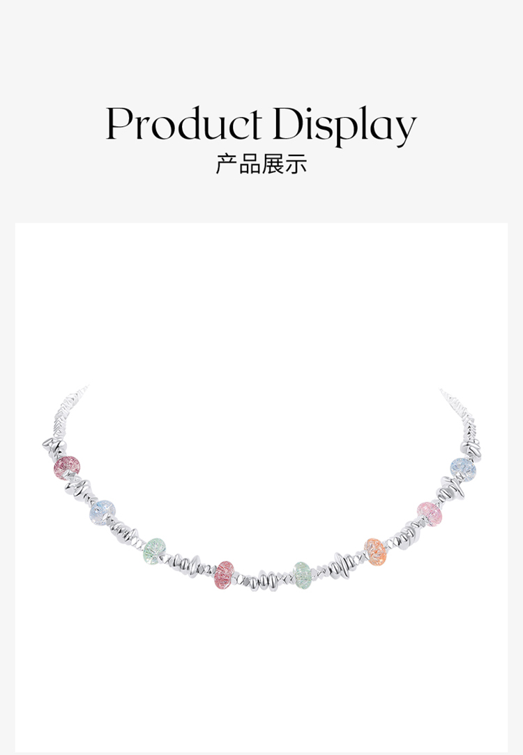 ZEGL彩色碎银子项链女款轻奢小众高级感法式复古串珠多巴胺穿搭锁骨链配饰品