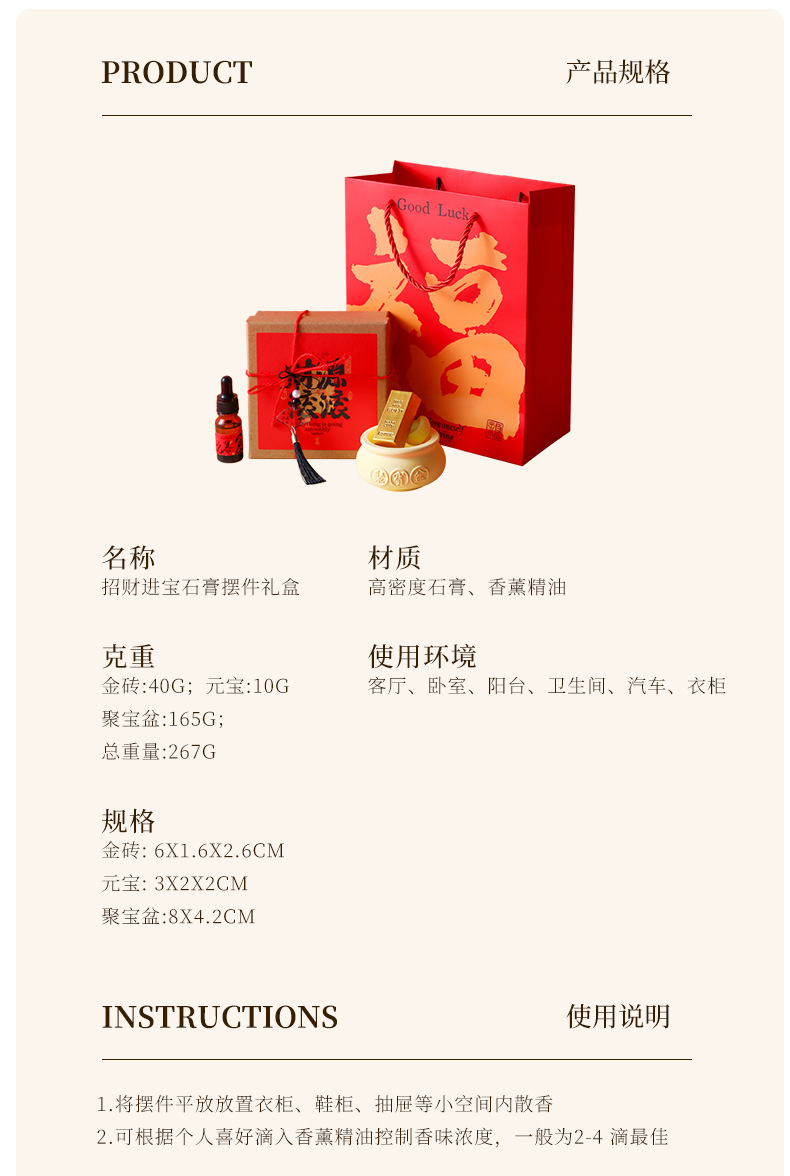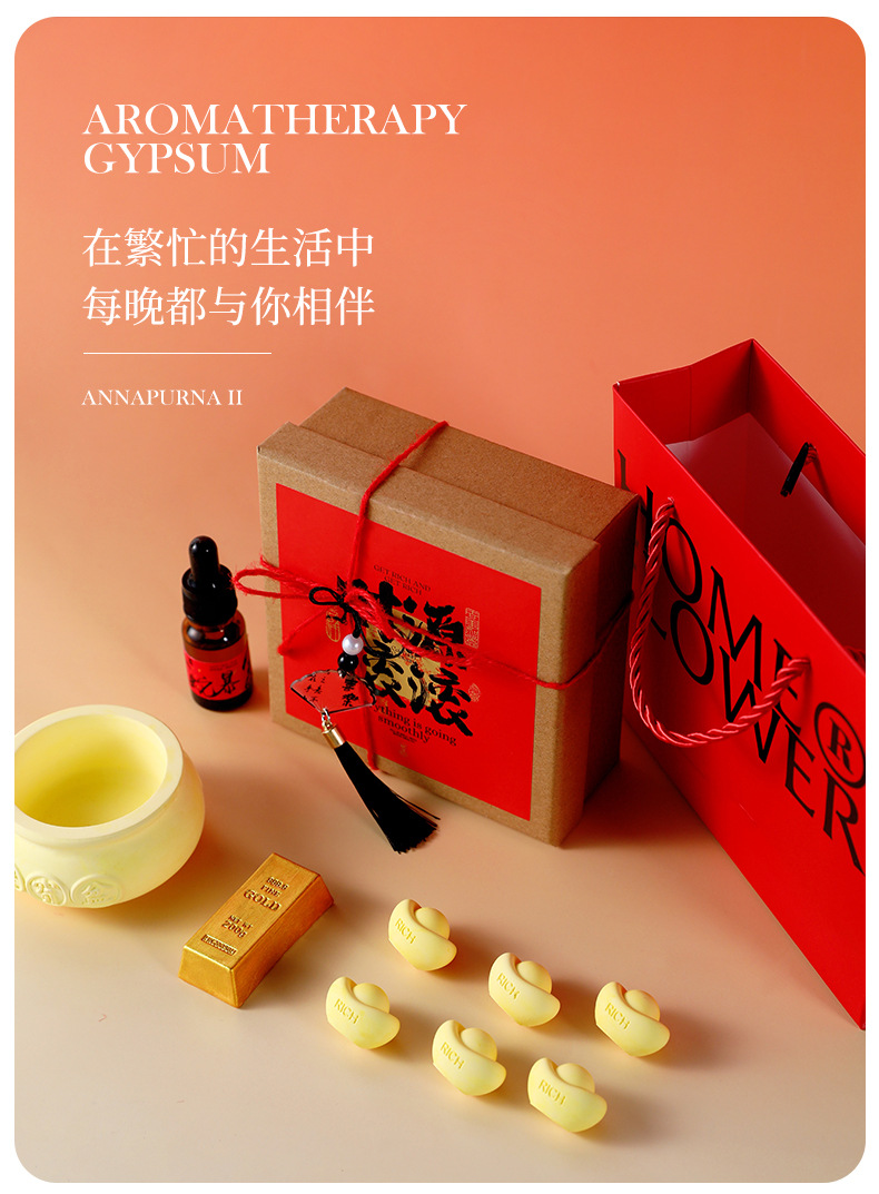 【招财进宝石膏扩香石】家居卧室留香摆件香薰精油礼盒 伴手礼香氛