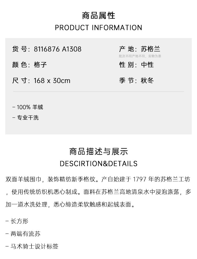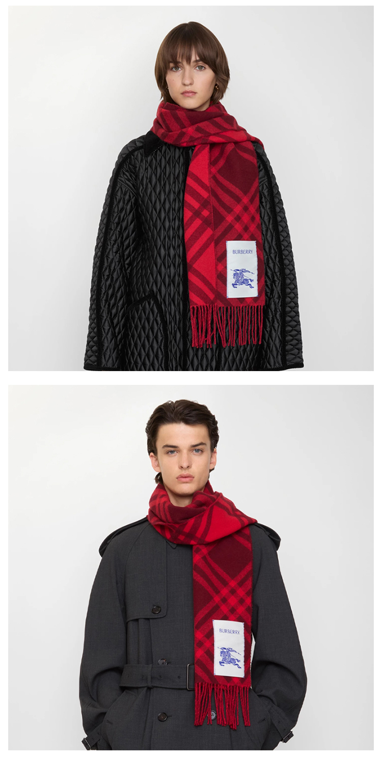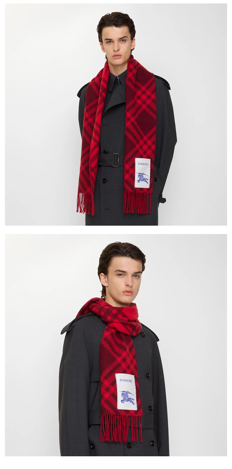 BURBERRY 巴宝莉 中性马术骑士徽标格子标签羊绒围巾 格子 8116876 A1308