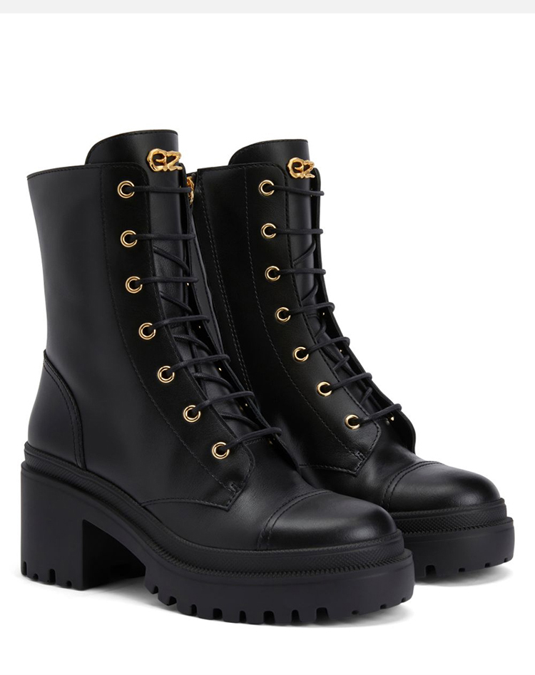 Giuseppe Zanotti 女士GZ金属徽标系带机车靴 黑色 I270038001