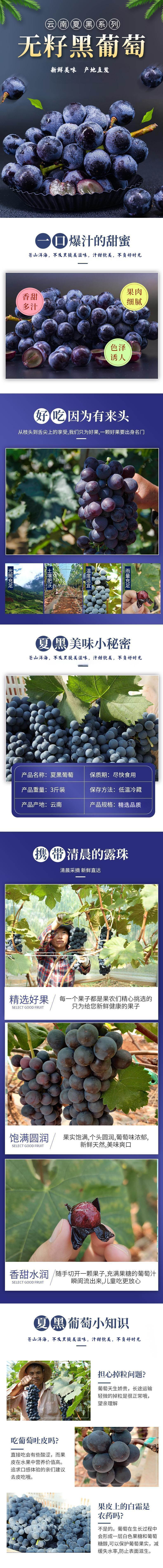 第十一年订单式种植【云南夏黑葡萄】无籽或少籽,不打膨大剂,多挂树20天采摘,风味十足(72小时内发货)