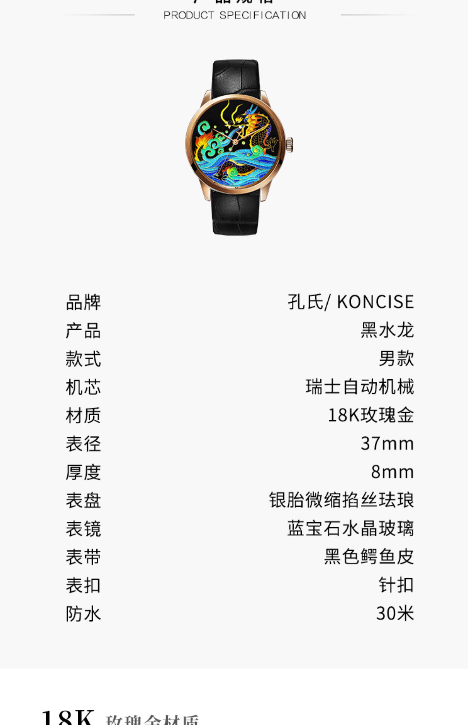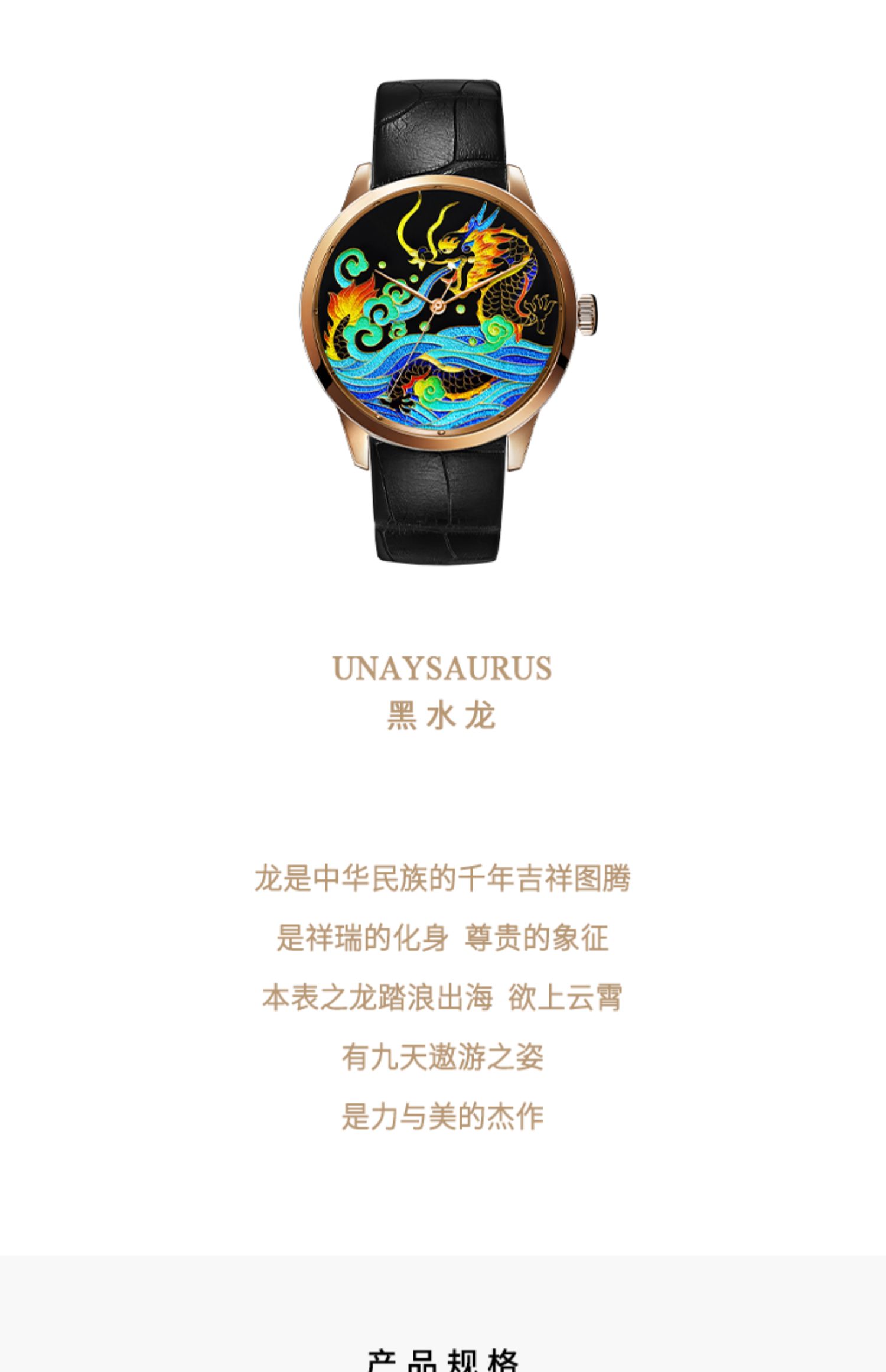 KONCISE孔氏珐琅 黑水龙 18K金 掐丝珐琅腕表