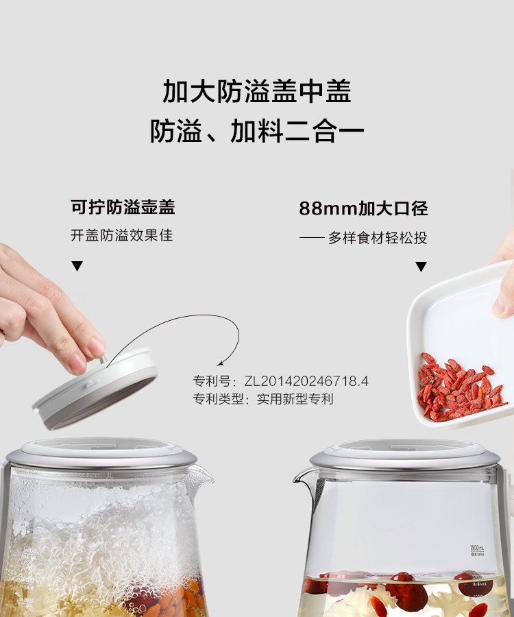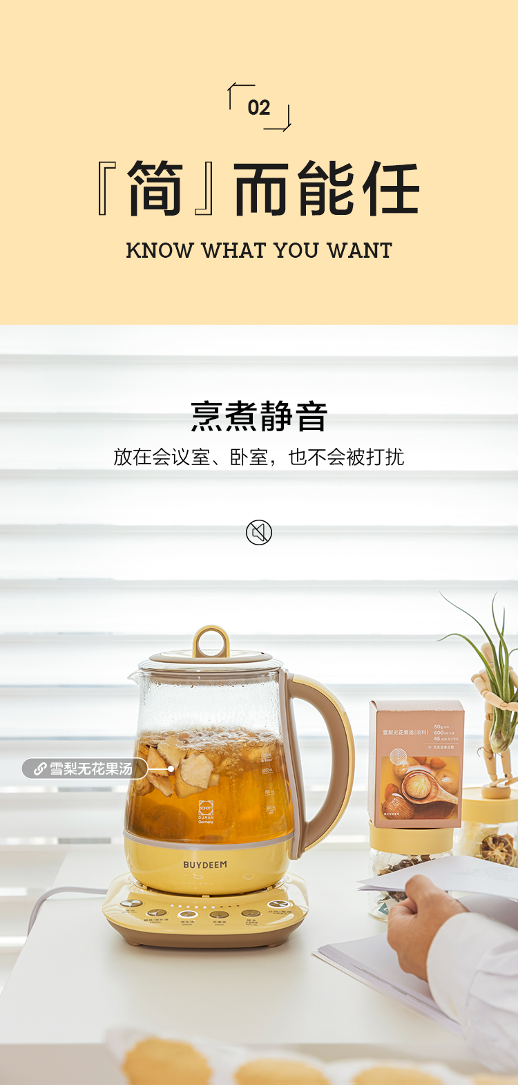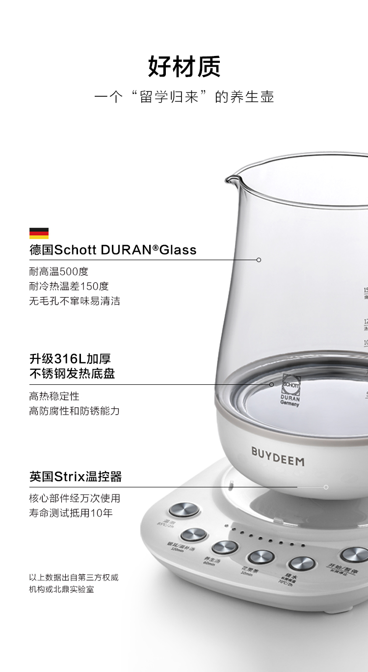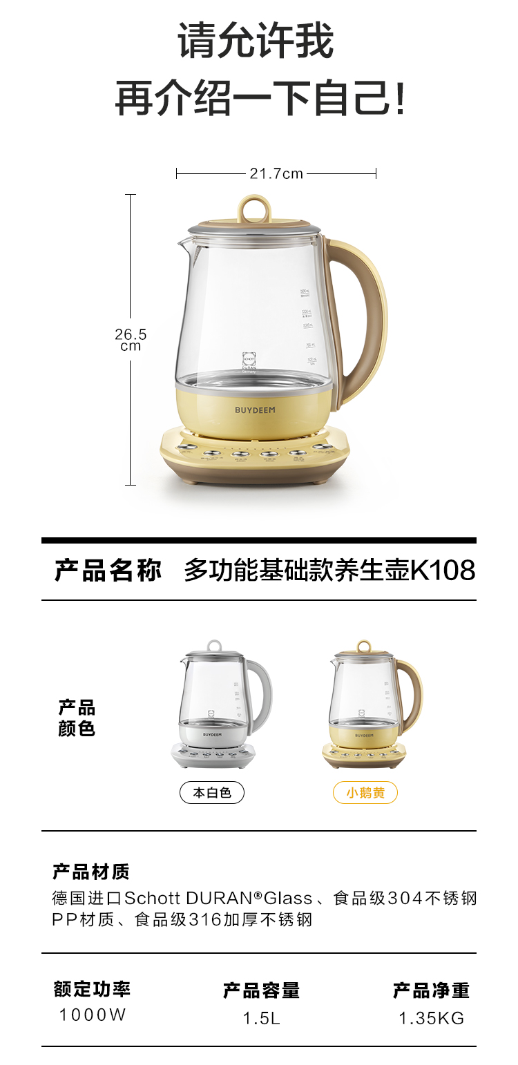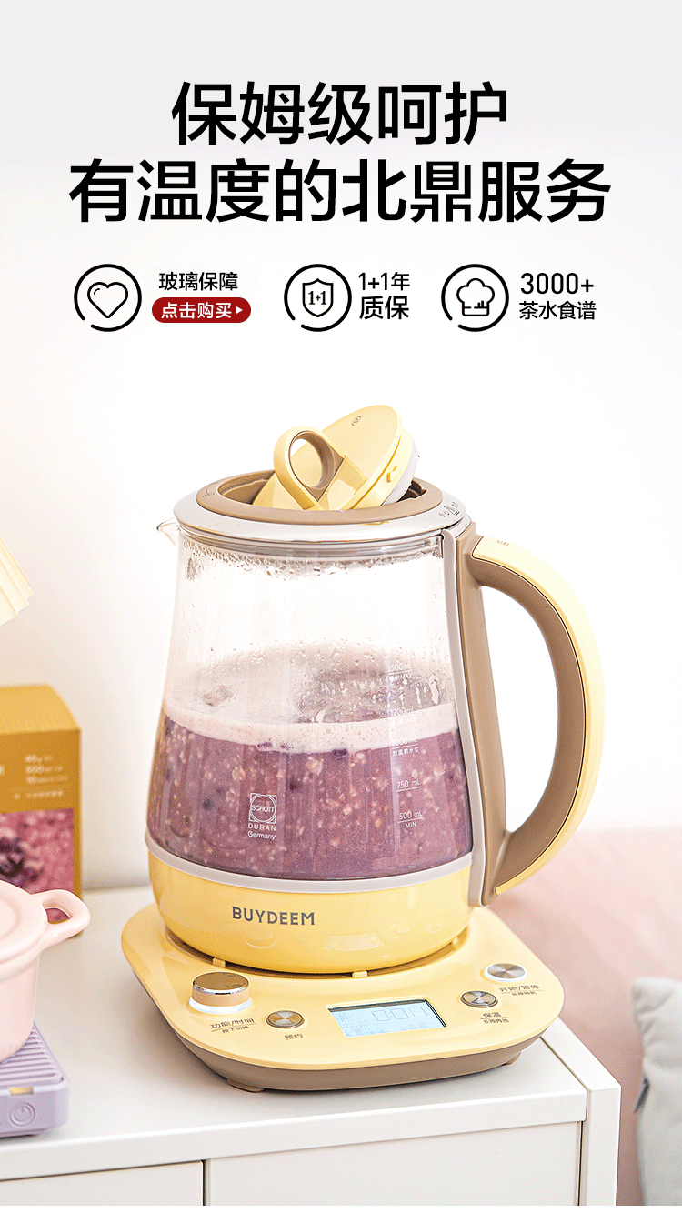 北鼎K108全自动养生壶多功能静音炖煮银耳羹肖特玻璃烧水壶小白壶