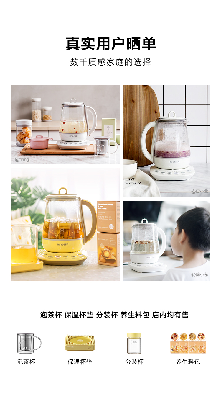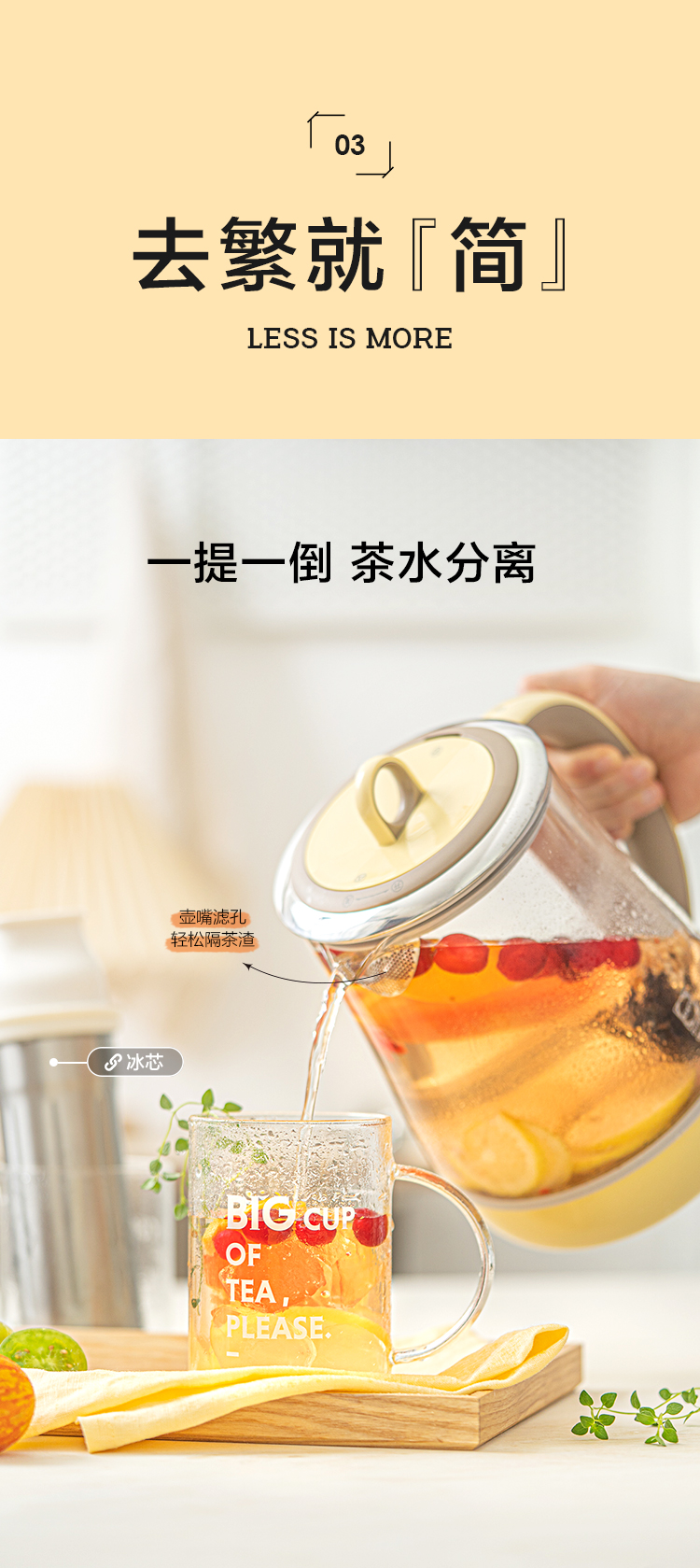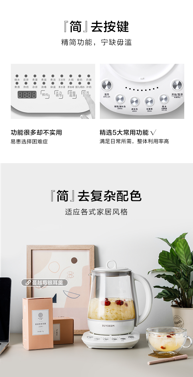 北鼎K21多功能玻璃电养生壶煮茶器花茶壶一体 不锈钢茶漏滤网隔渣
