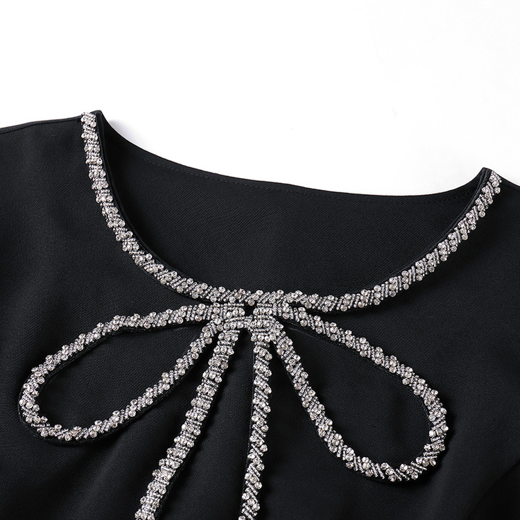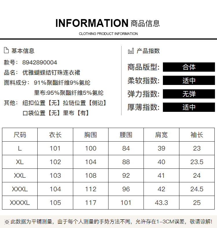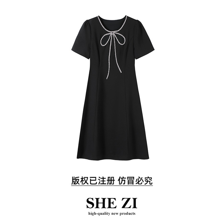 [奢姿轻奢系列]夏季大码女装圆领裙子胖妹妹优雅蝴蝶结钉珠连衣裙8942890004///