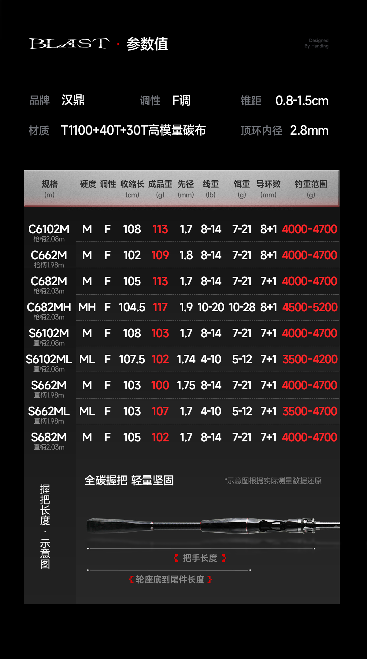 汉鼎路亚竿blast竞技竿海外泛用高碳路亚枪柄直柄钓鱼远投路亚竿