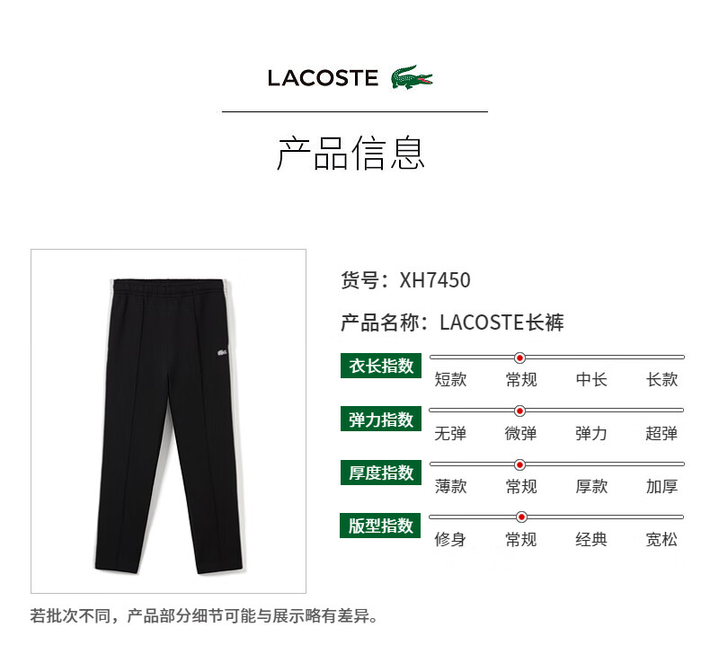 【海南专供价】Lacoste法国鳄鱼男士新款时尚百搭长裤XH7450-10