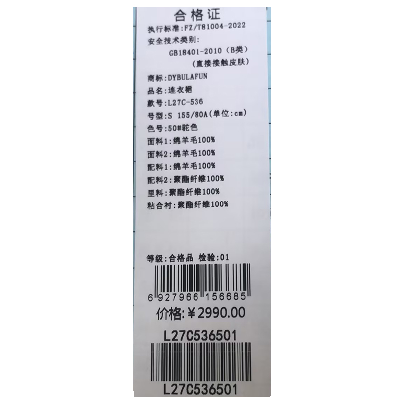 戴布拉芬连衣裙L27C536