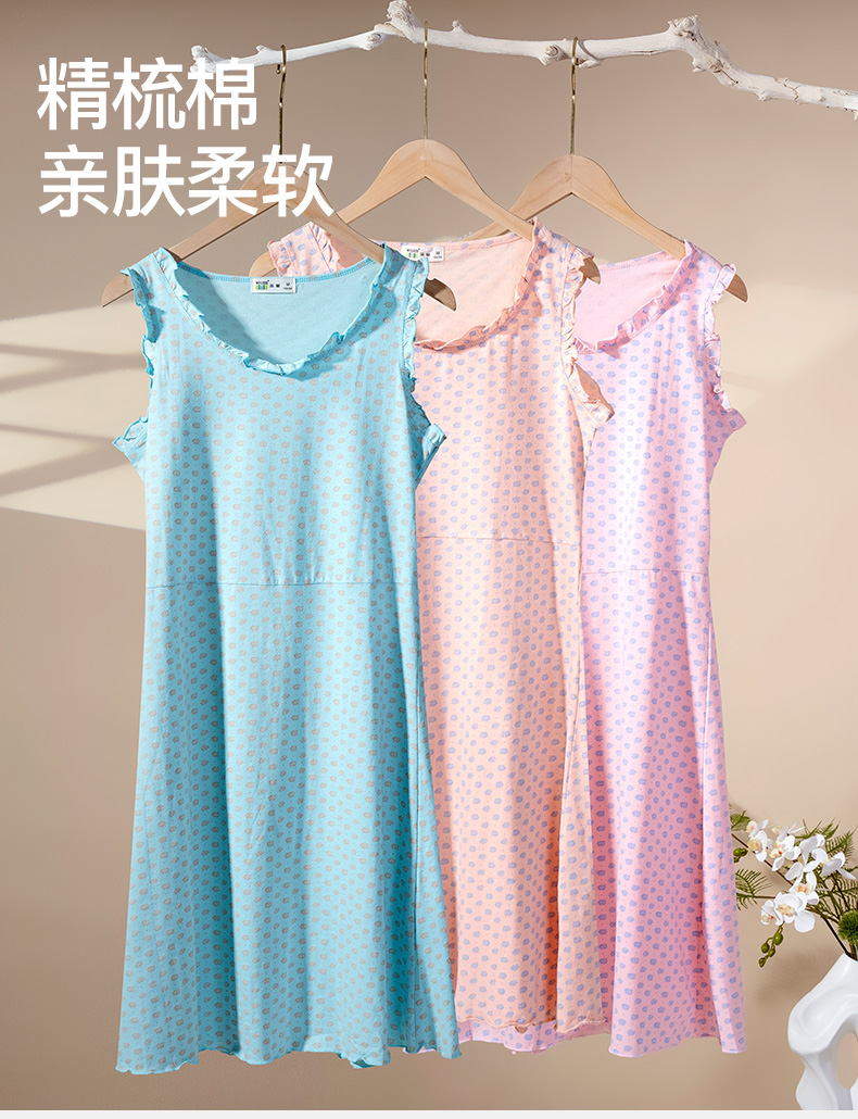 爱帝&温馨品牌女式透气棉夏季薄款短袖印花背心裙