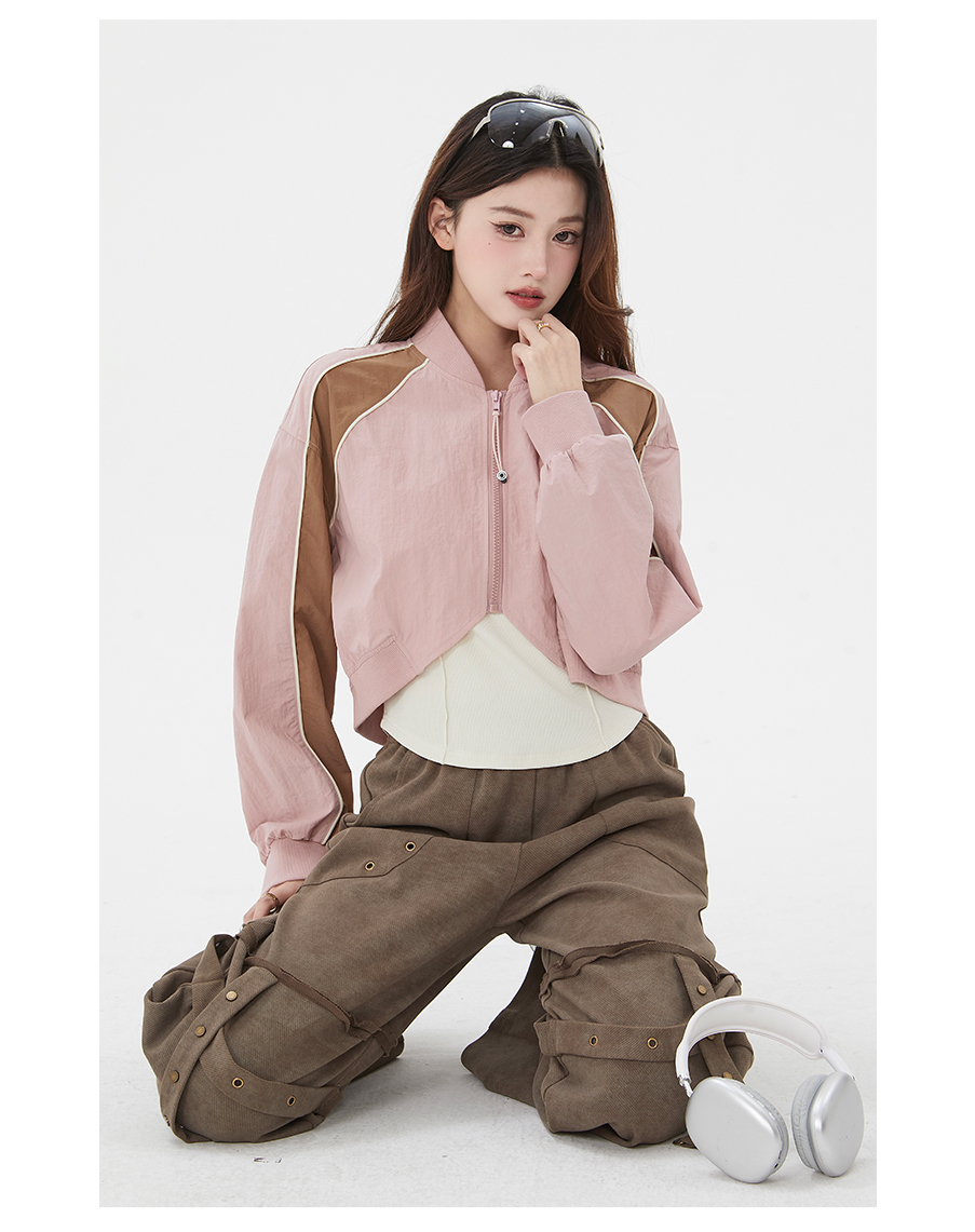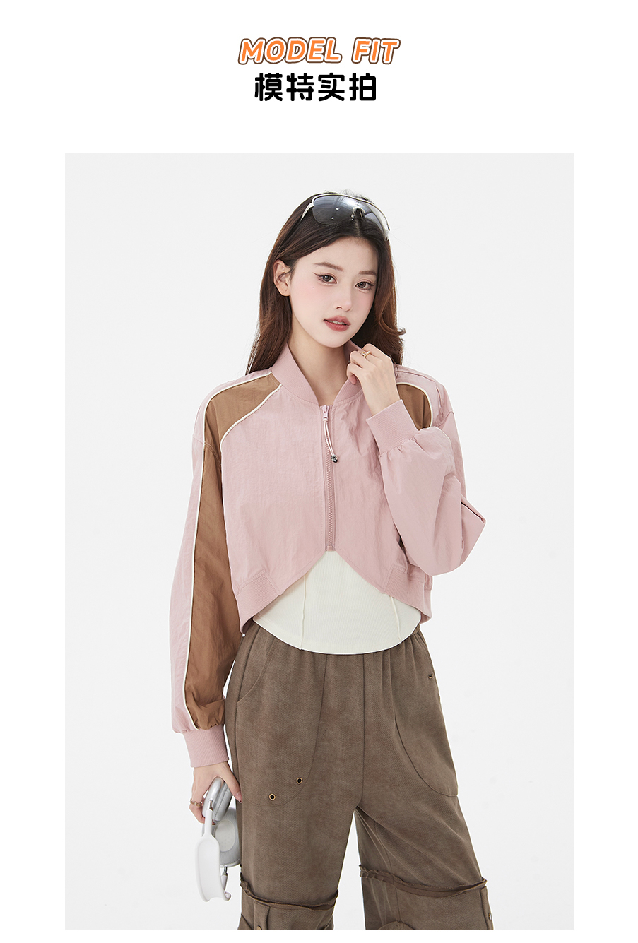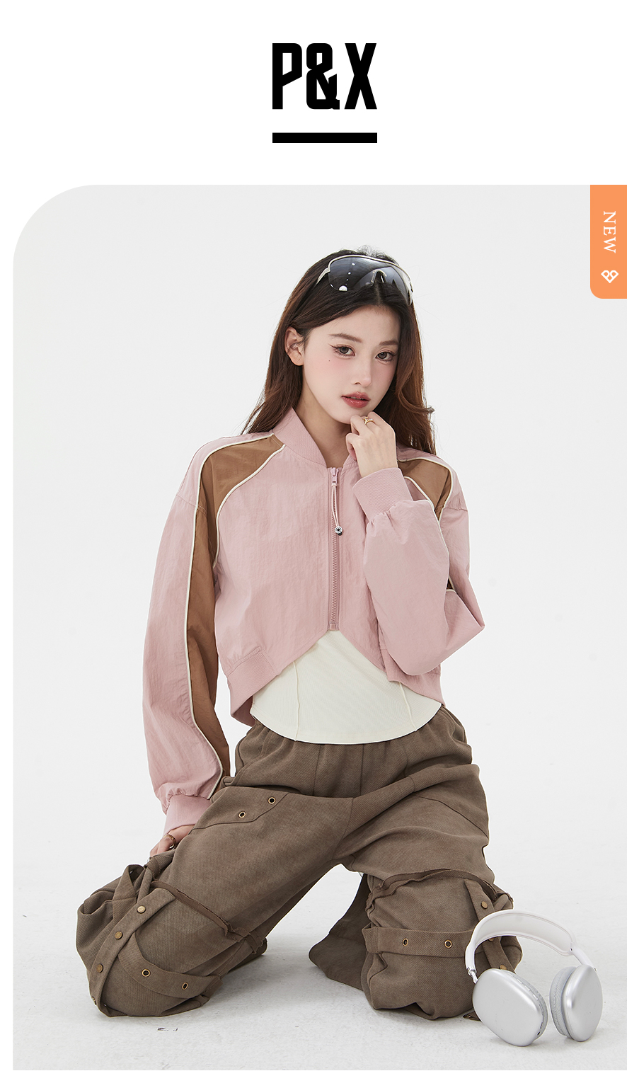 P&X设计师女装 时尚撞色设计短款外套两件套上衣825115116 粉/杏
