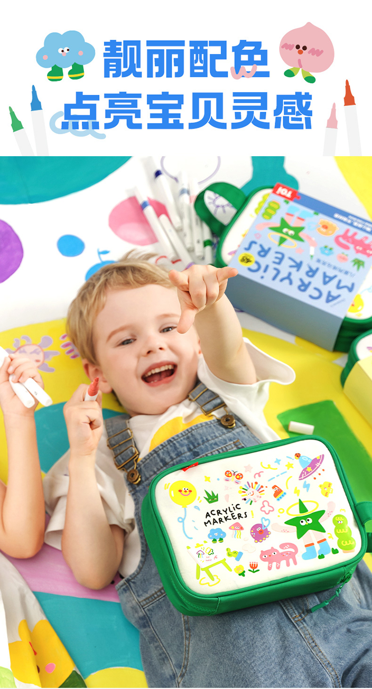 【特价 绿包款】TOI图益 丙烯马克笔 绿色 儿童不透色可叠色学生专用可洗水彩笔涂鸦笔礼物 商品图4
