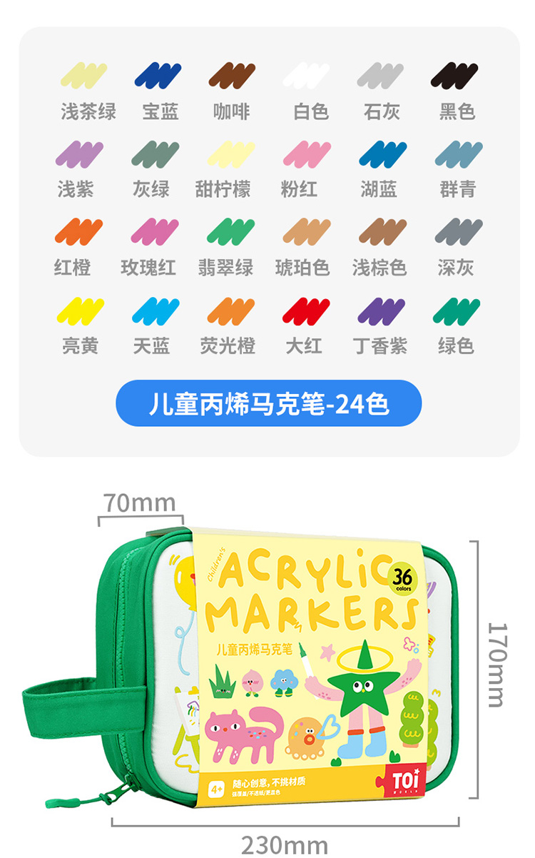 【特价 绿包款】TOI图益 丙烯马克笔 绿色 儿童不透色可叠色学生专用可洗水彩笔涂鸦笔礼物 商品图5