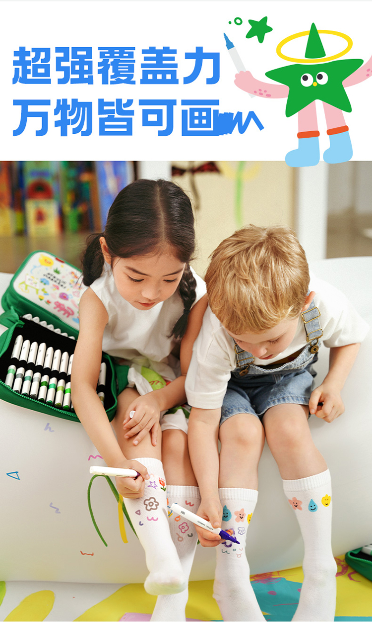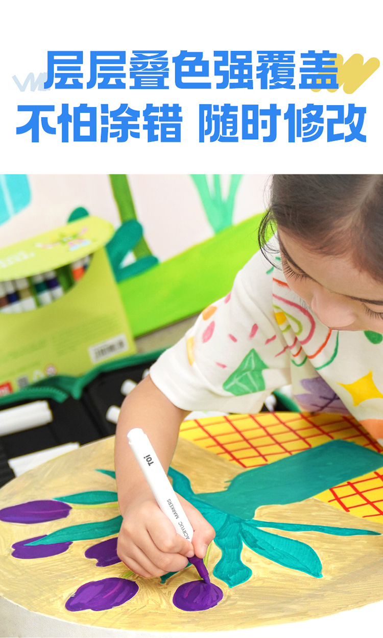 【特价 绿包款】TOI图益 丙烯马克笔 绿色 儿童不透色可叠色学生专用可洗水彩笔涂鸦笔礼物 商品图6