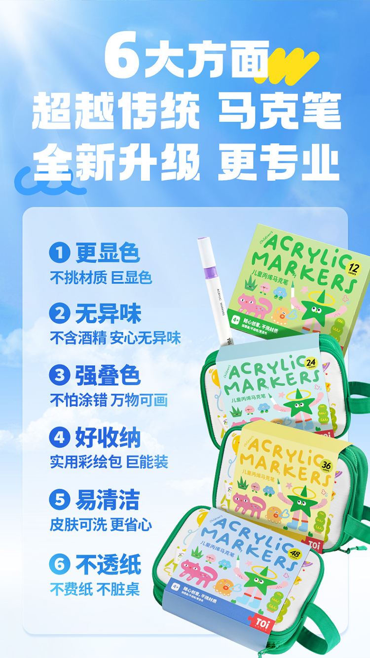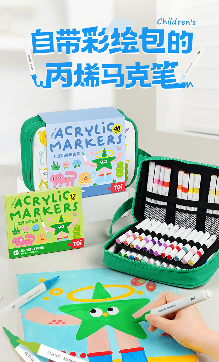 【特价 绿包款】TOI图益 丙烯马克笔 绿色 儿童不透色可叠色学生专用可洗水彩笔涂鸦笔礼物 商品图0