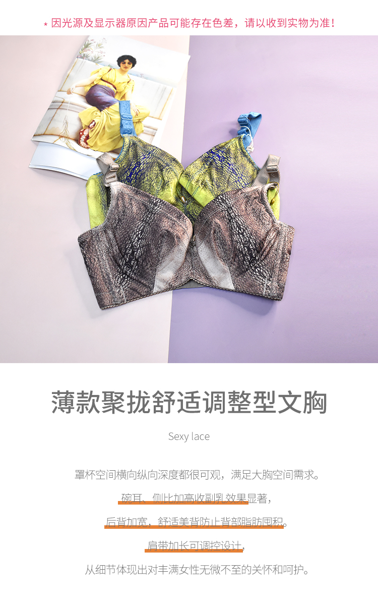 【秒杀品不退不换】皇家丽美薄款有钢圈收副乳调整型文胸W076-1
