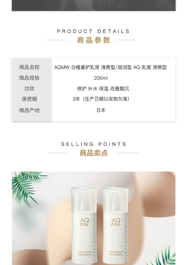 【现货】Decorte黛珂新版AQ白檀爽肤水乳液补水保湿200ml滋润型清爽型