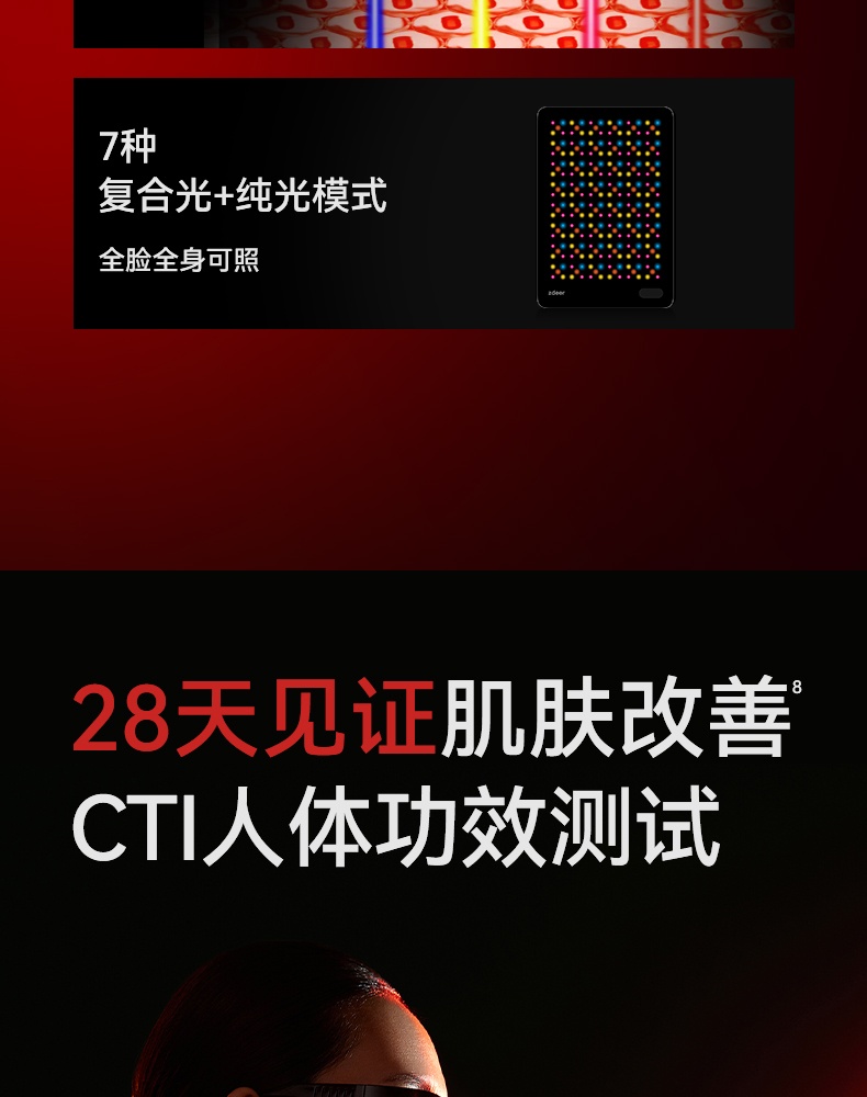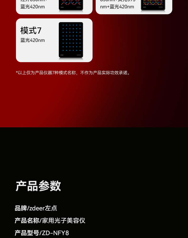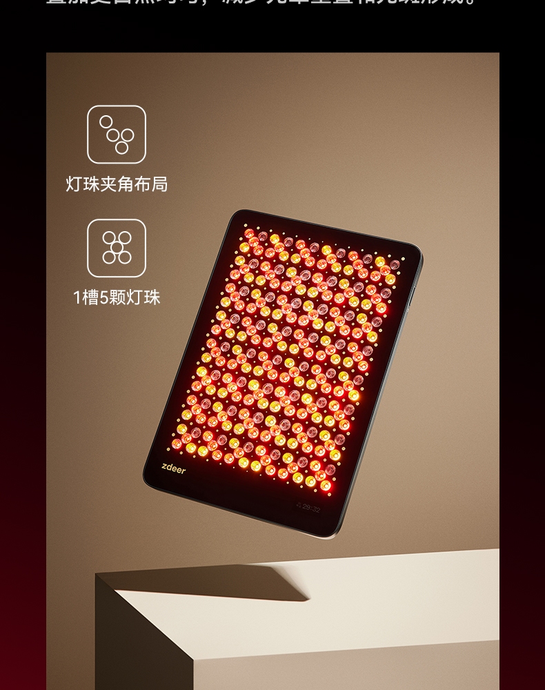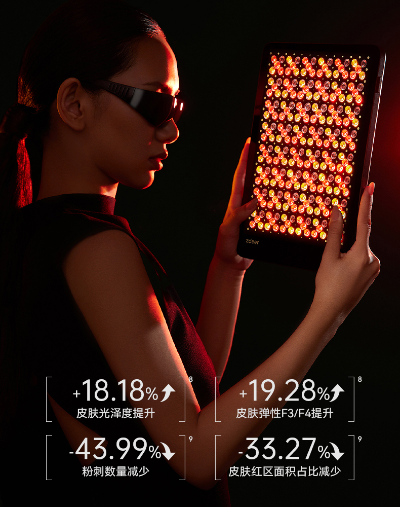 左点大排灯ZD-NFY8 搭载钻石纹聚光微透镜技术,240颗灯珠阵列排布,44重窄谱光波深入肌底,实现紧致、保湿、舒缓等多重功效。