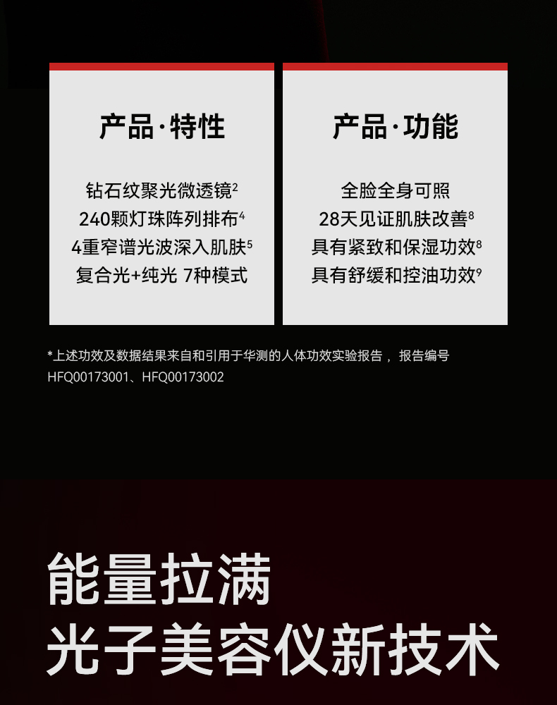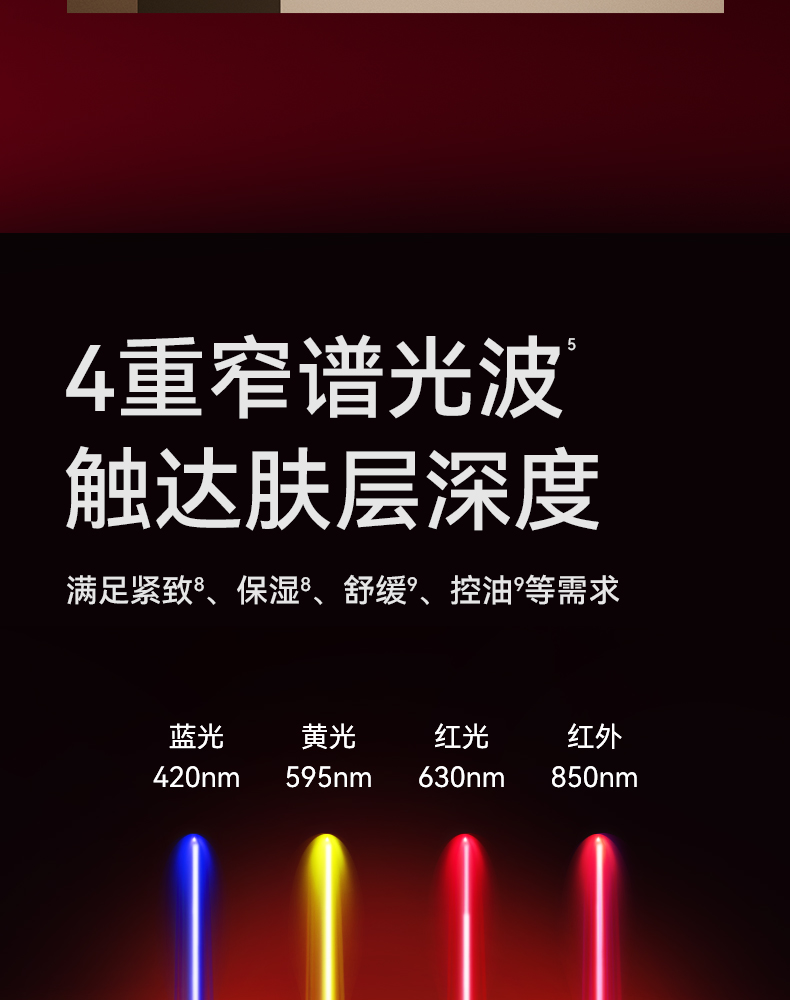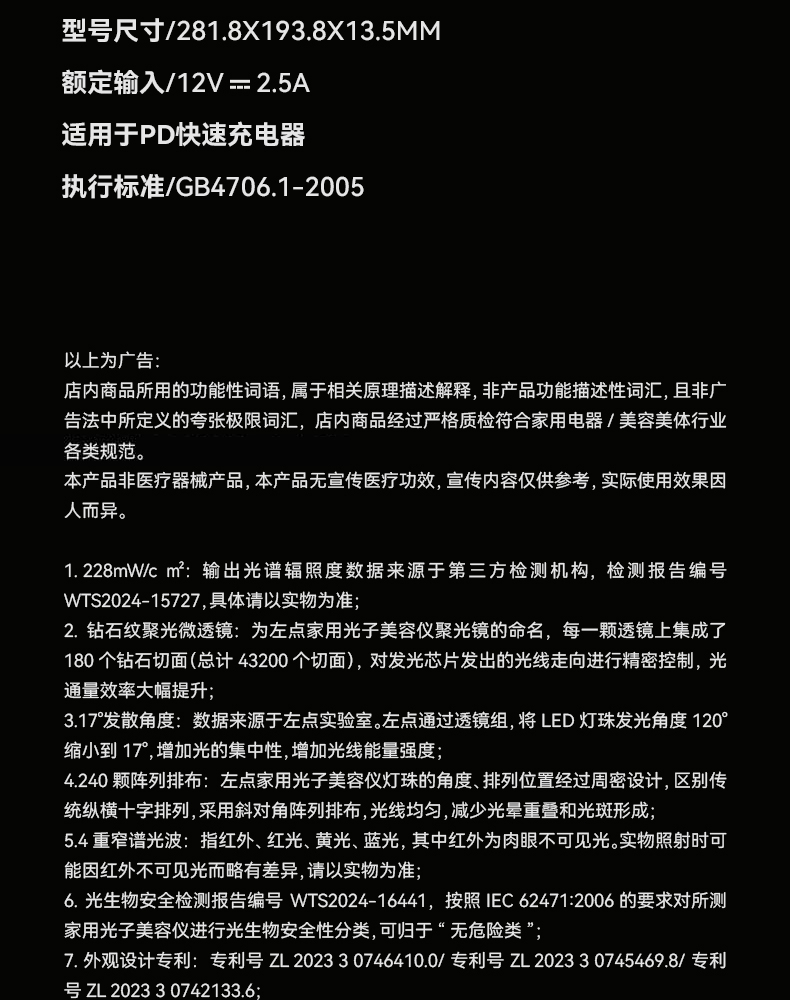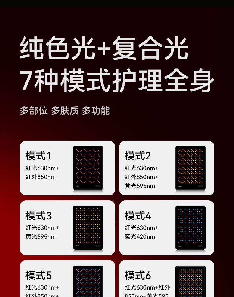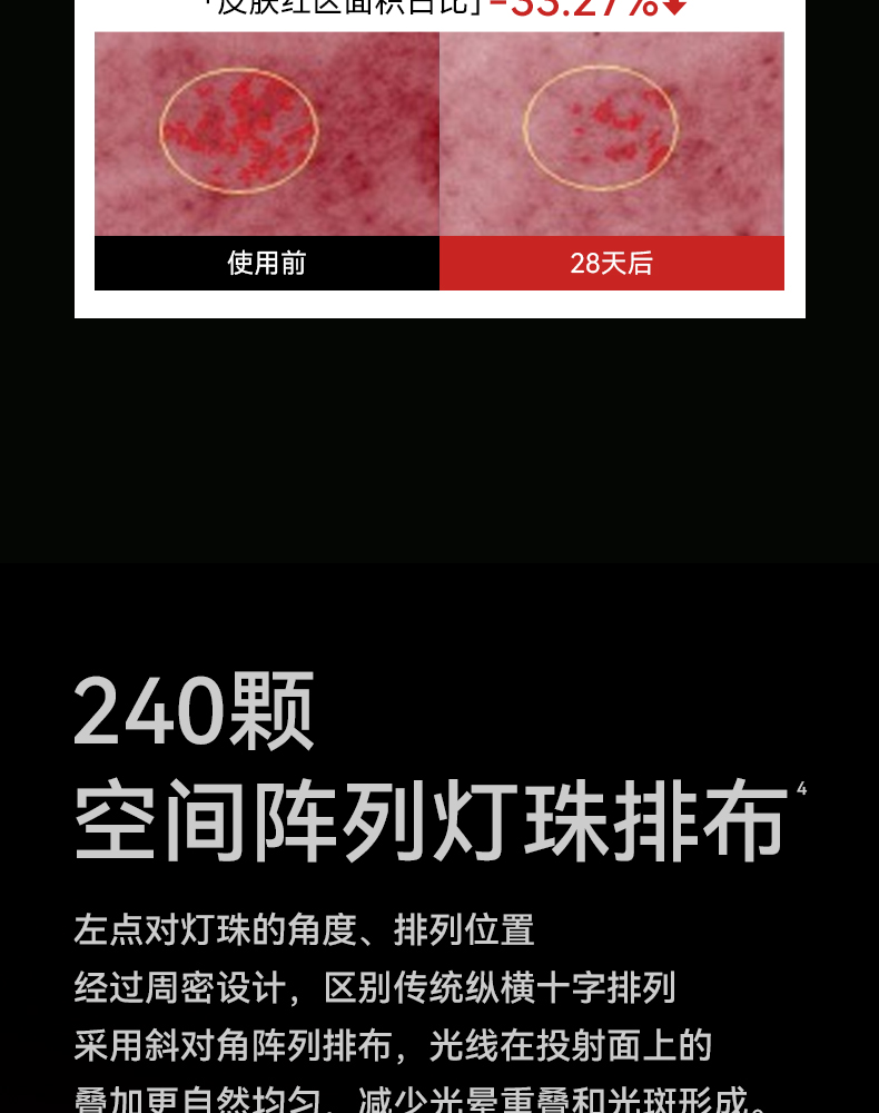 左点大排灯ZD-NFY8 搭载钻石纹聚光微透镜技术,240颗灯珠阵列排布,44重窄谱光波深入肌底,实现紧致、保湿、舒缓等多重功效。