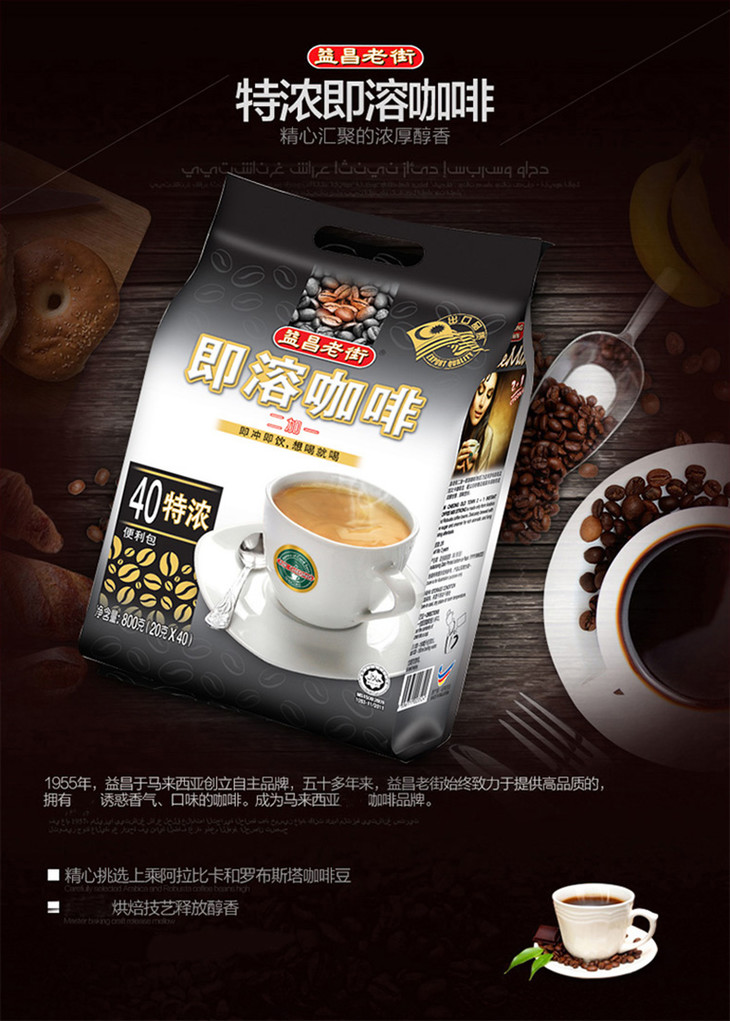 马来西亚益昌老街二加一即溶咖啡特浓口味800g/024154 低温烘焙去苦味香浓醇厚约40杯装