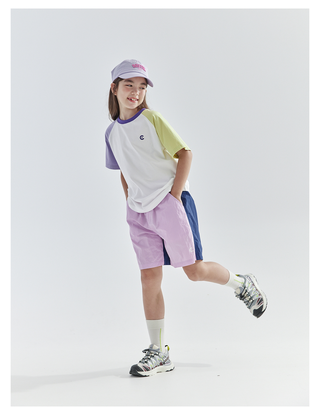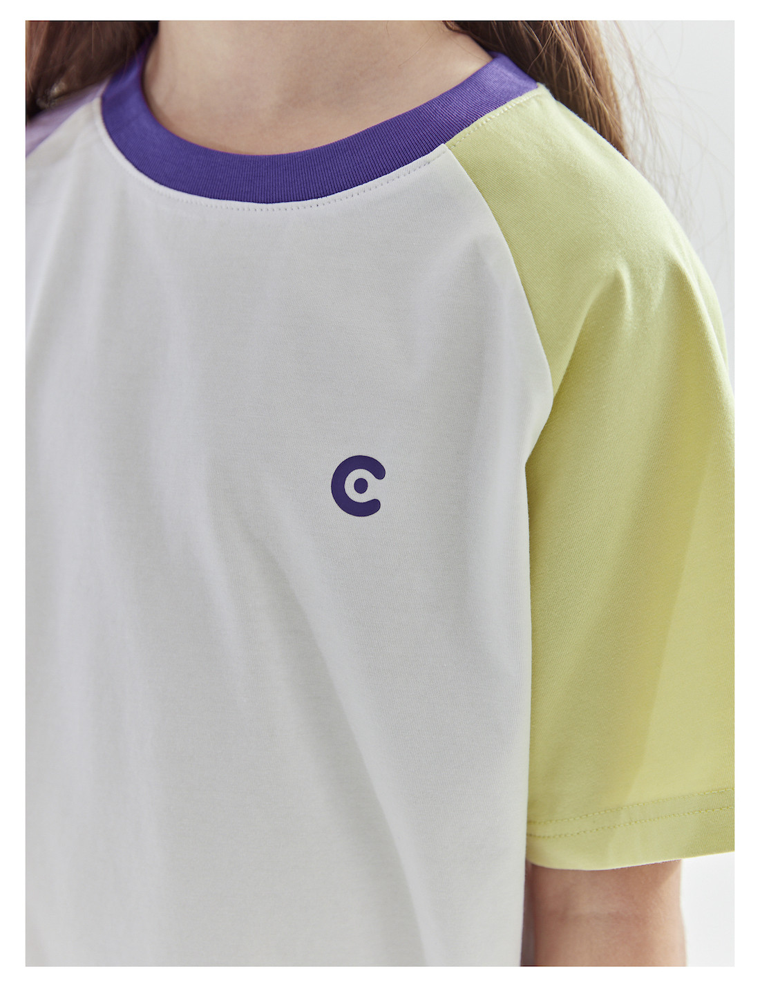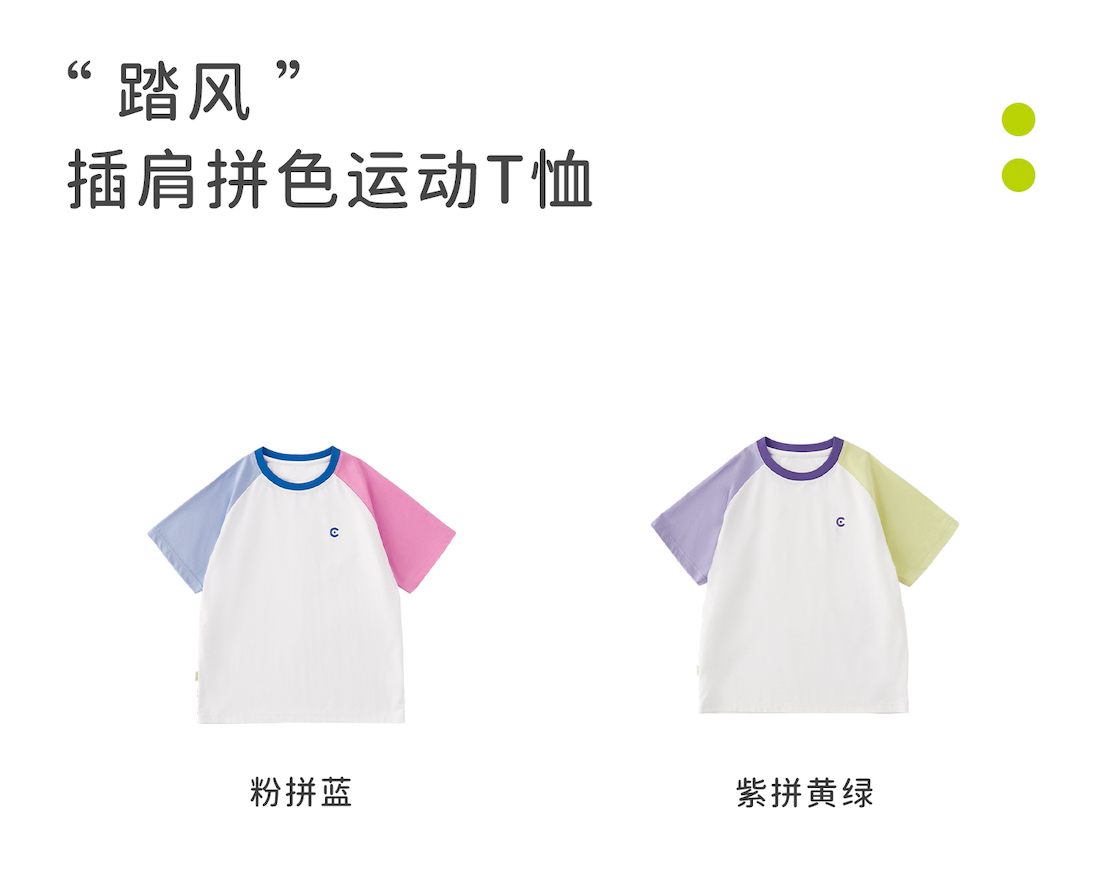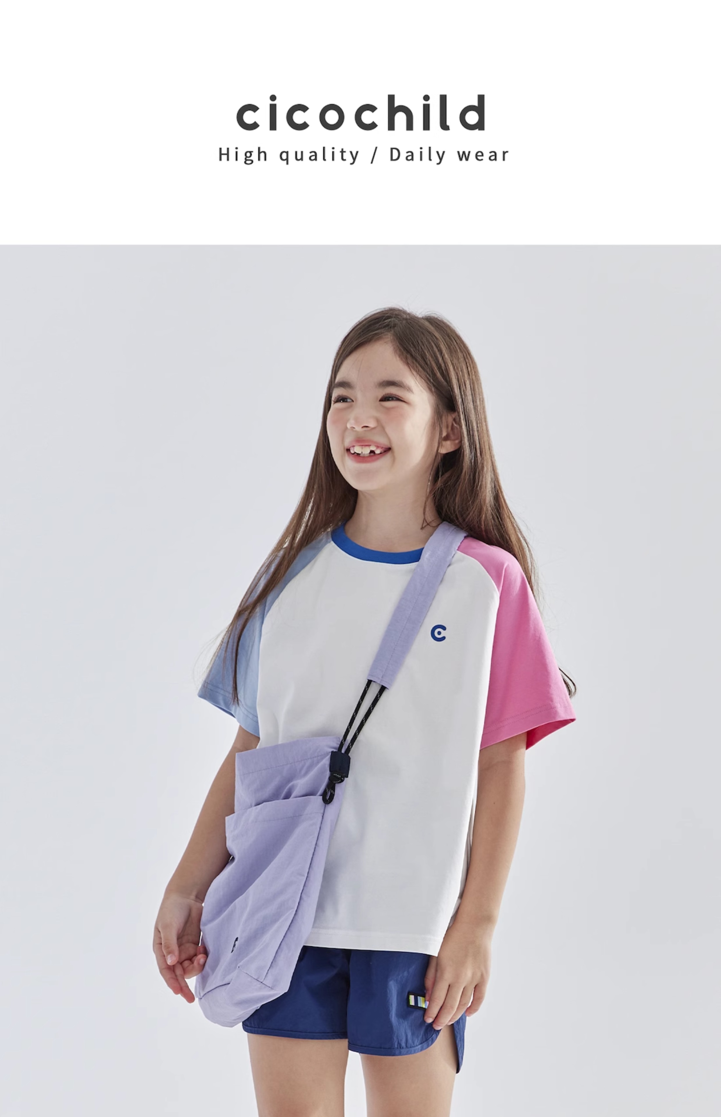 【代发】插肩拼色运动T恤 cicochild夏款女童运动休闲大童上衣短袖粉拼蓝/紫拼黄绿