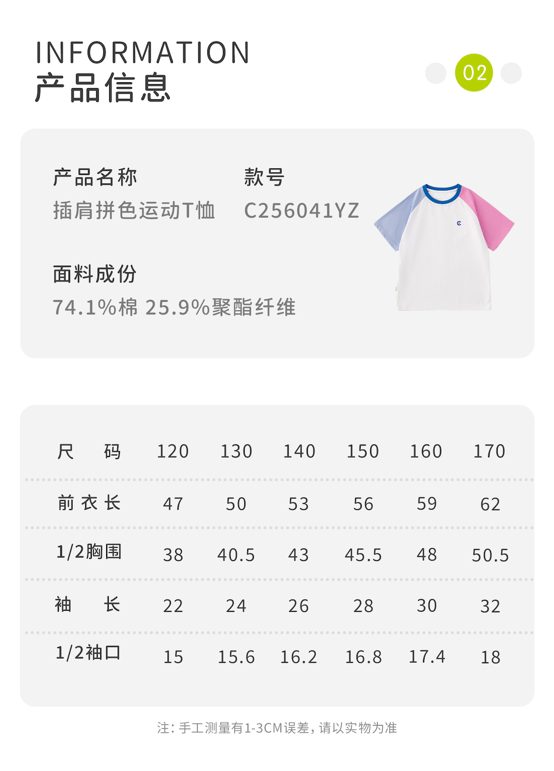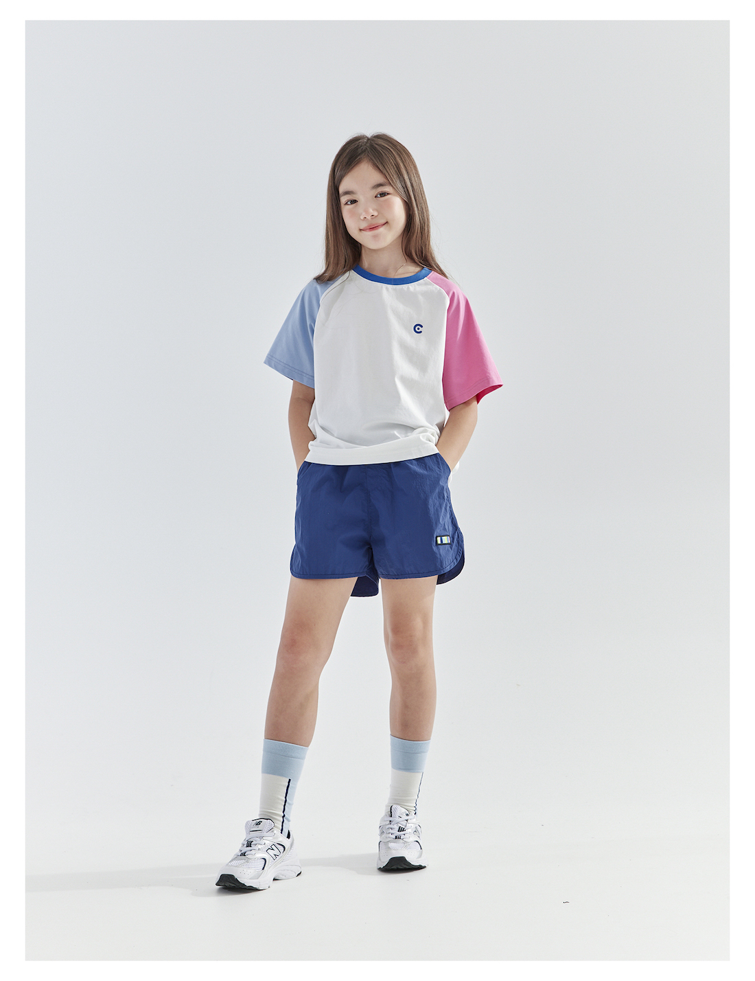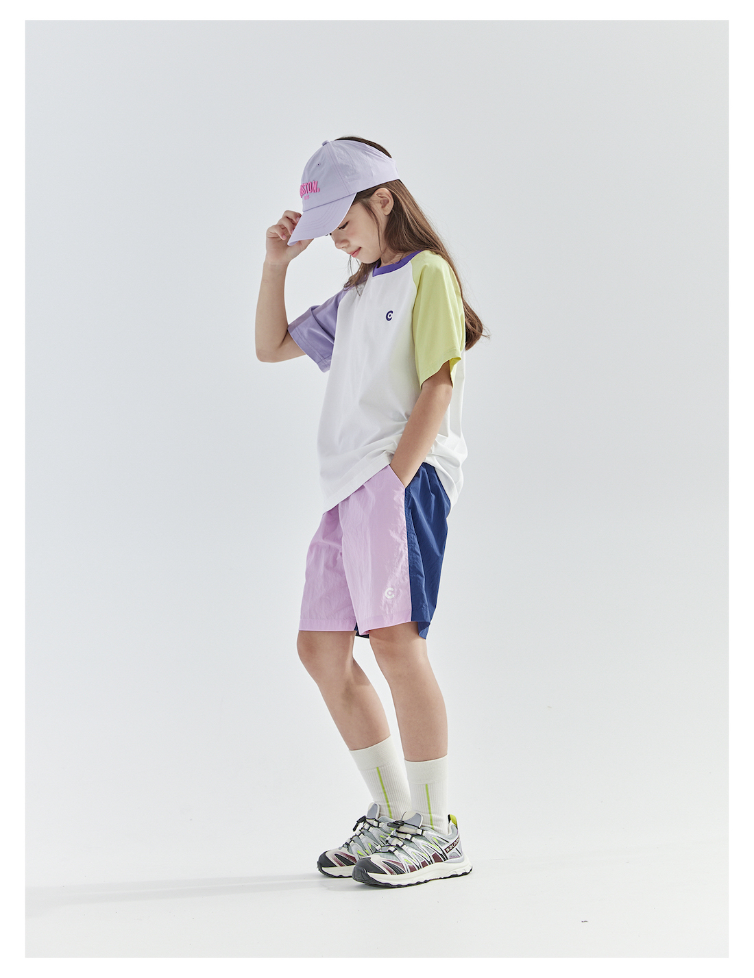 【代发】插肩拼色运动T恤 cicochild夏款女童运动休闲大童上衣短袖粉拼蓝/紫拼黄绿