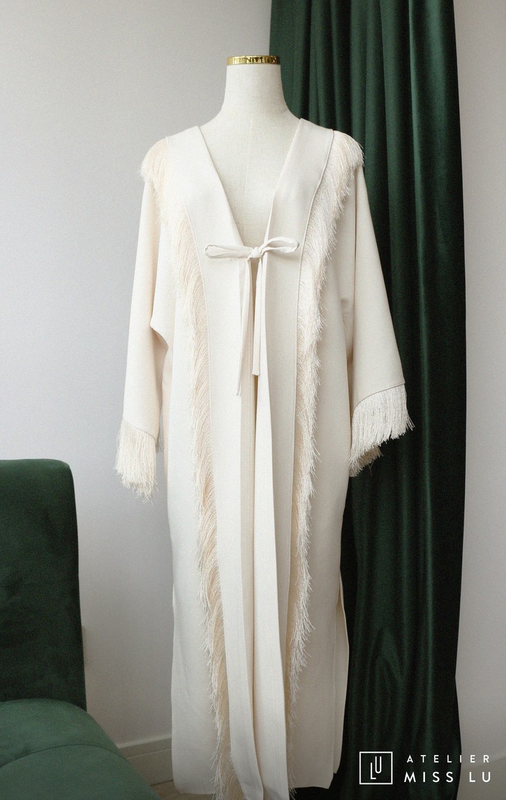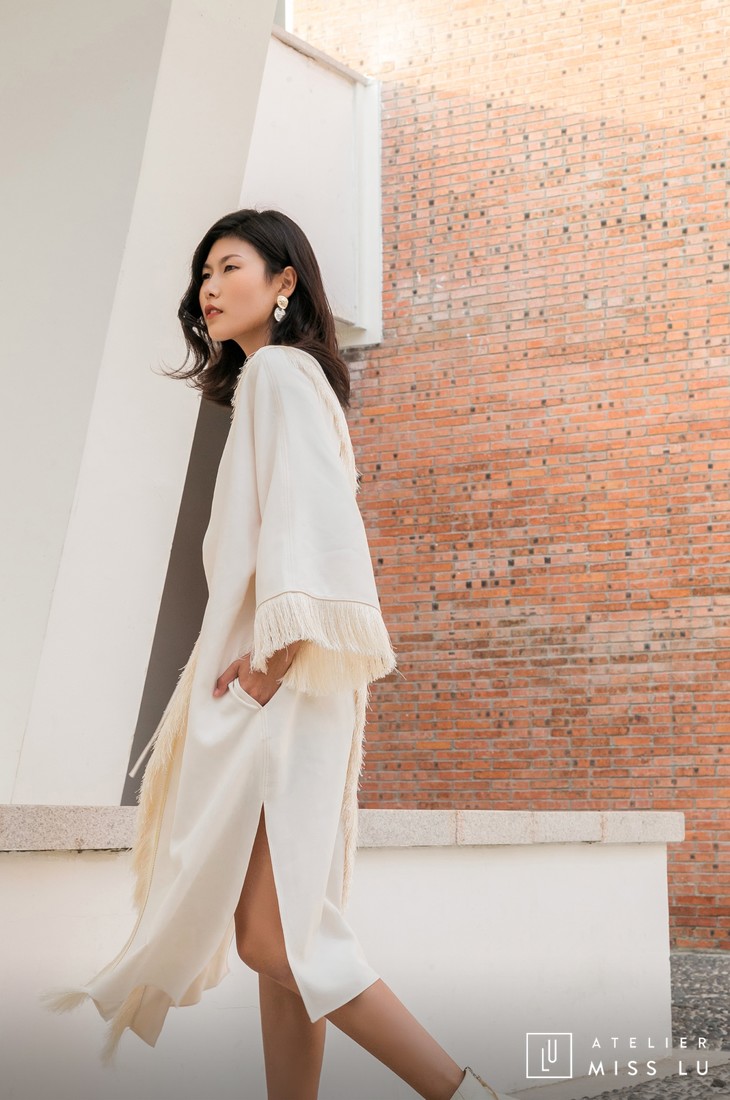 AtelierMissLu / Susy-珍珠白流苏装饰长外套