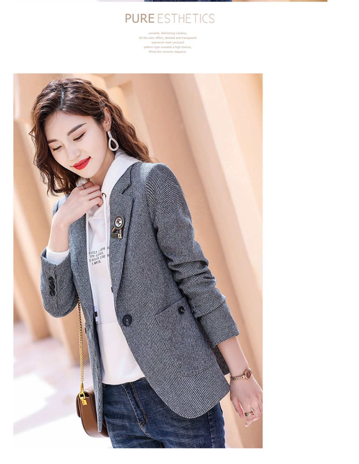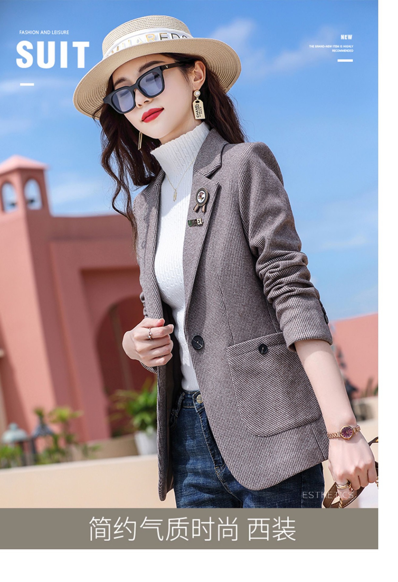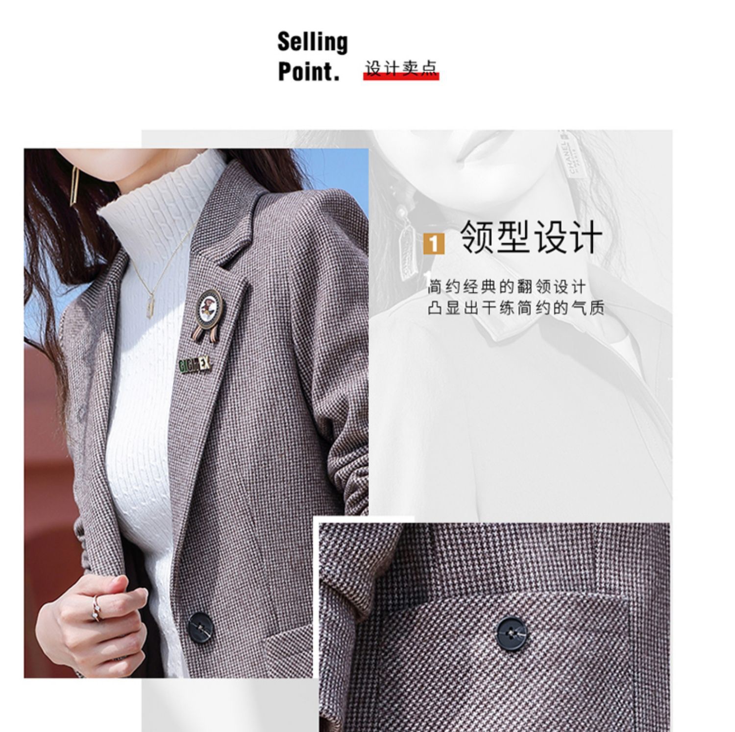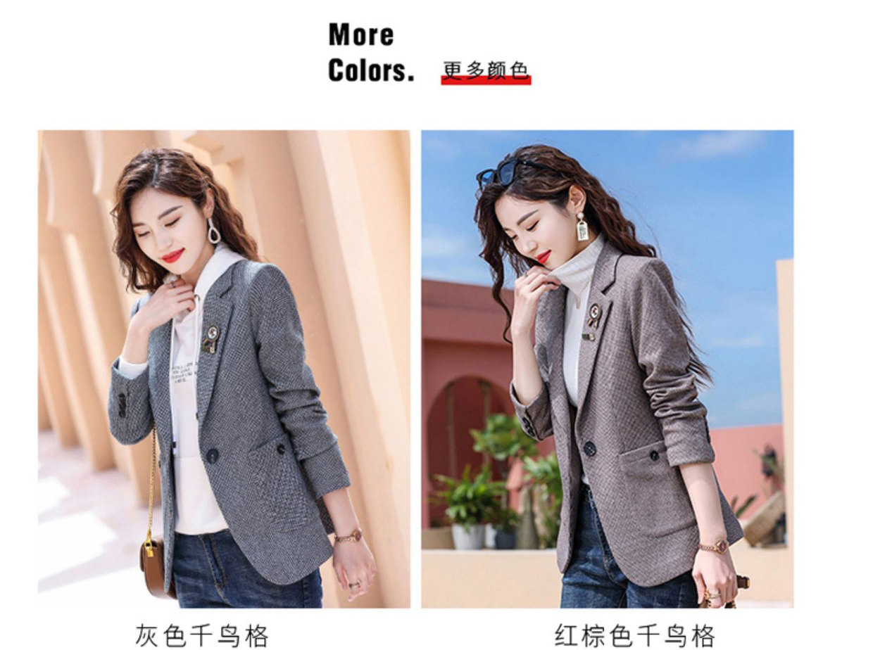 千鸟格西装外套女春秋2022新款时尚英伦风长袖西服小个子休闲上衣 TYL9616