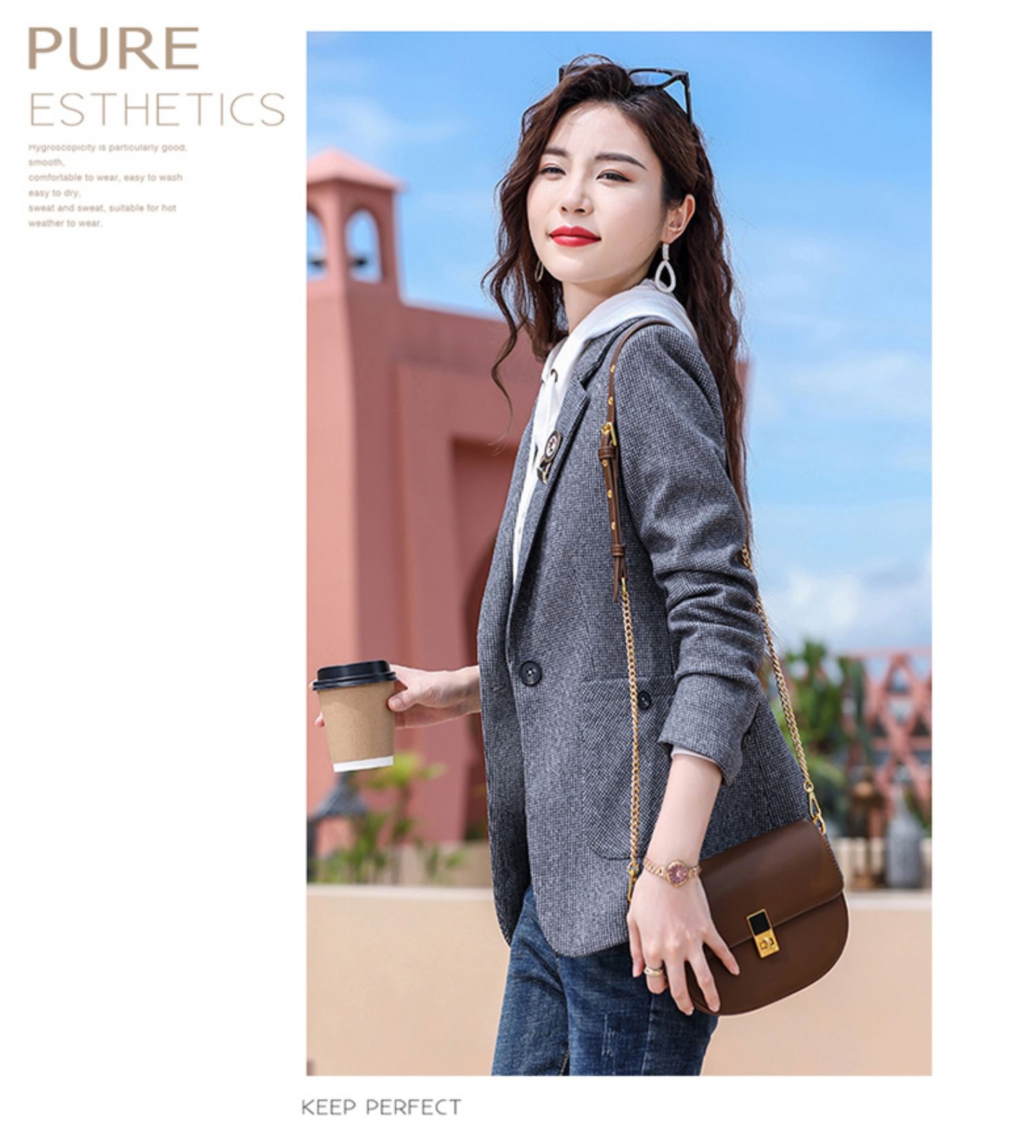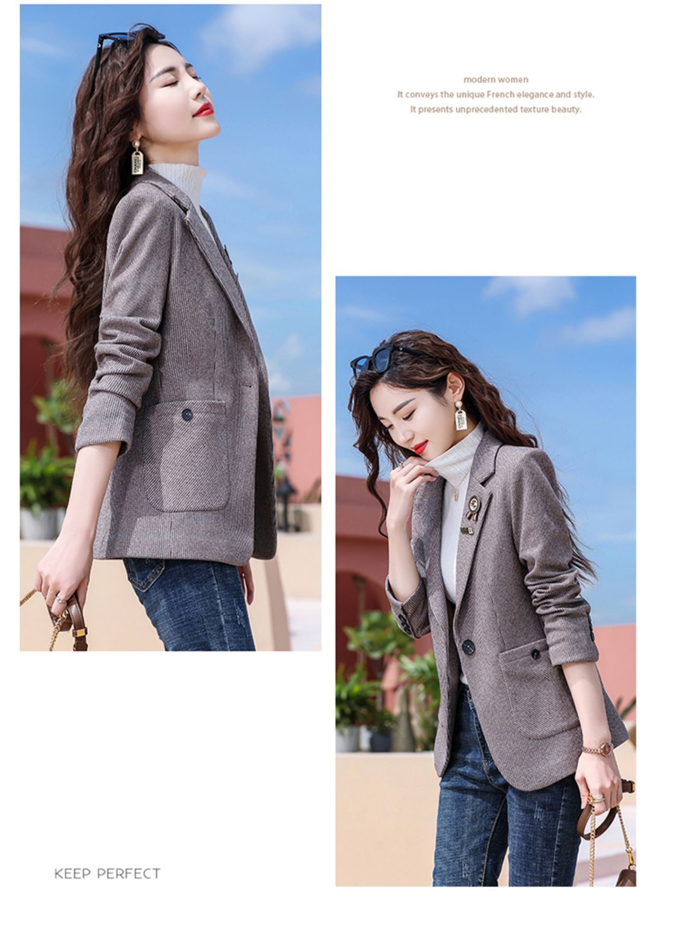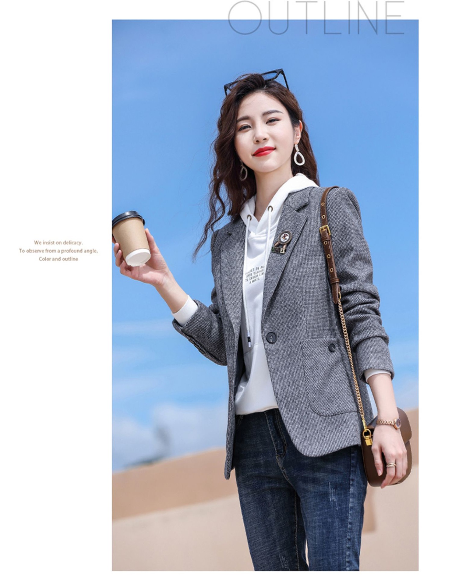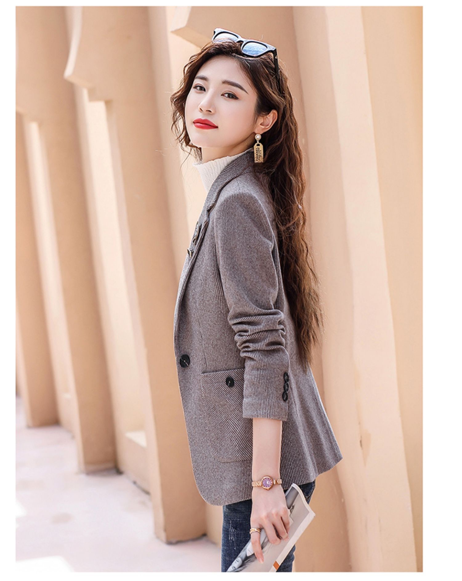 千鸟格西装外套女春秋2022新款时尚英伦风长袖西服小个子休闲上衣 TYL9616